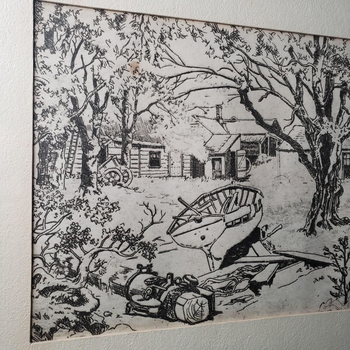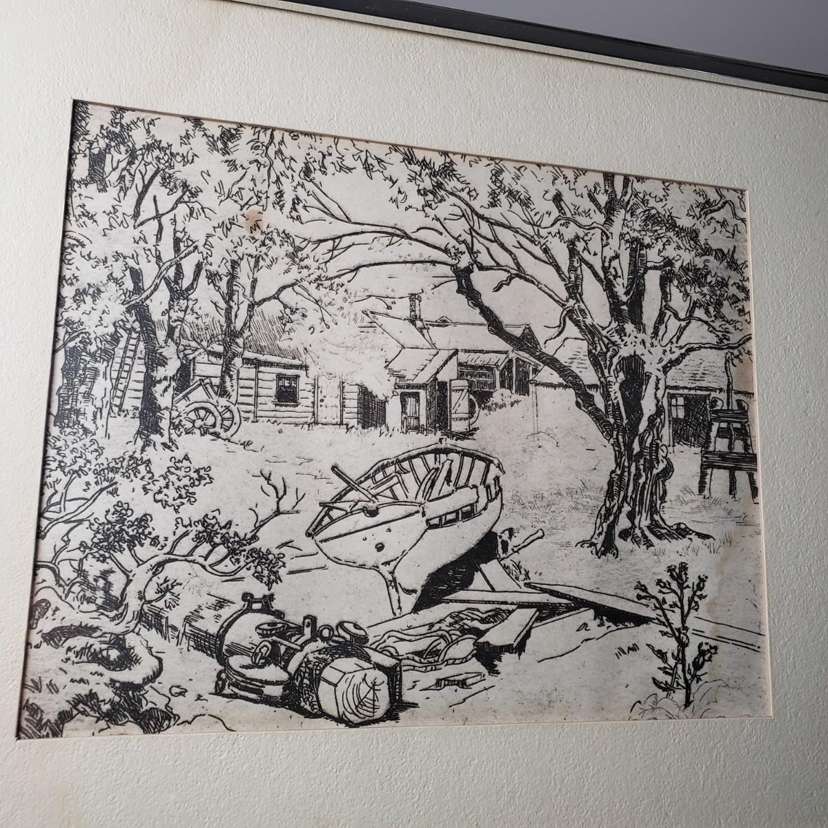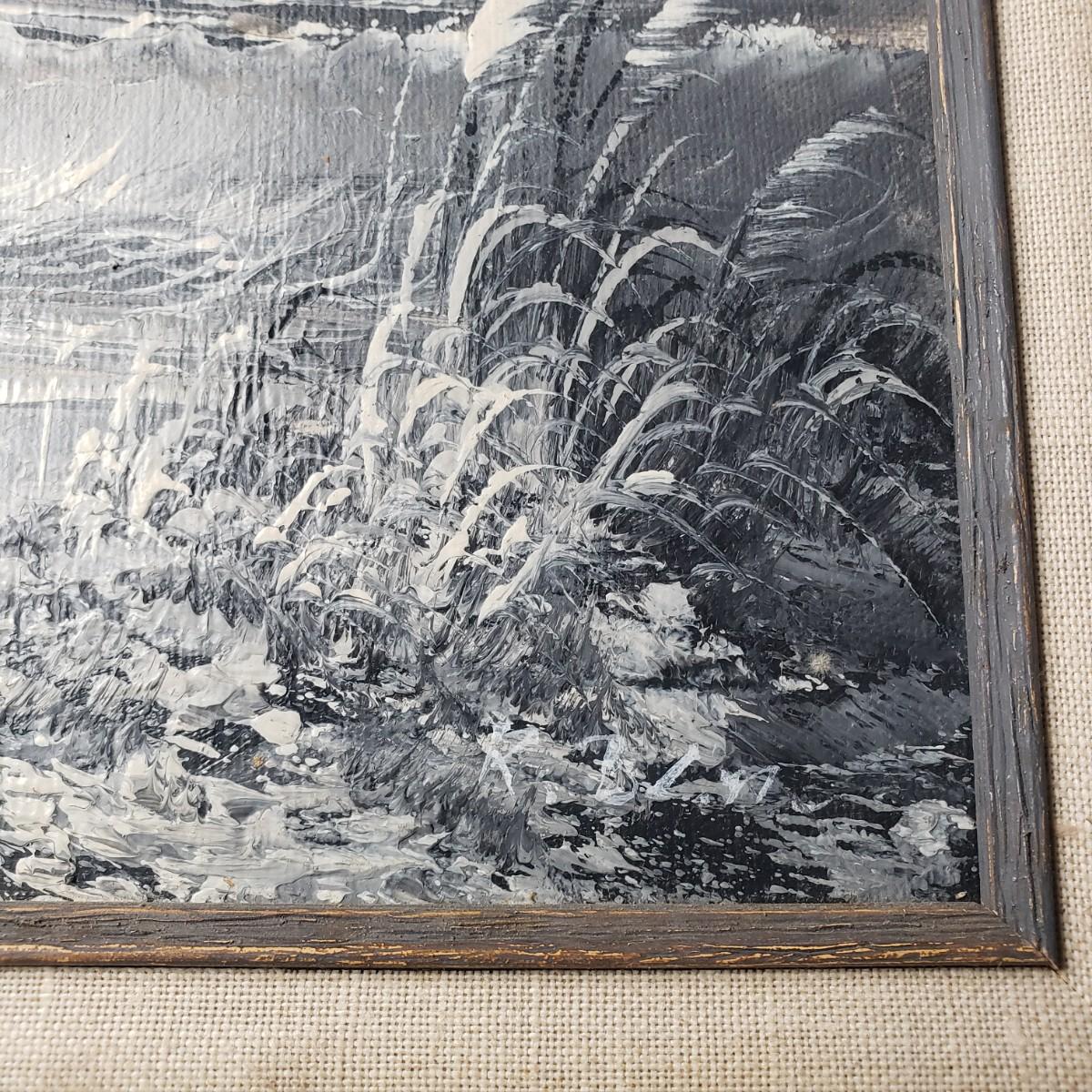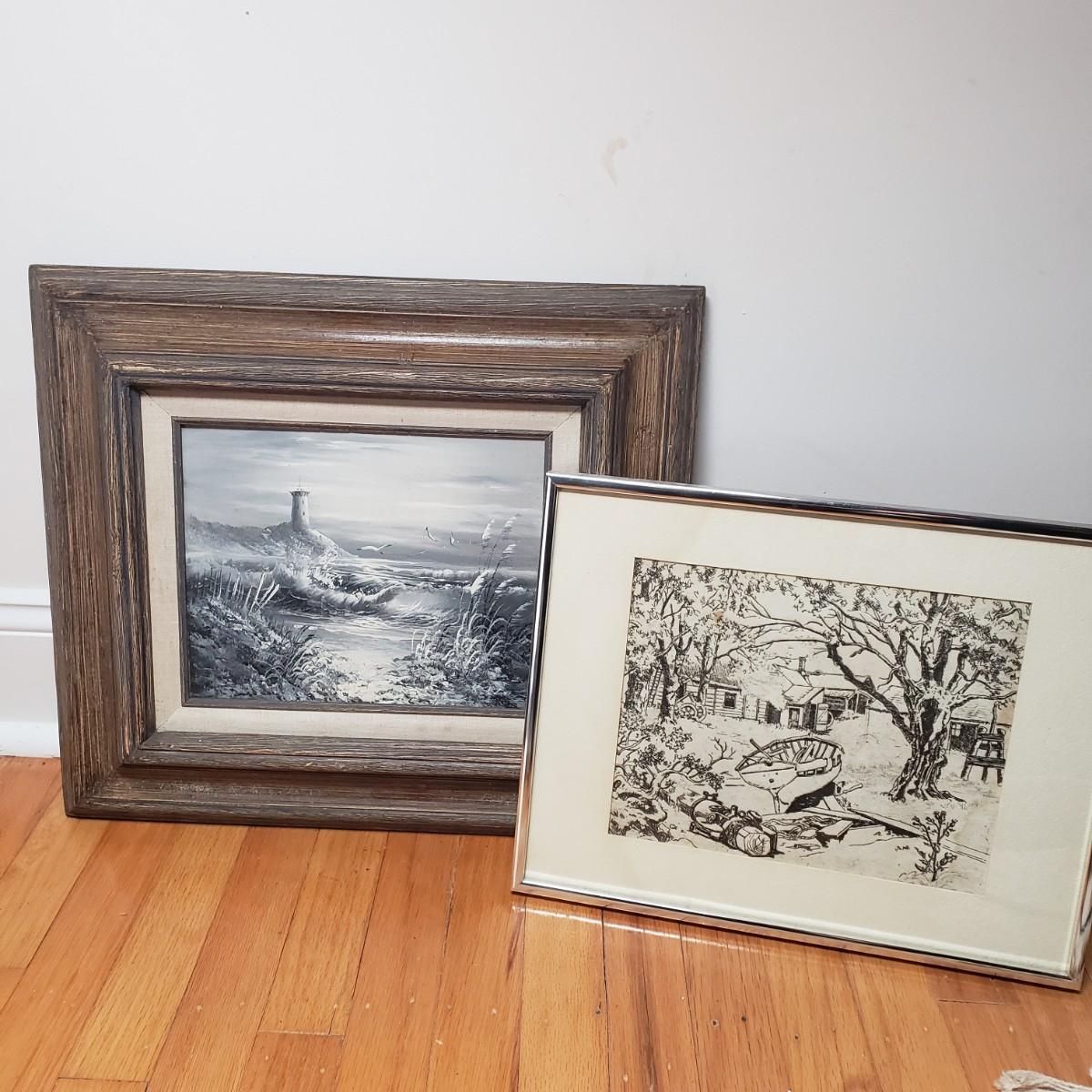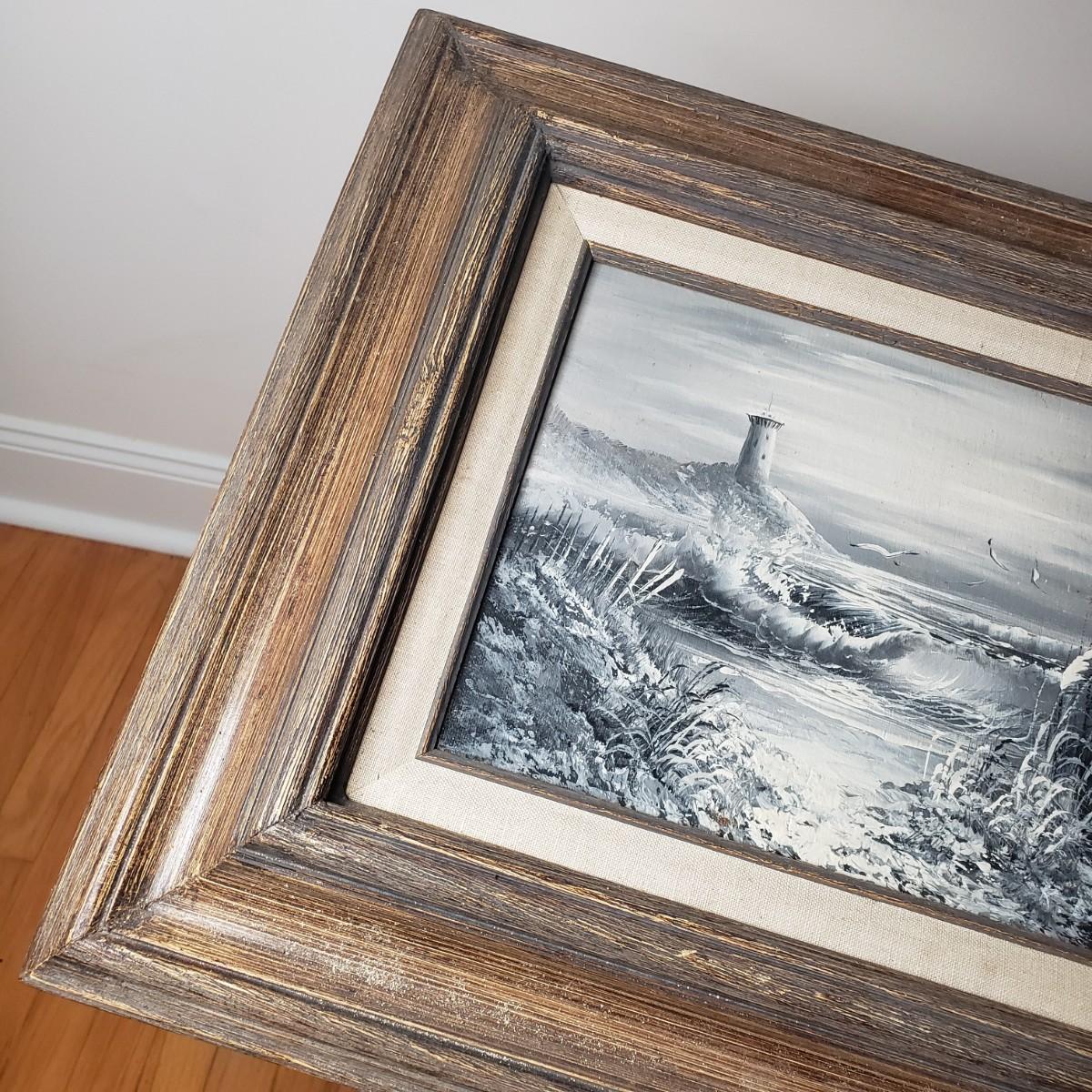 LOT 82L: Signed Lighthouse Seaside Oil Painting with Black & White Art Drawing