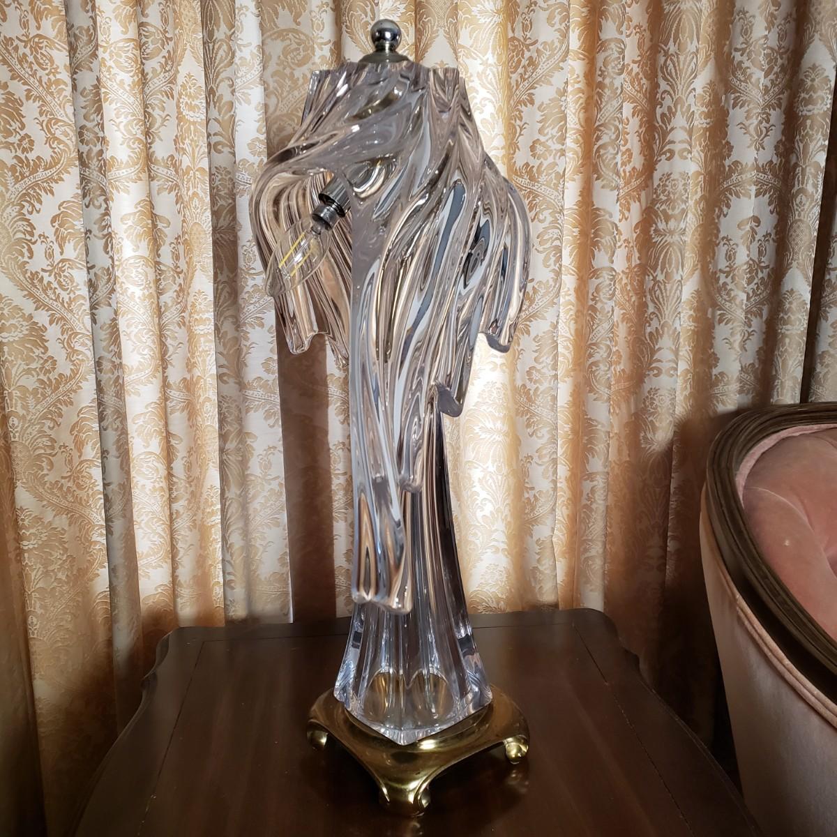 LOT 86L: Cofrac Art Verrier France Crystal & Brass Table Lamp