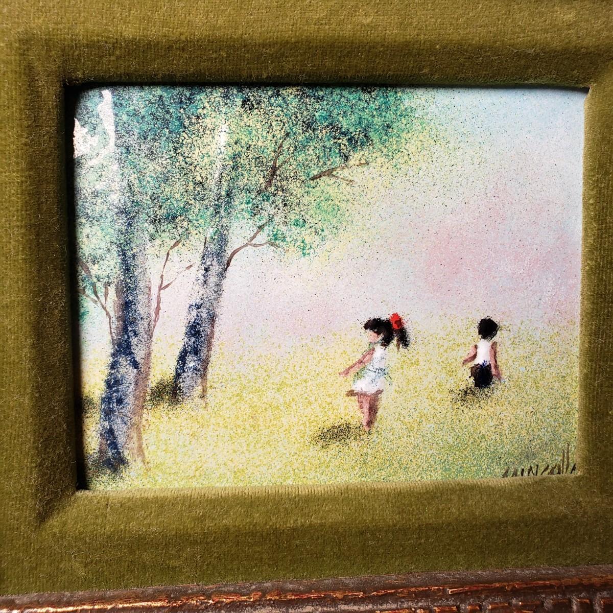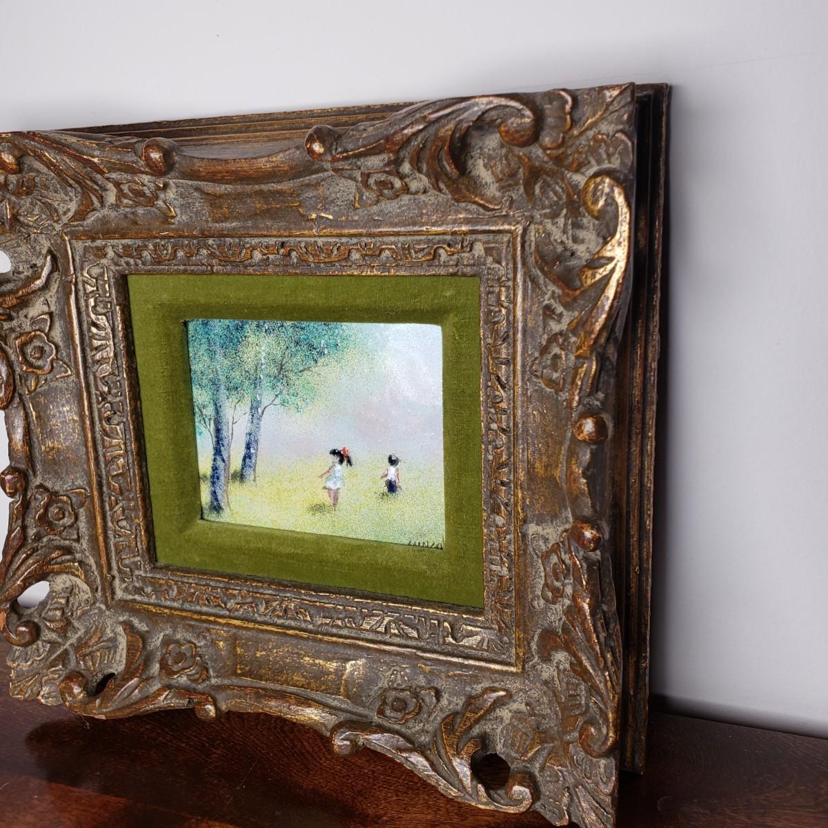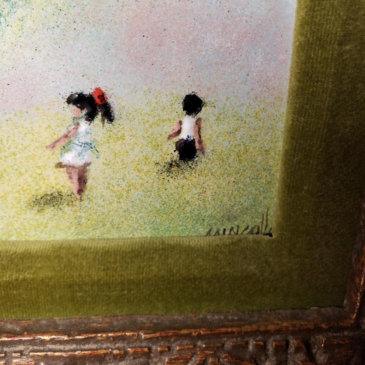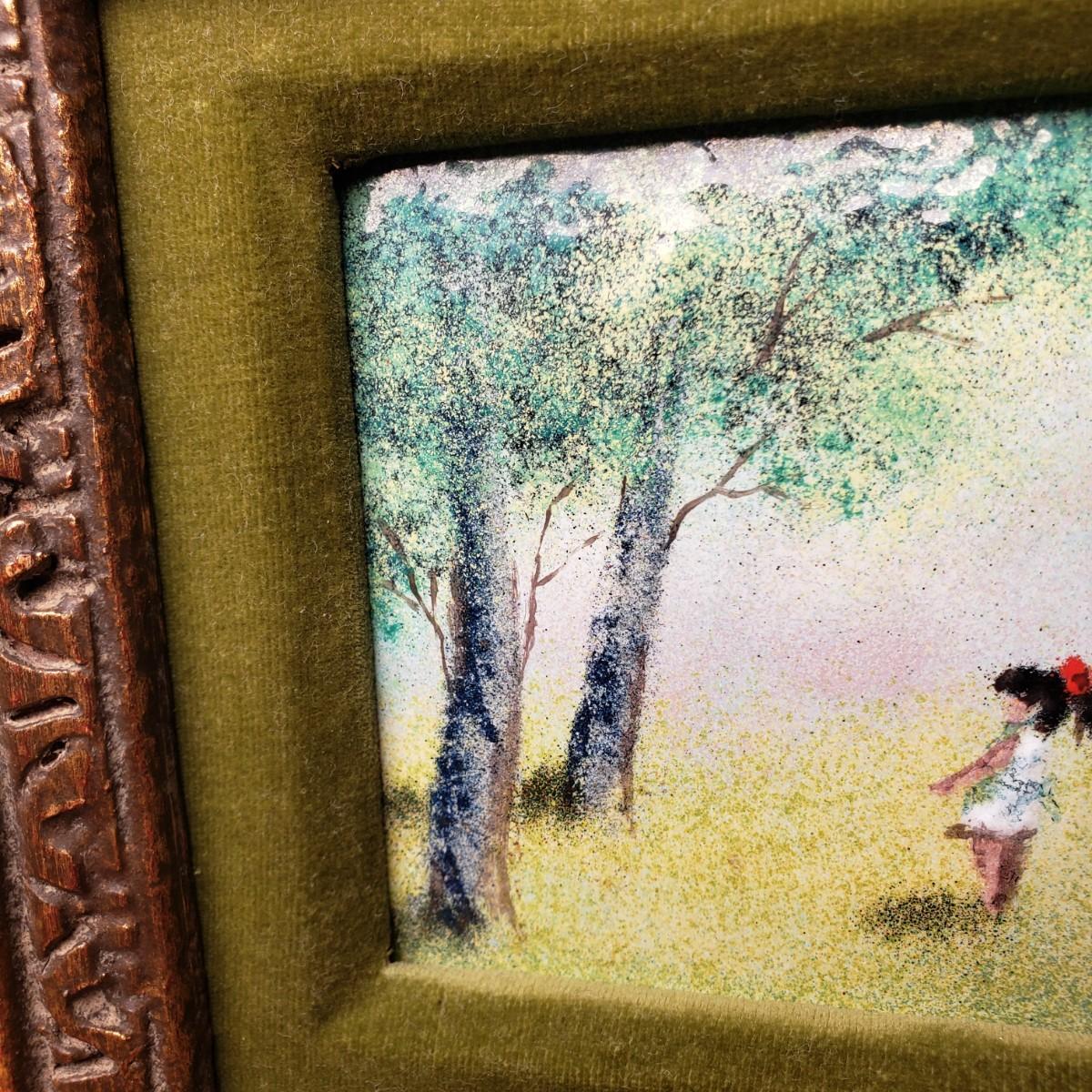 LOT 93L: Signed Enamel on Copper Framed Art & Ceramic Tile of Virgin Mary