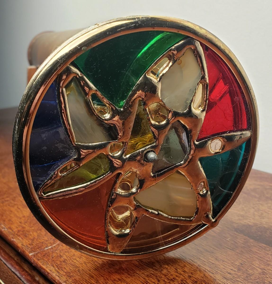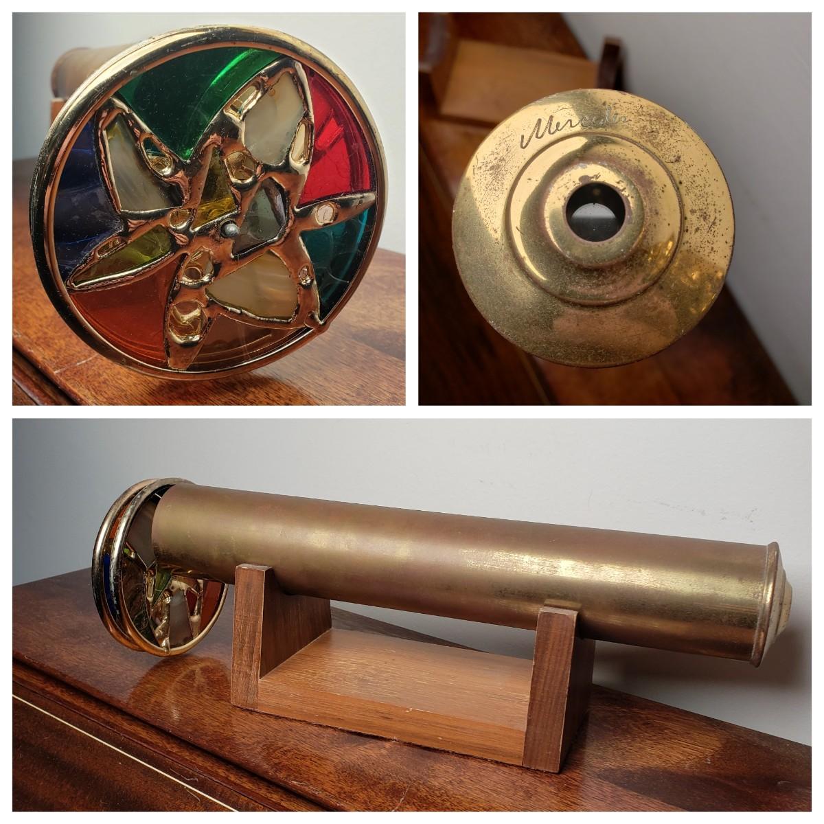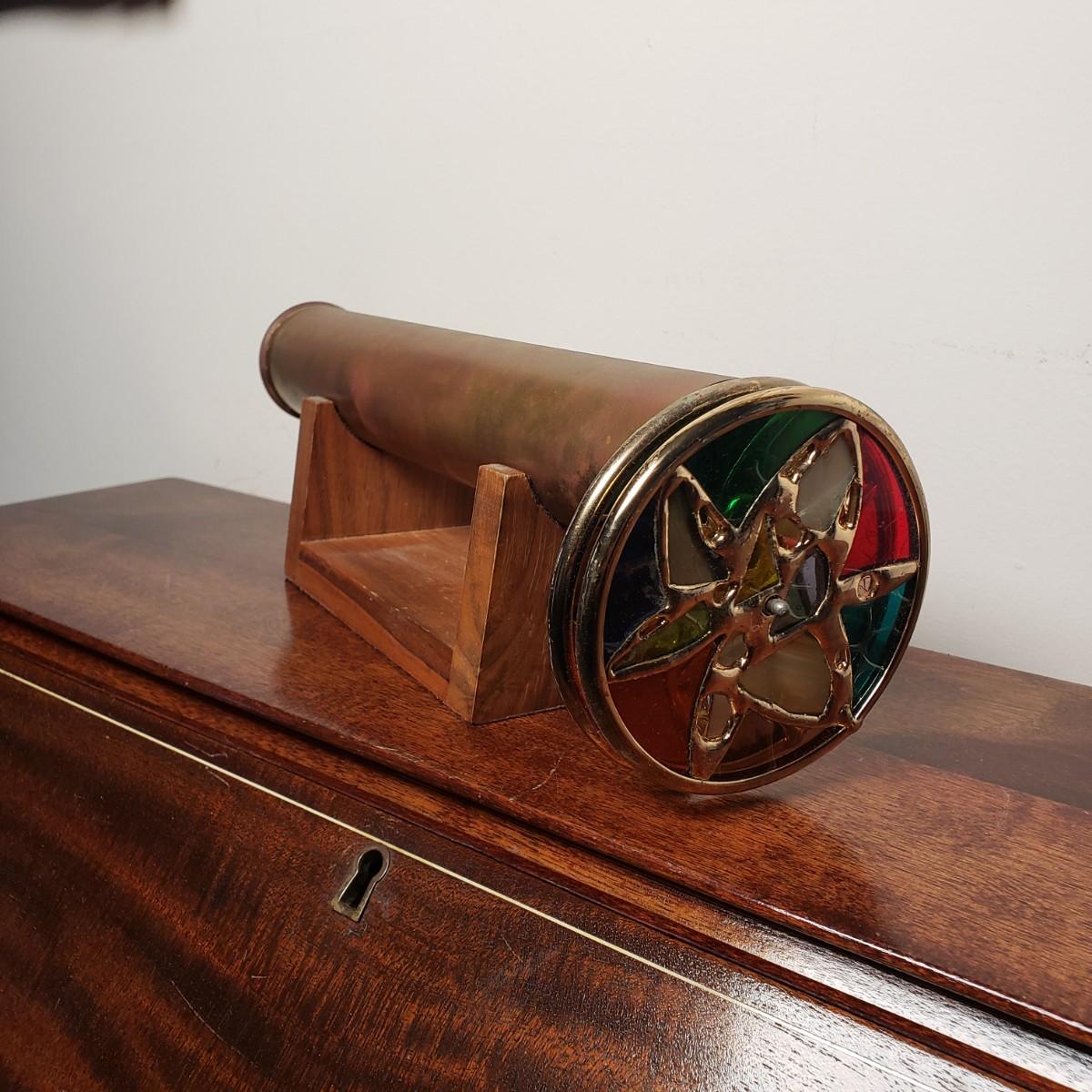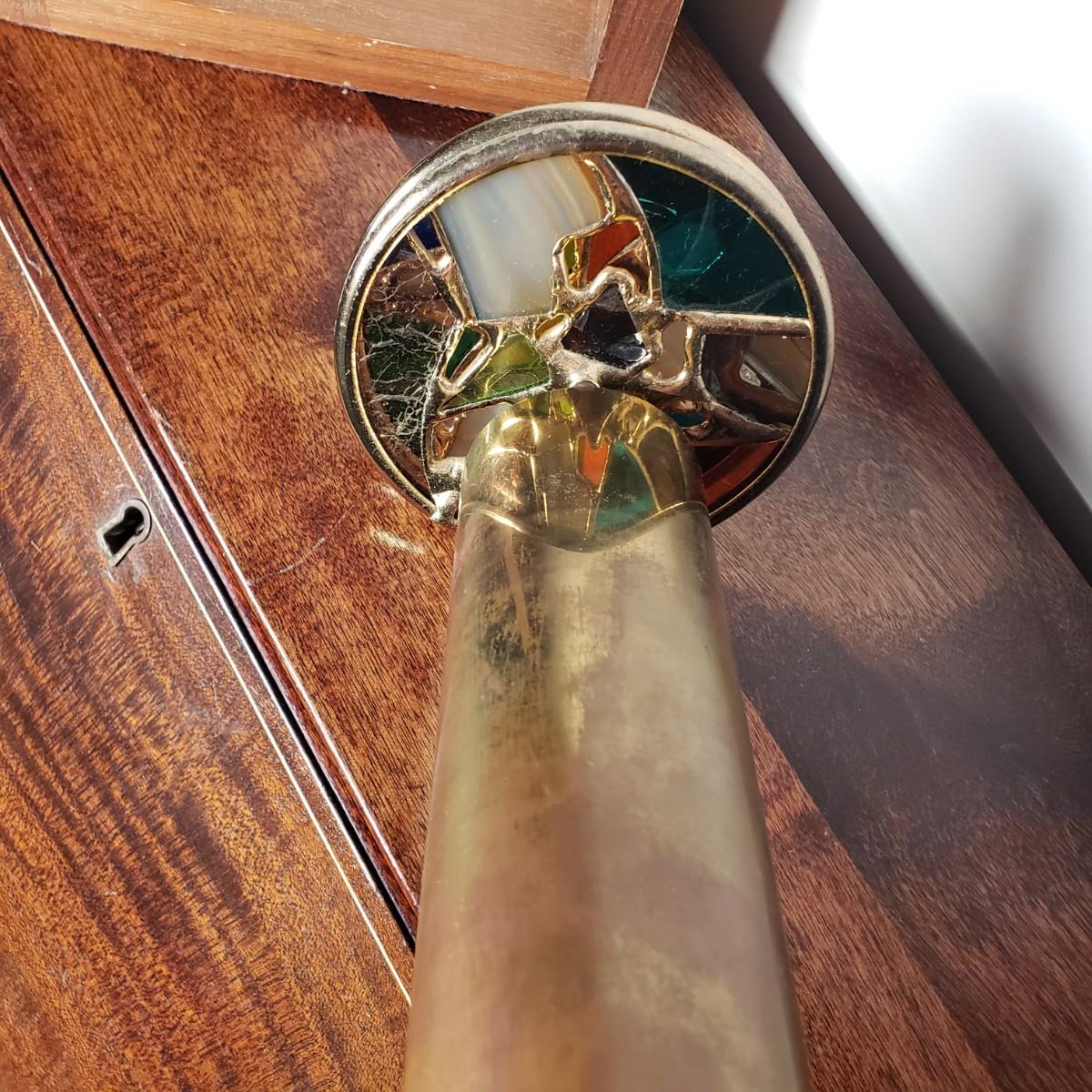 LOT 100L: Artist Signed Stained Glass Brass Kaleidoscope