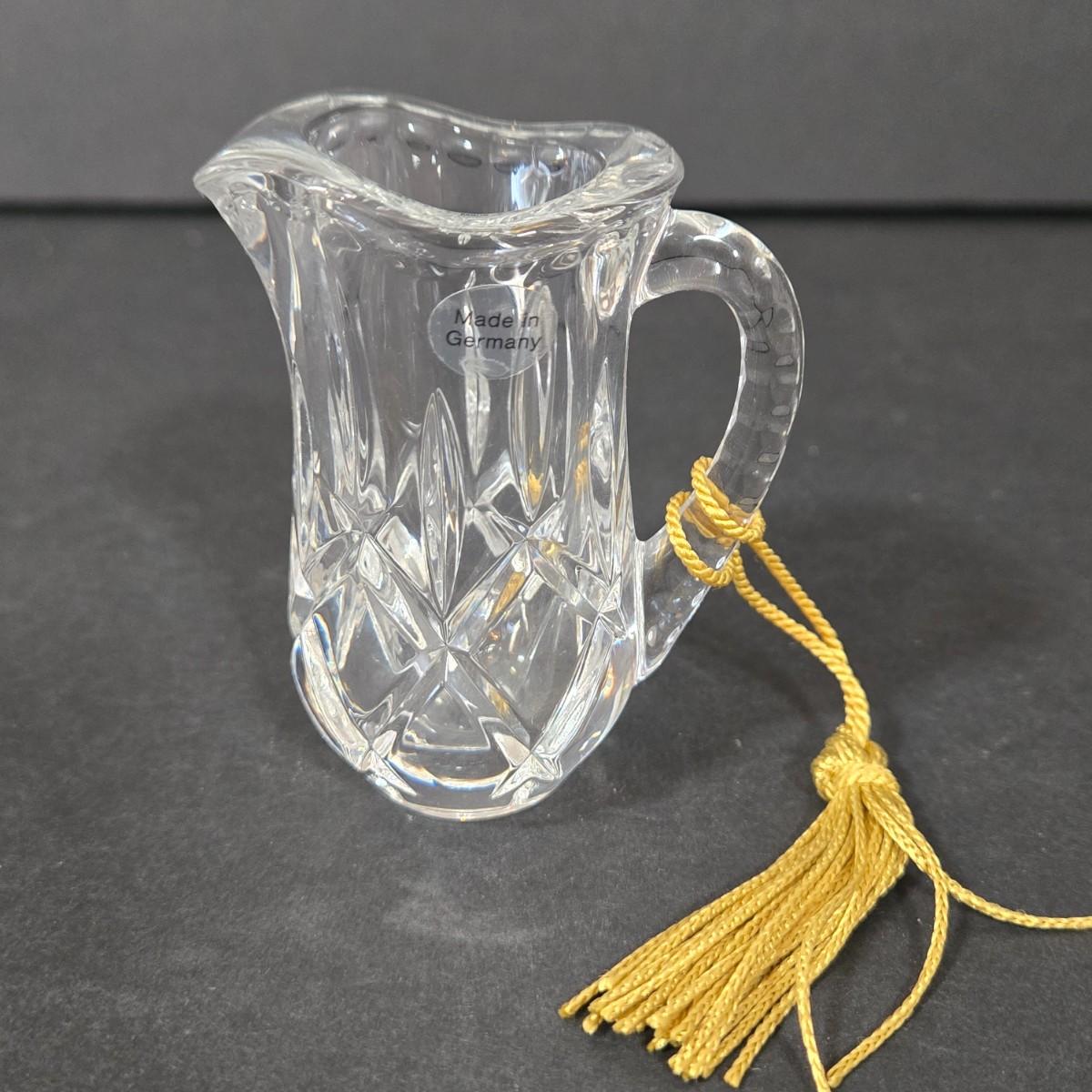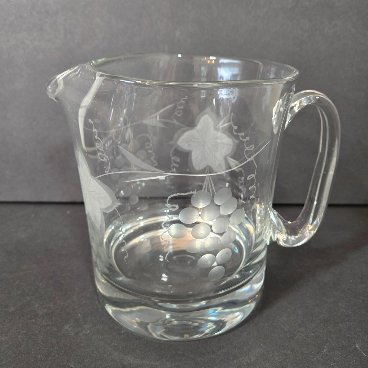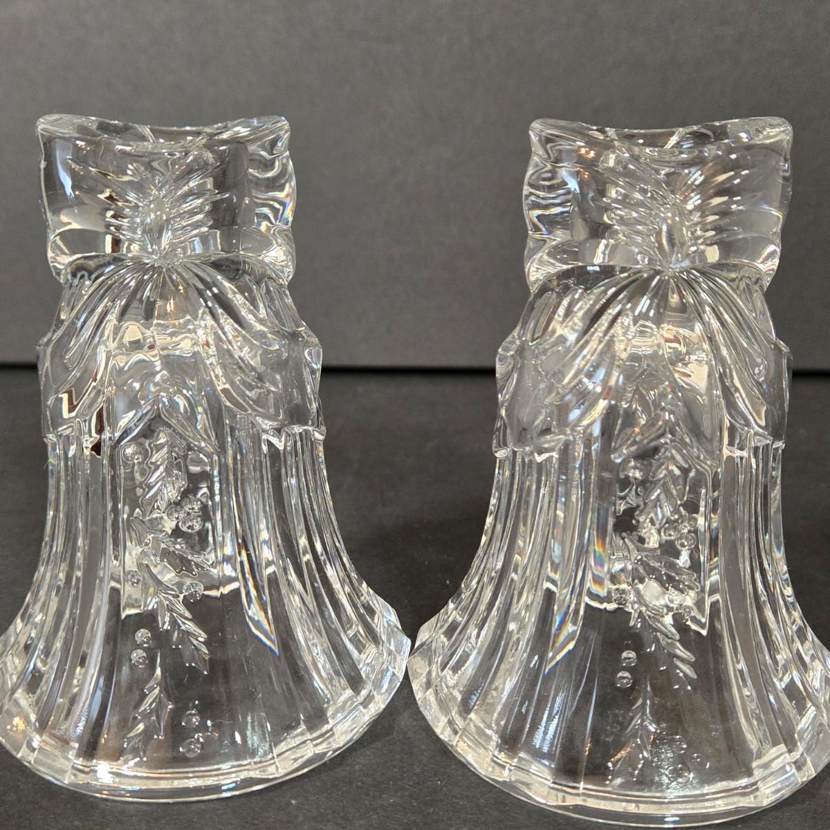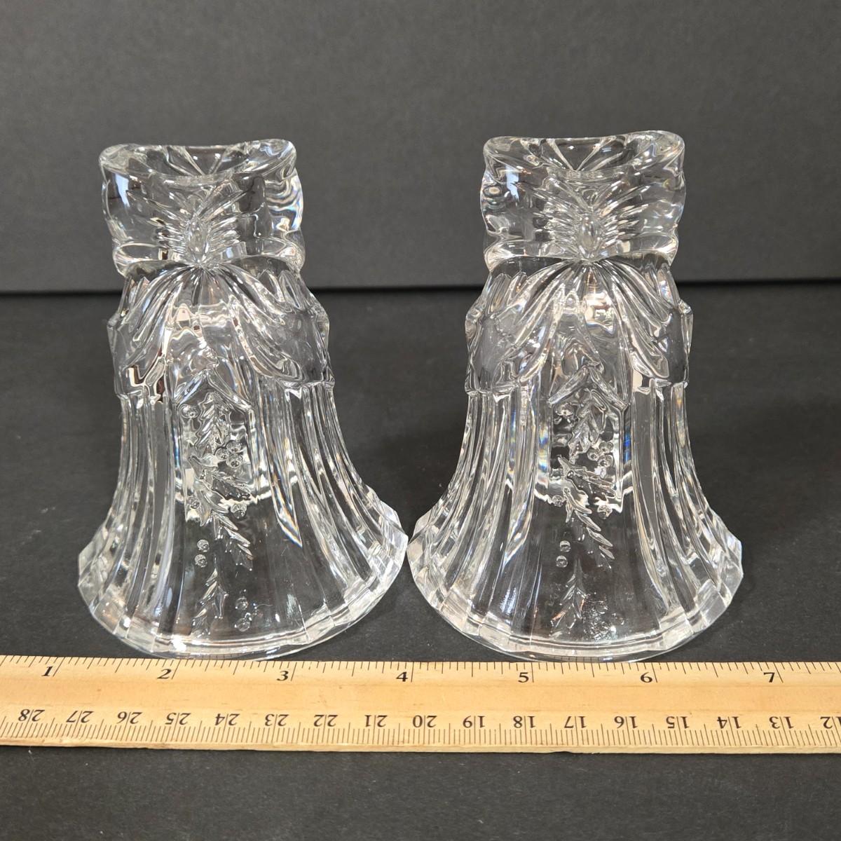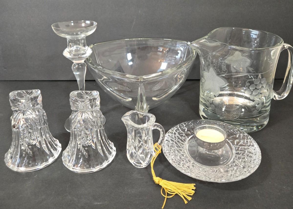 LOT 116D: Crystal Bell Shaped Taper Holders, Grape Vine Pitcher, and More