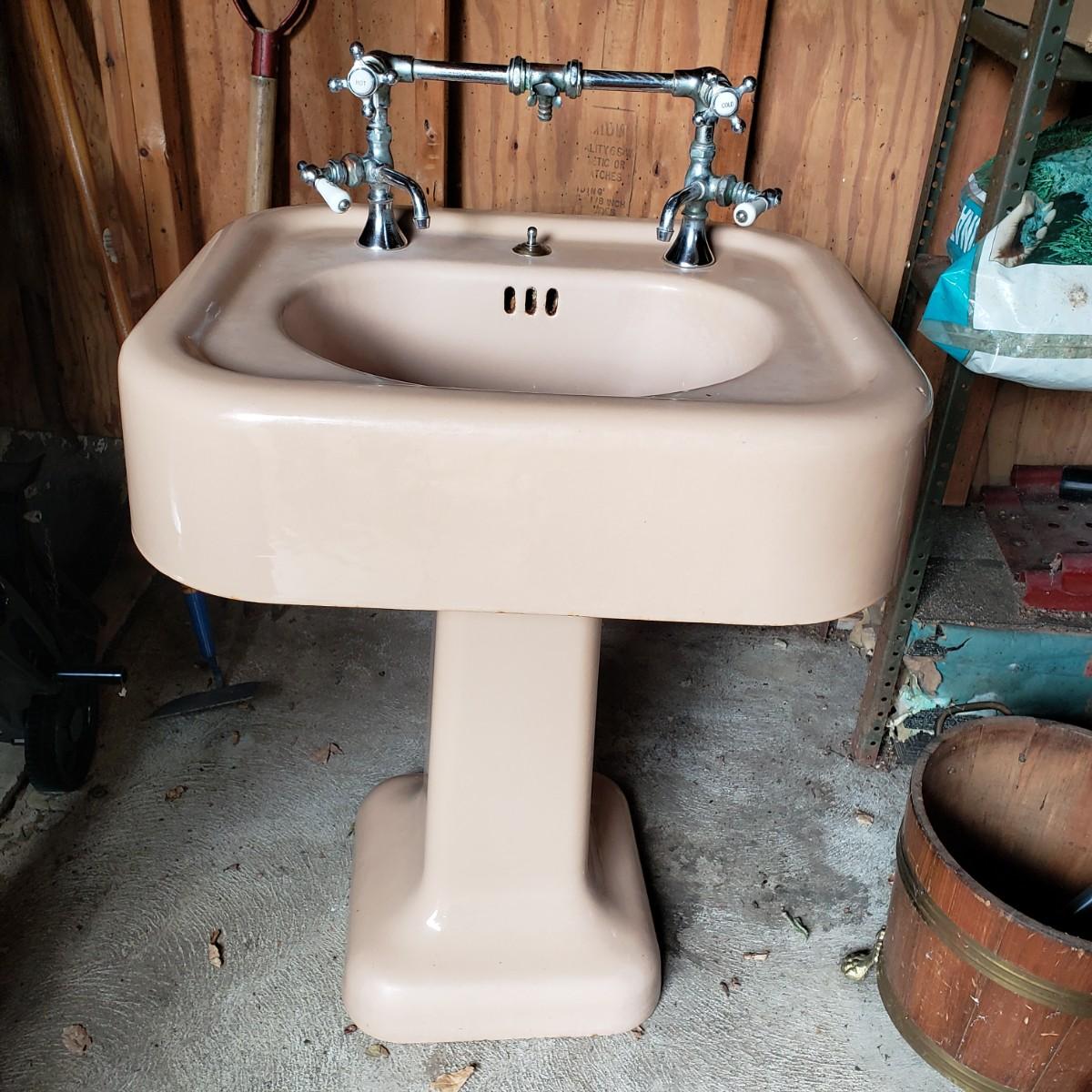 30" H sink 38" H with hardware 24" W 20" D- two pieces-pink/peach color