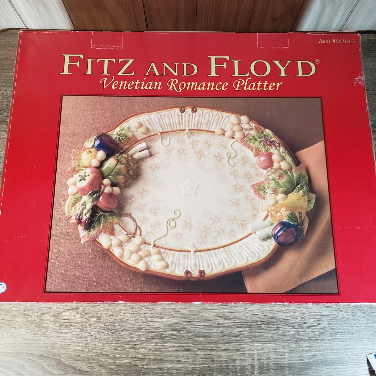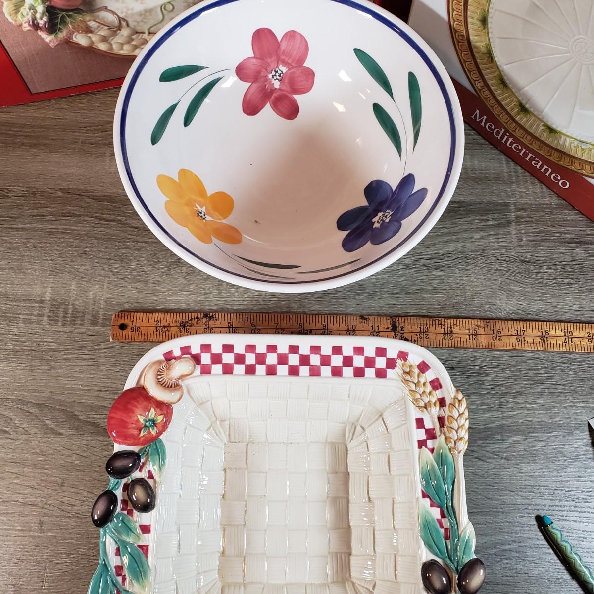 LOT 135B: New in Box Fitz and Floyd Serving Platters with Italian Hand Painted Floral Bowl