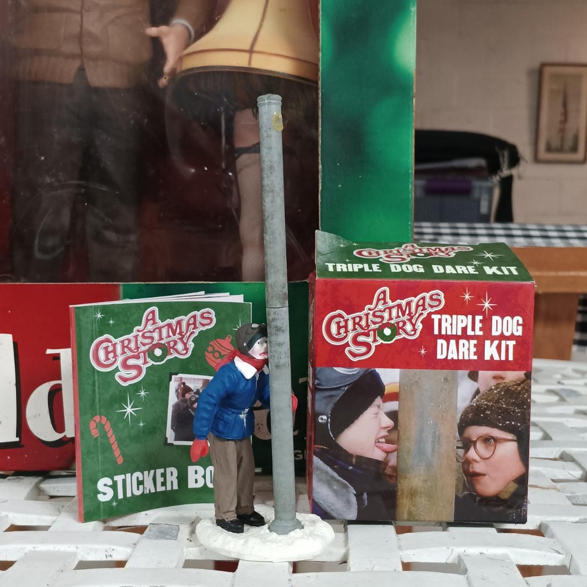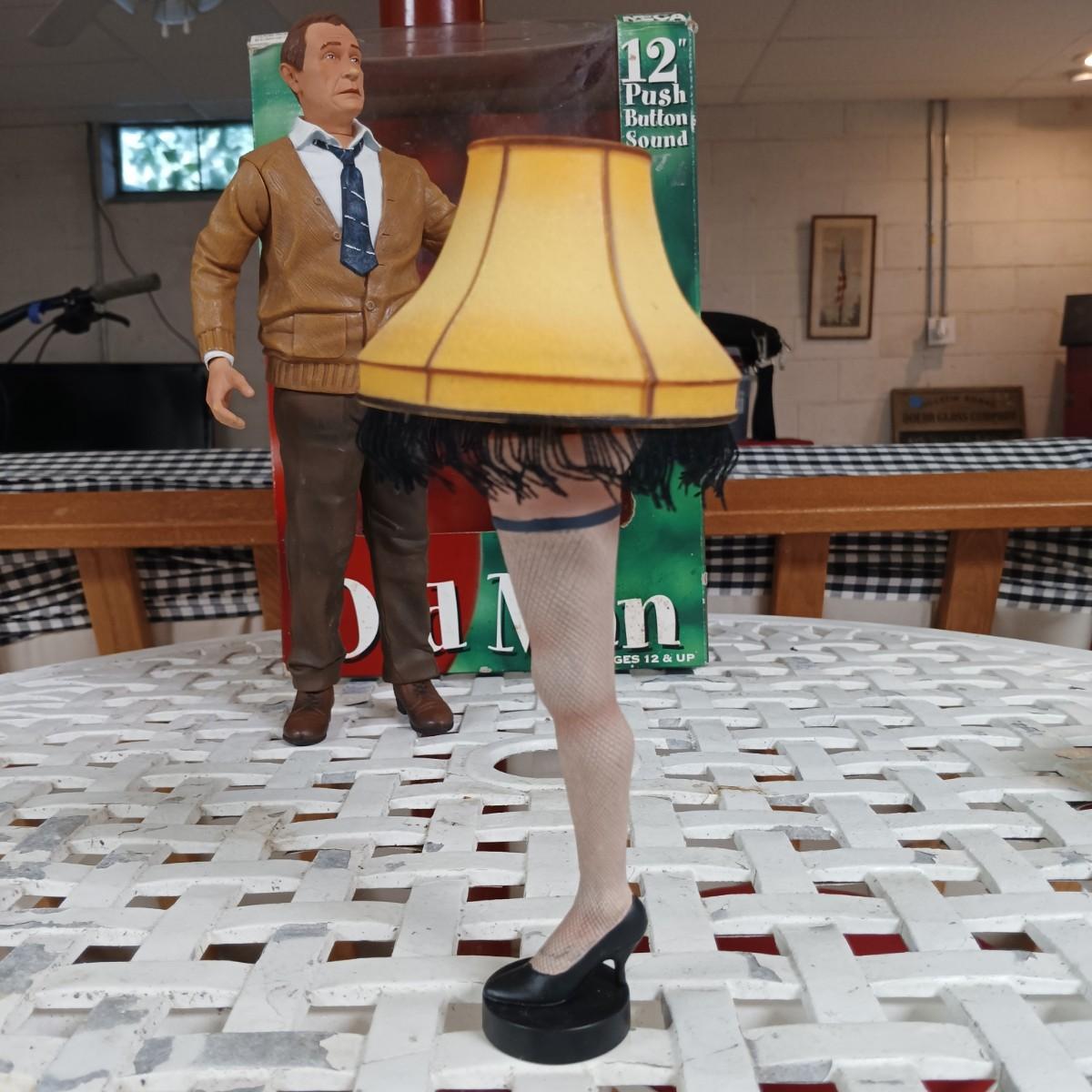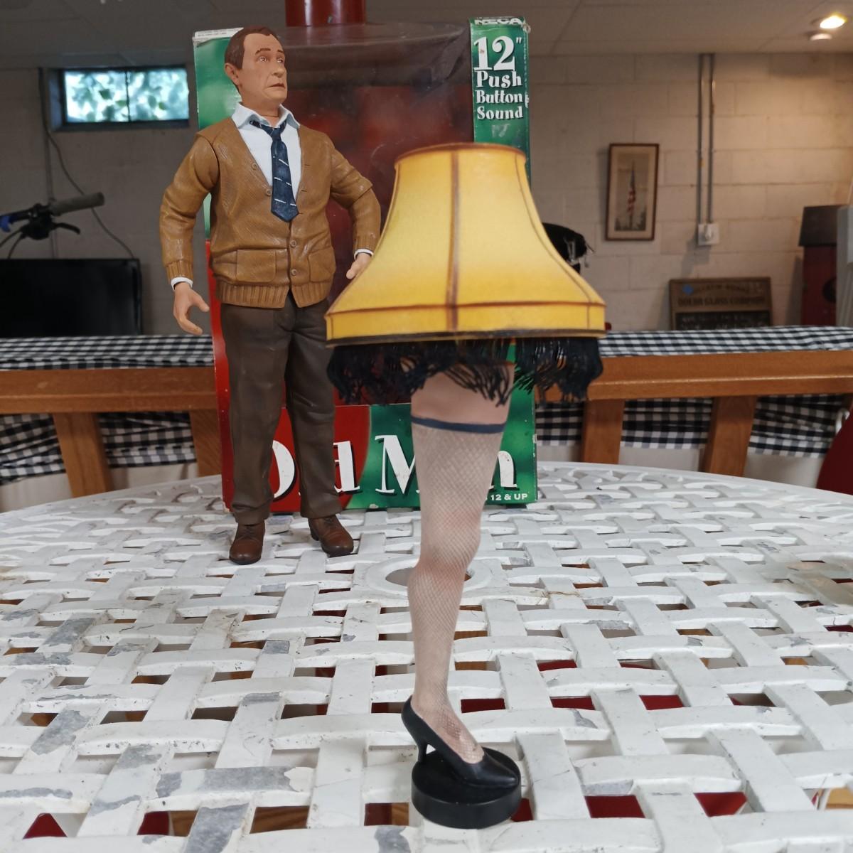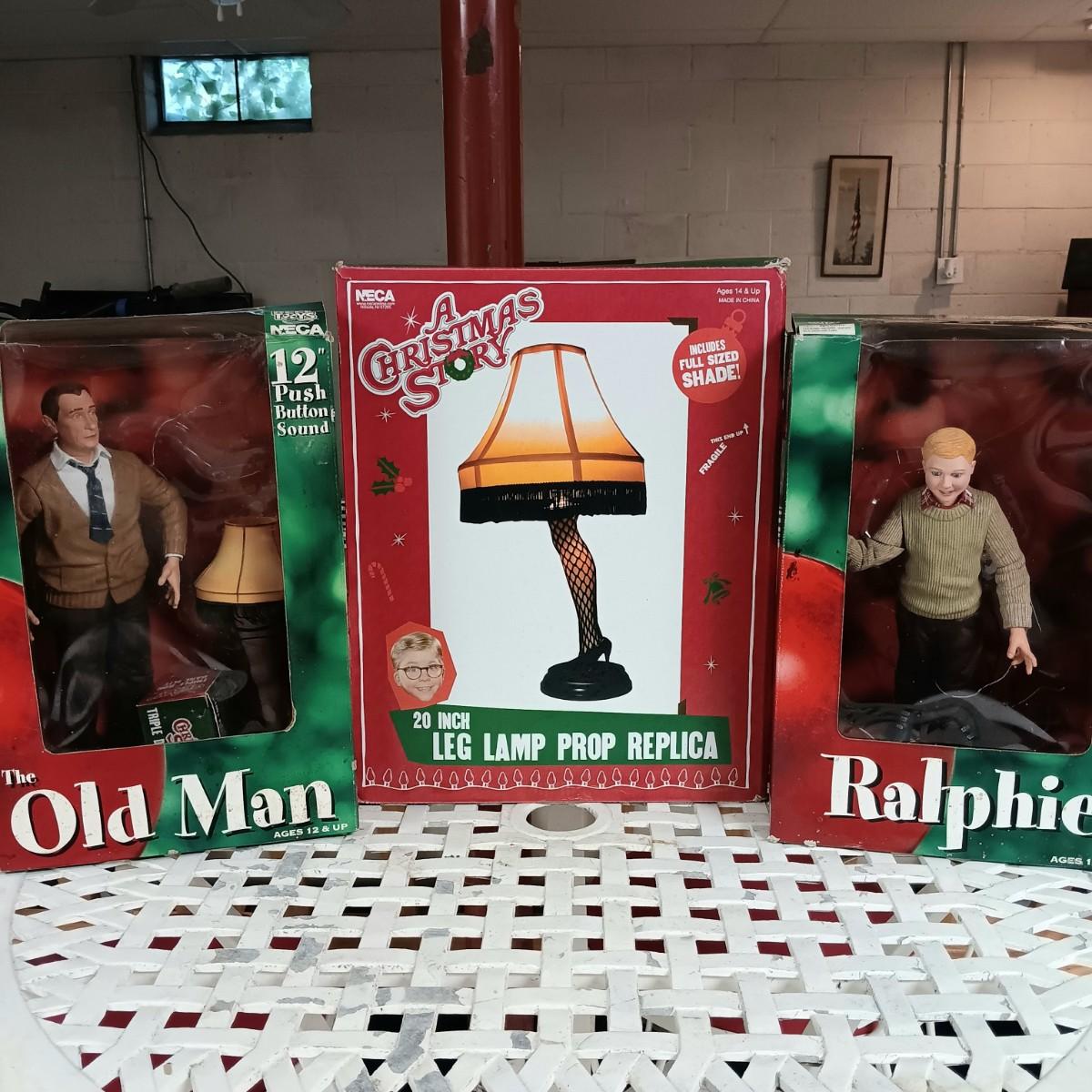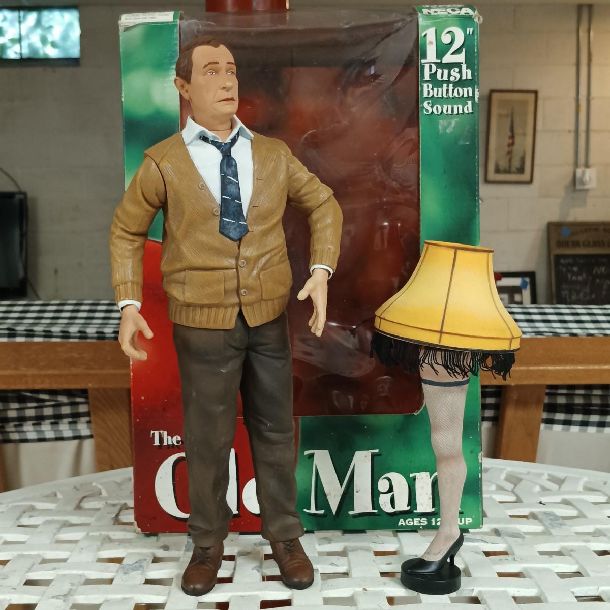 LOT 22: A Christmas Story NECA Ralphie and The Old Man Action Figures with 20" Leg Lamp & Triple Dog Dare Kit