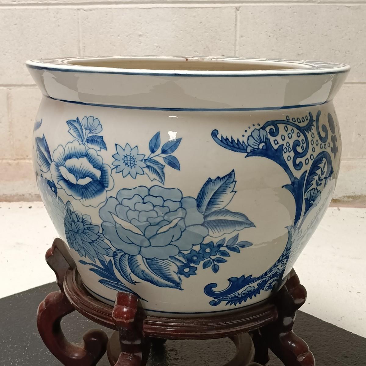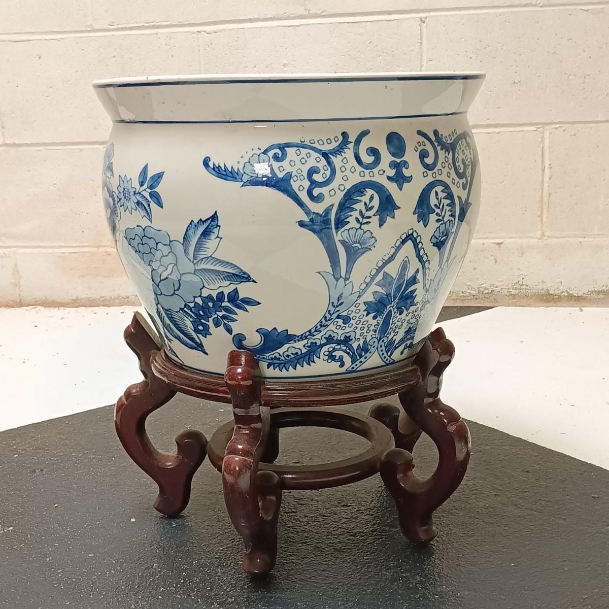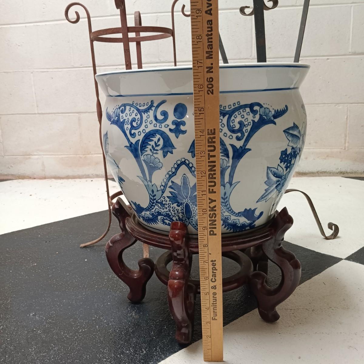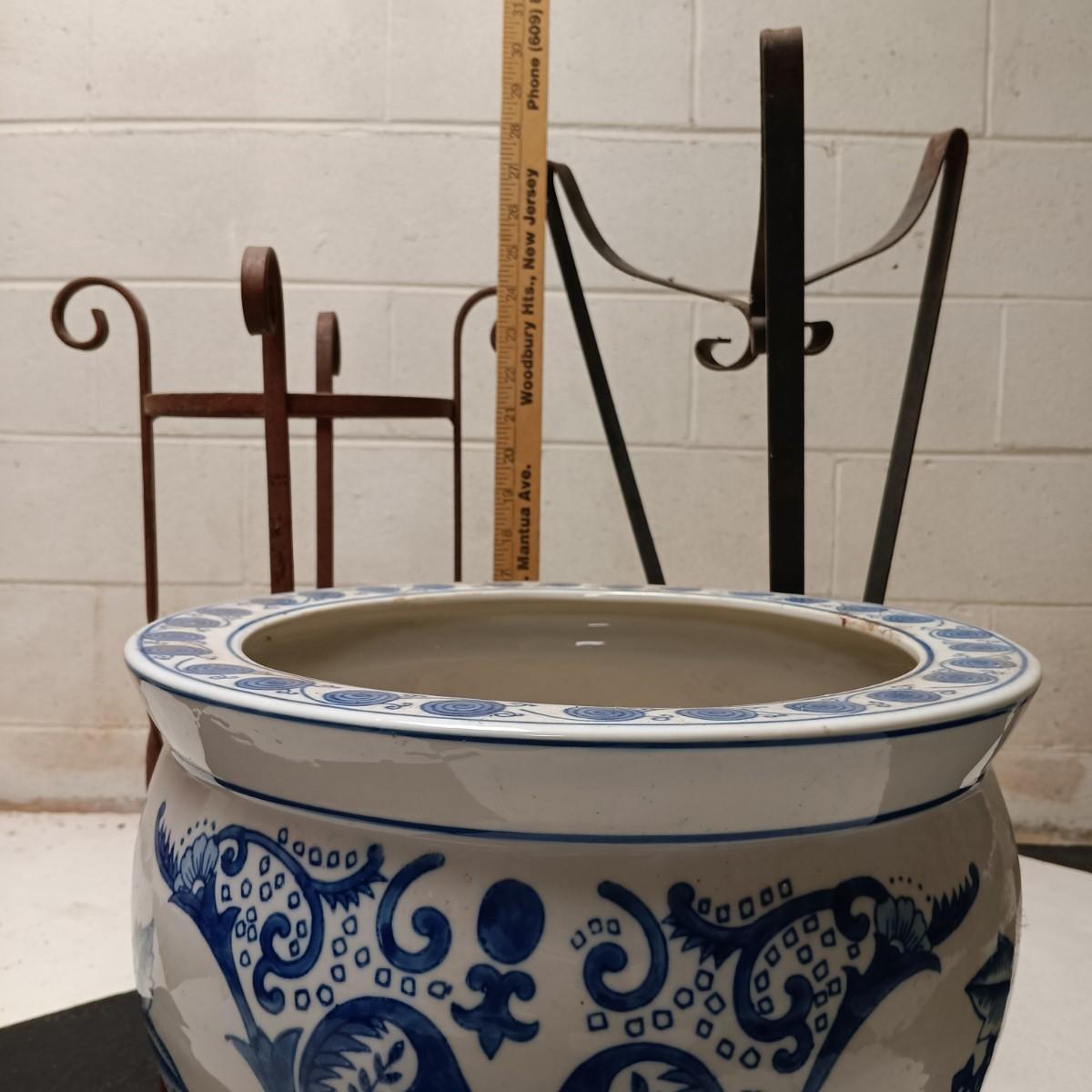 LOT 24: Large Pottery Planter with Metal Plant Stands