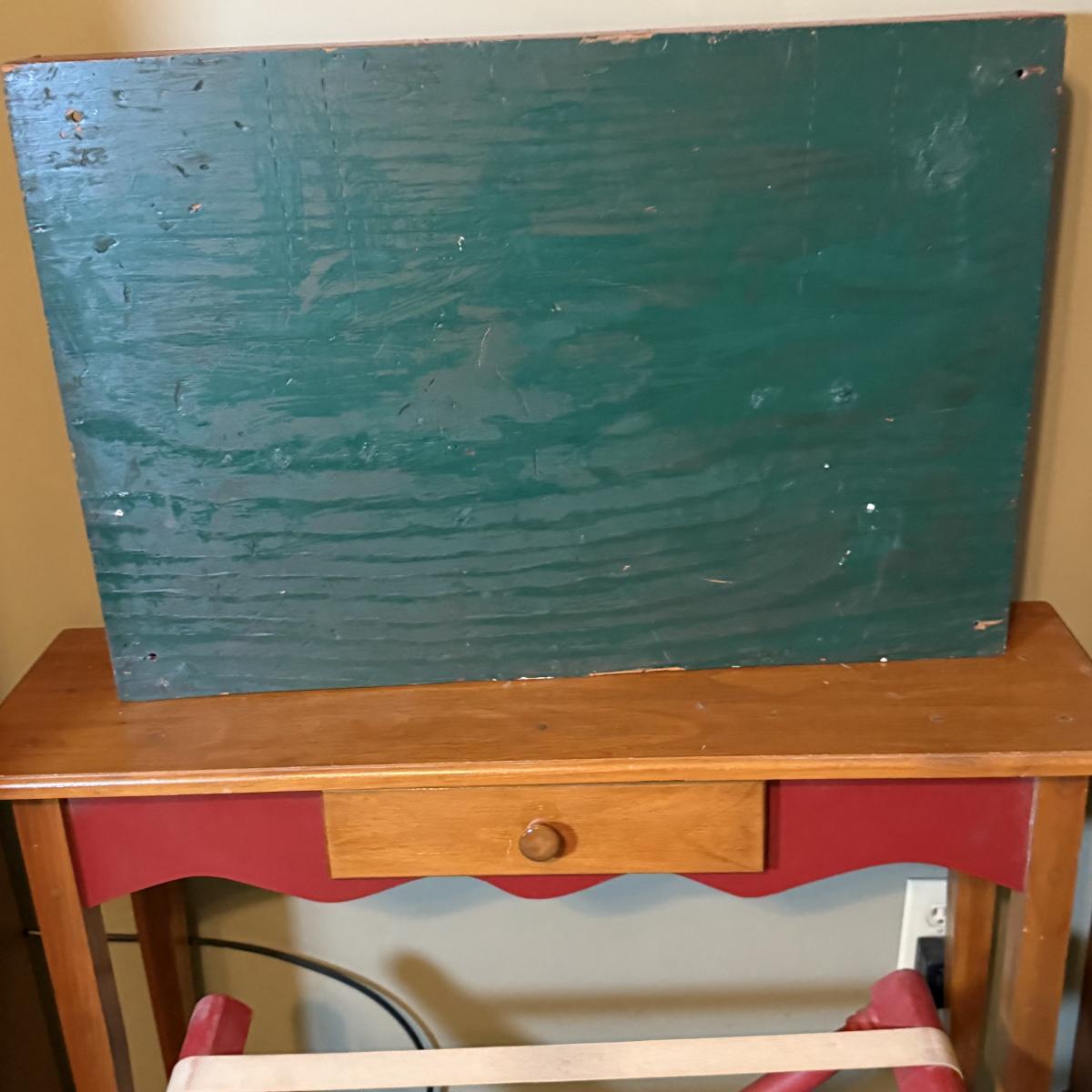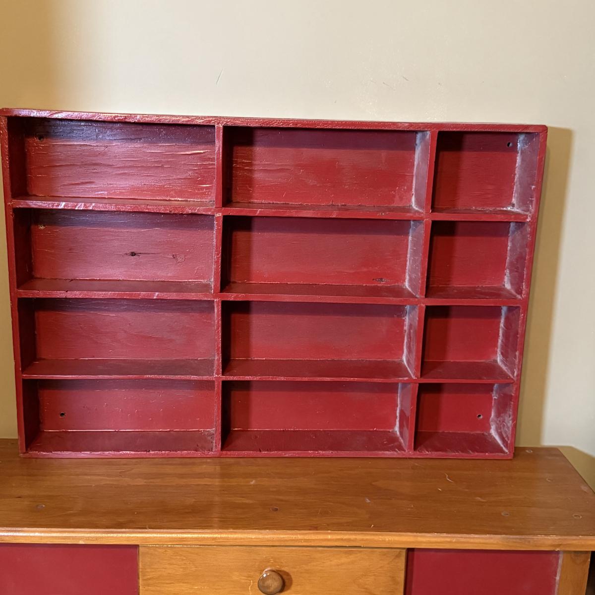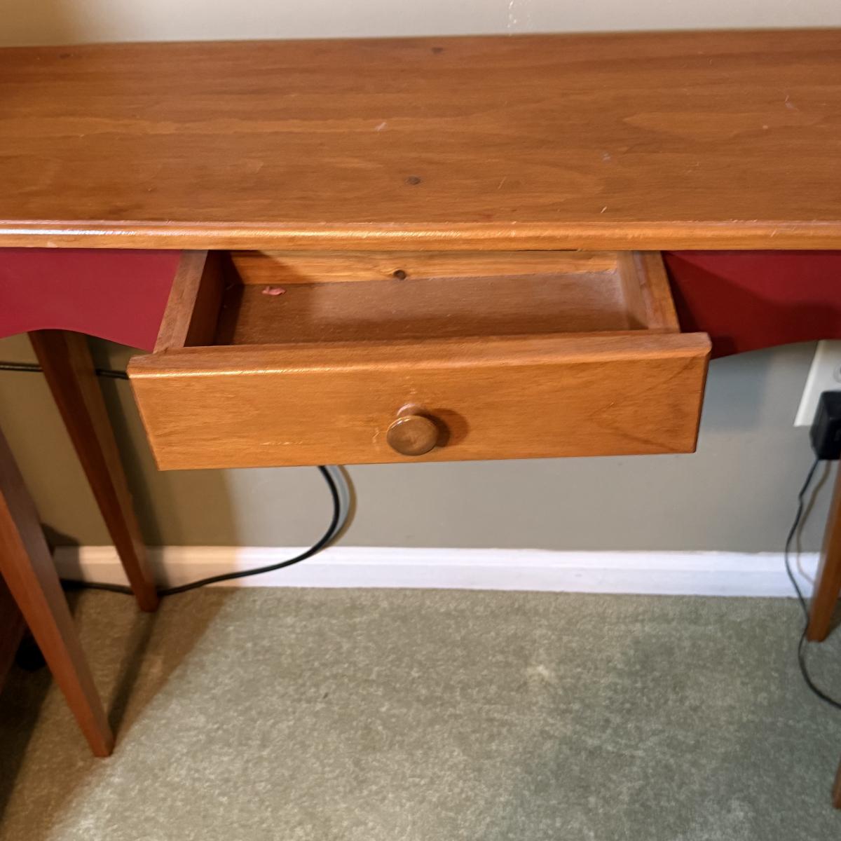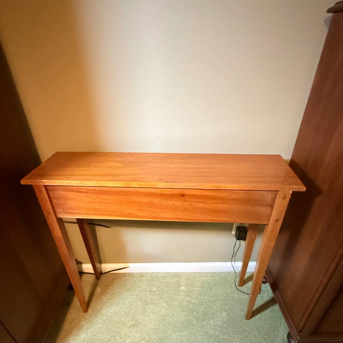 LOT 32: Amish Style Wood One Drawer Side State with Red Accent, Vintage/Antique Red Shelf and Luggage Stand