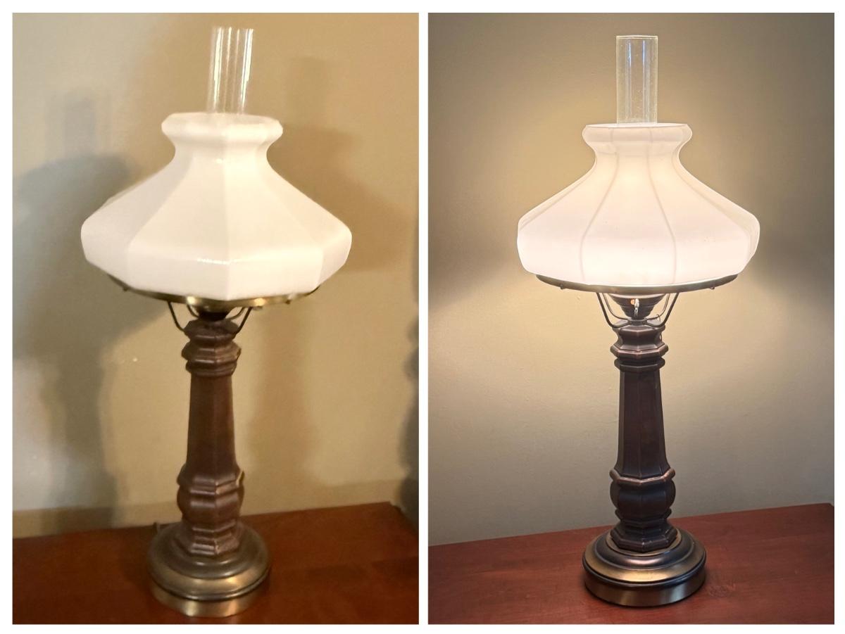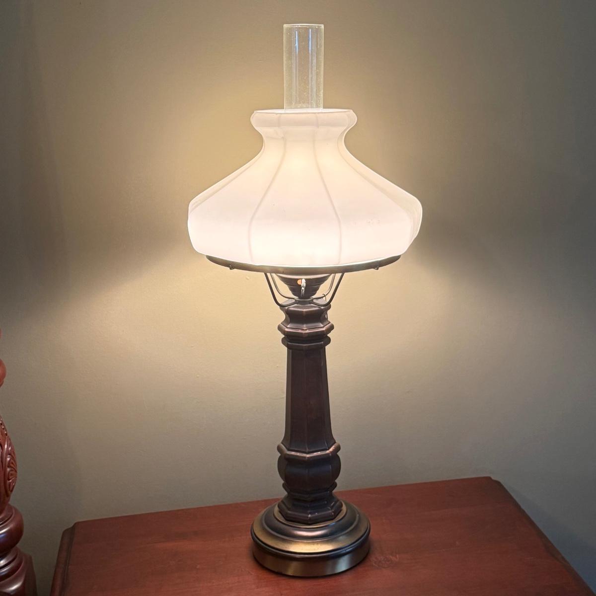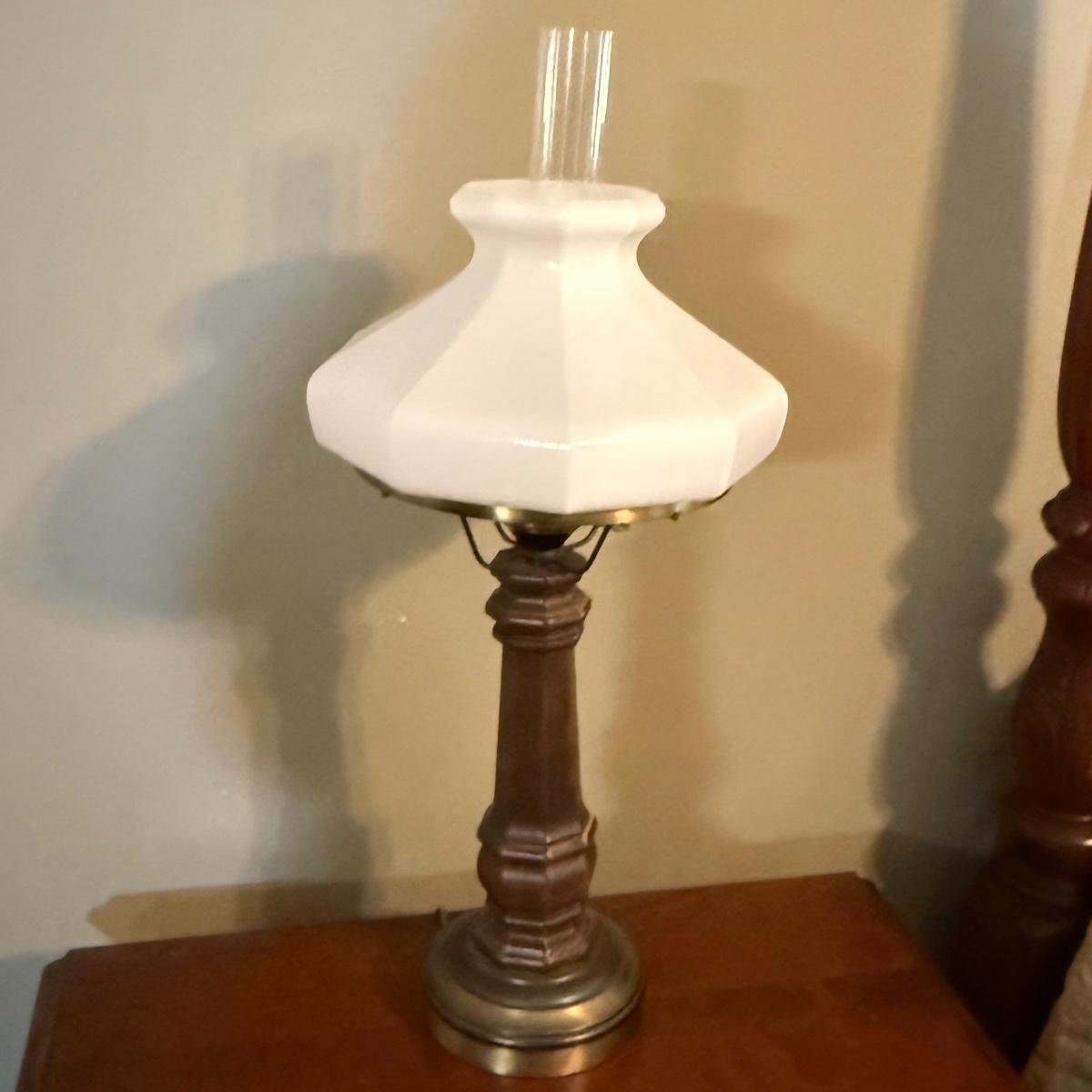 LOT 37: Vintage Brass Lamps w/Milk Glass Shades