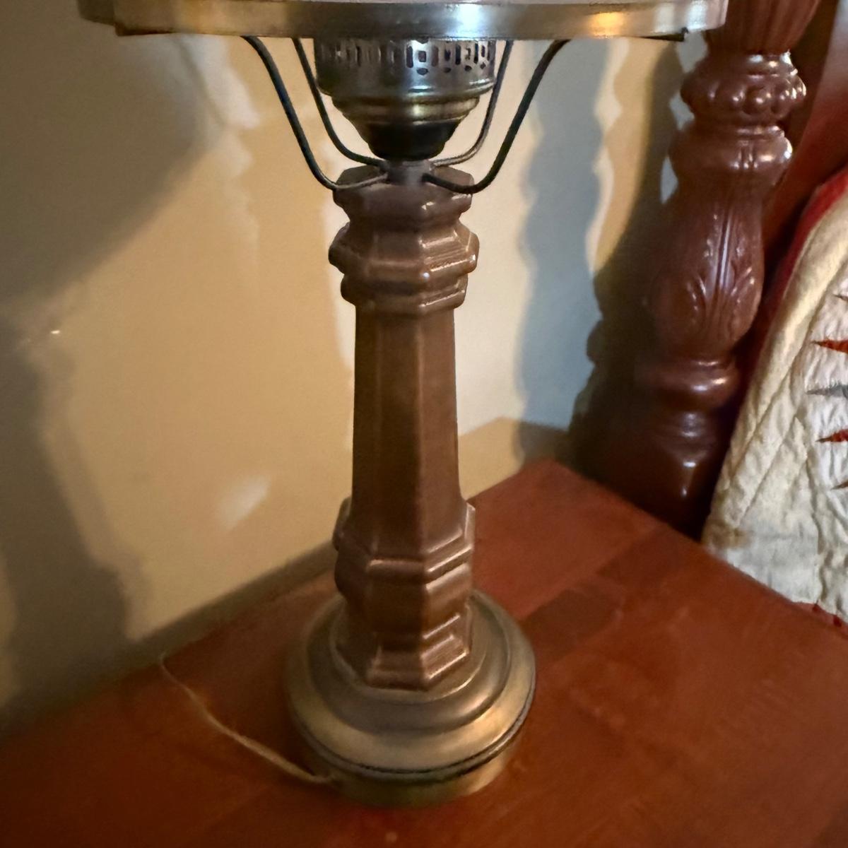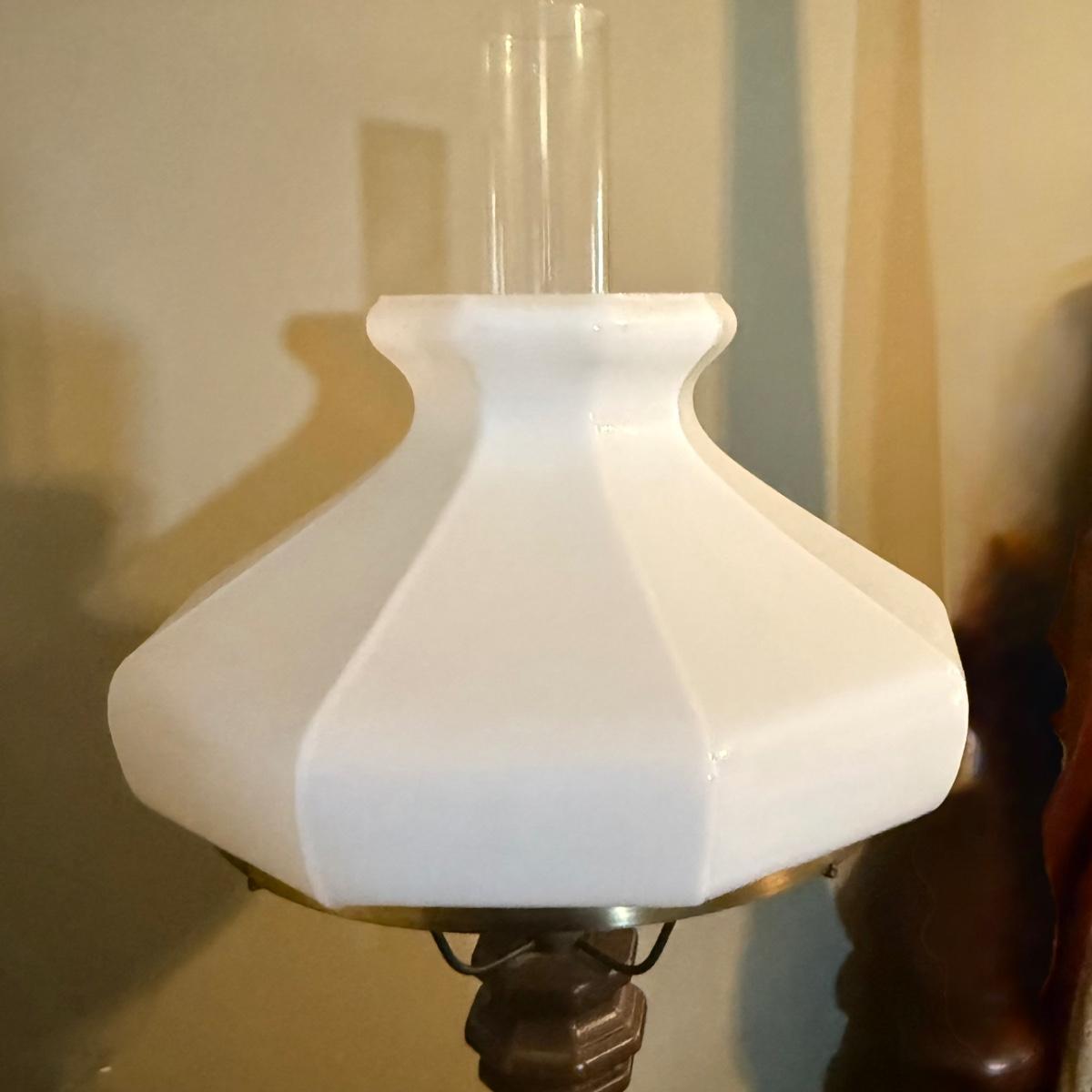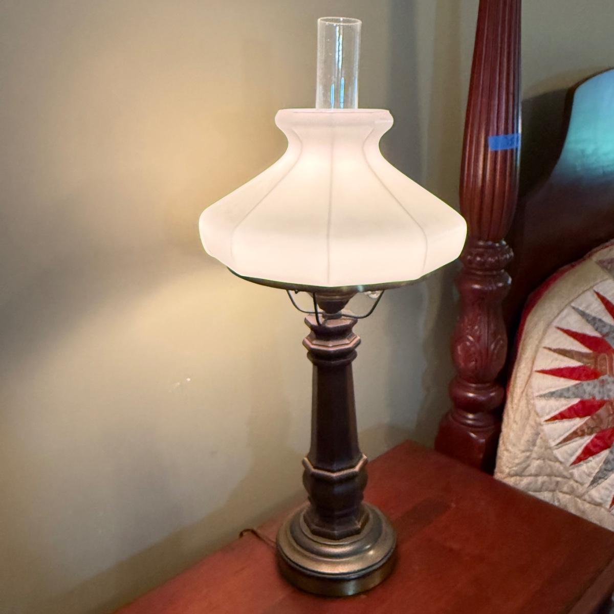 LOT 37: Vintage Brass Lamps w/Milk Glass Shades