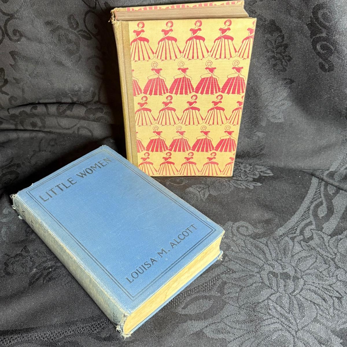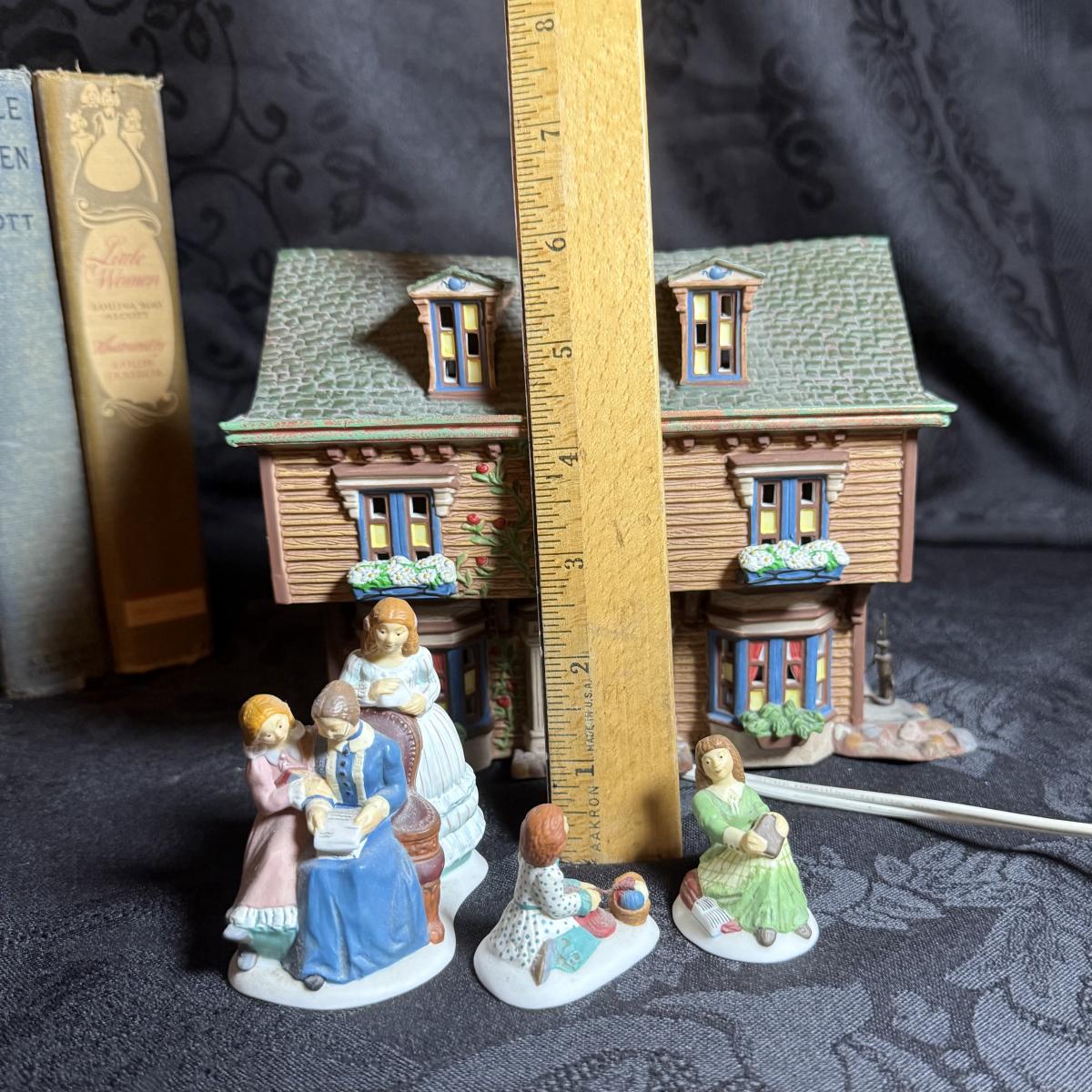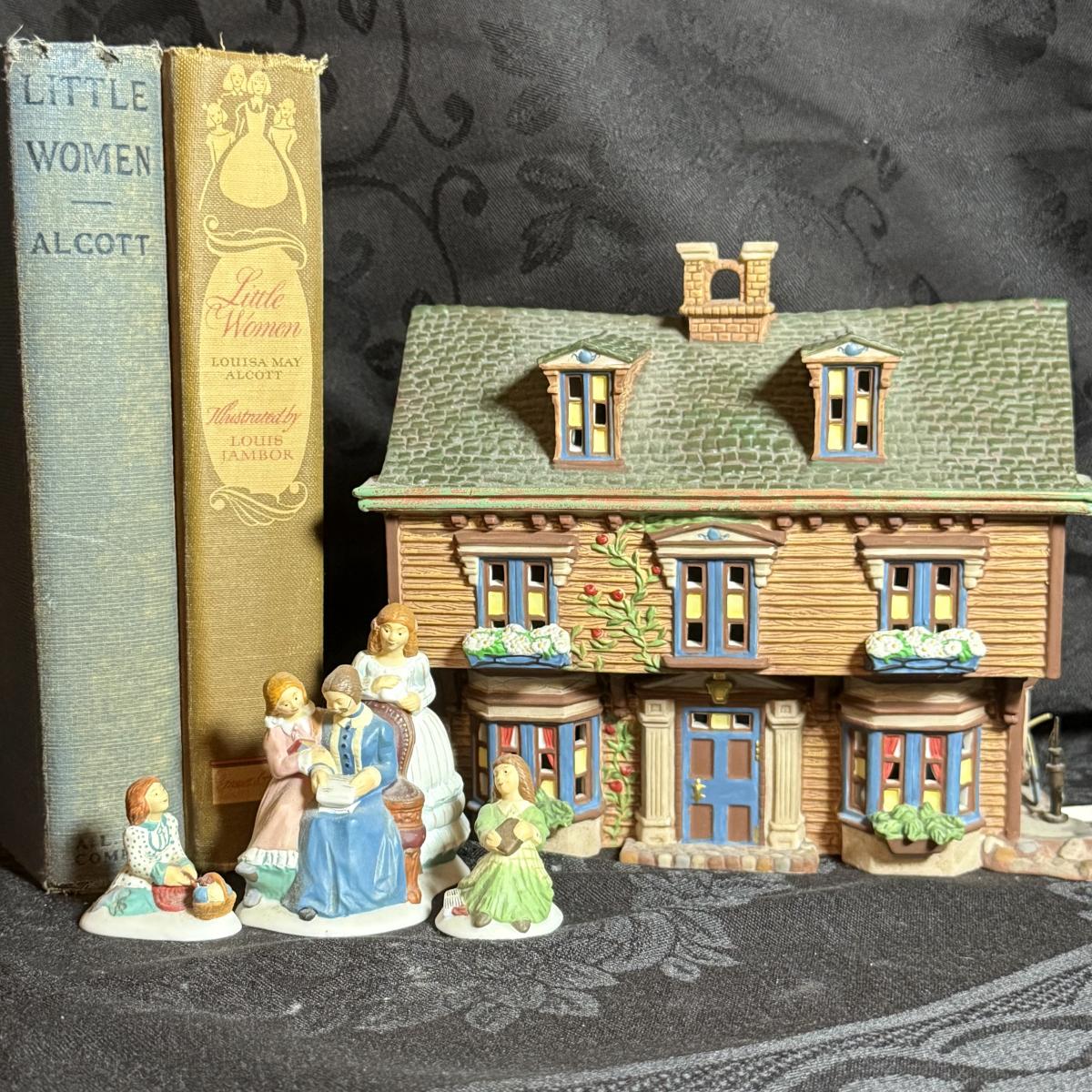 LOT 43: Department 56 Little Women House and Figures and Two(2) Vintage Editions of Louisa May Alcott’s Little Women