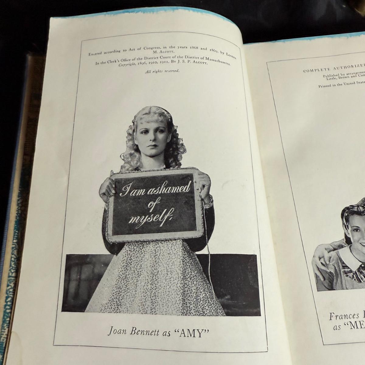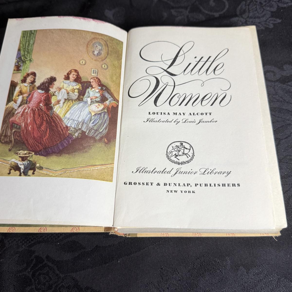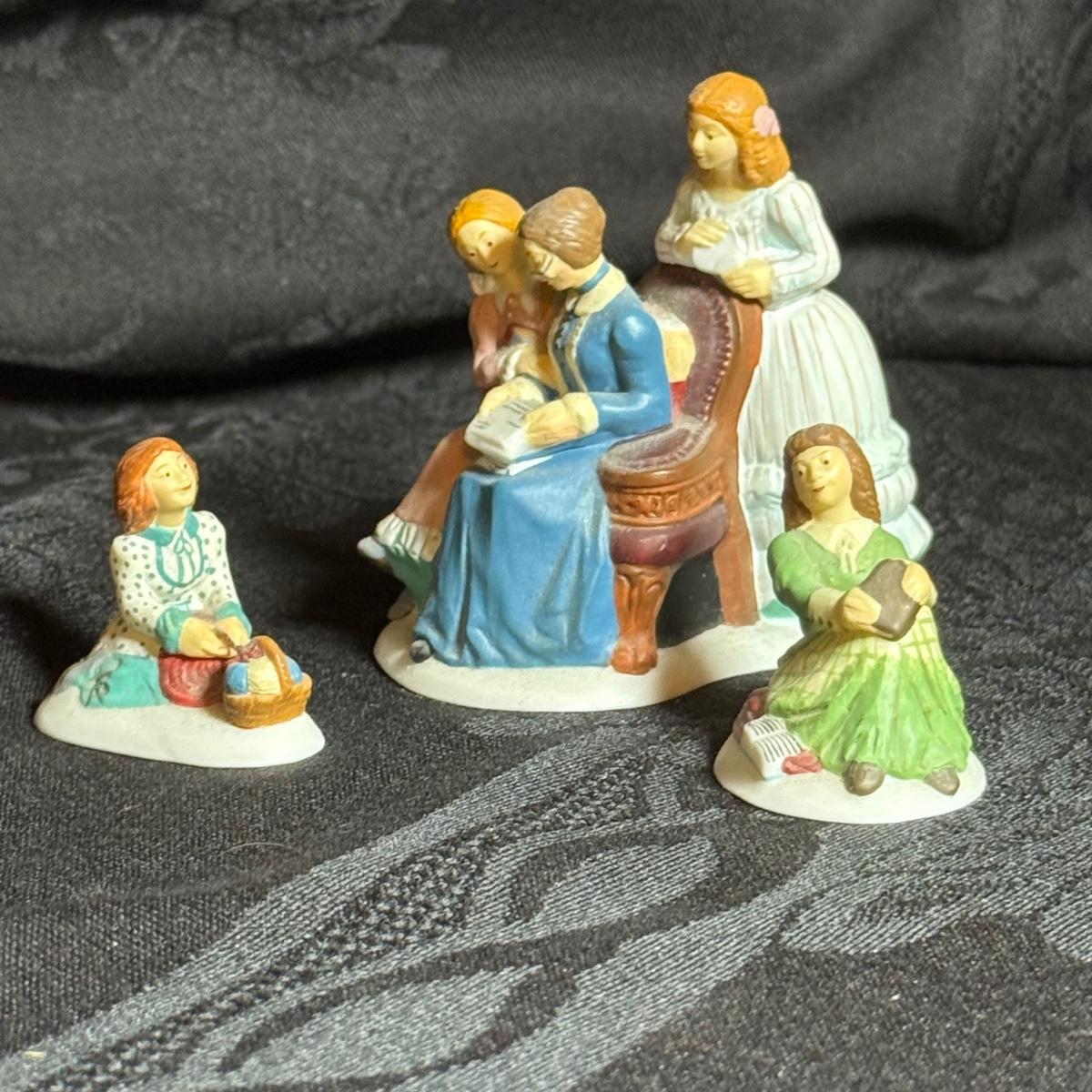 LOT 43: Department 56 Little Women House and Figures and Two(2) Vintage Editions of Louisa May Alcott’s Little Women