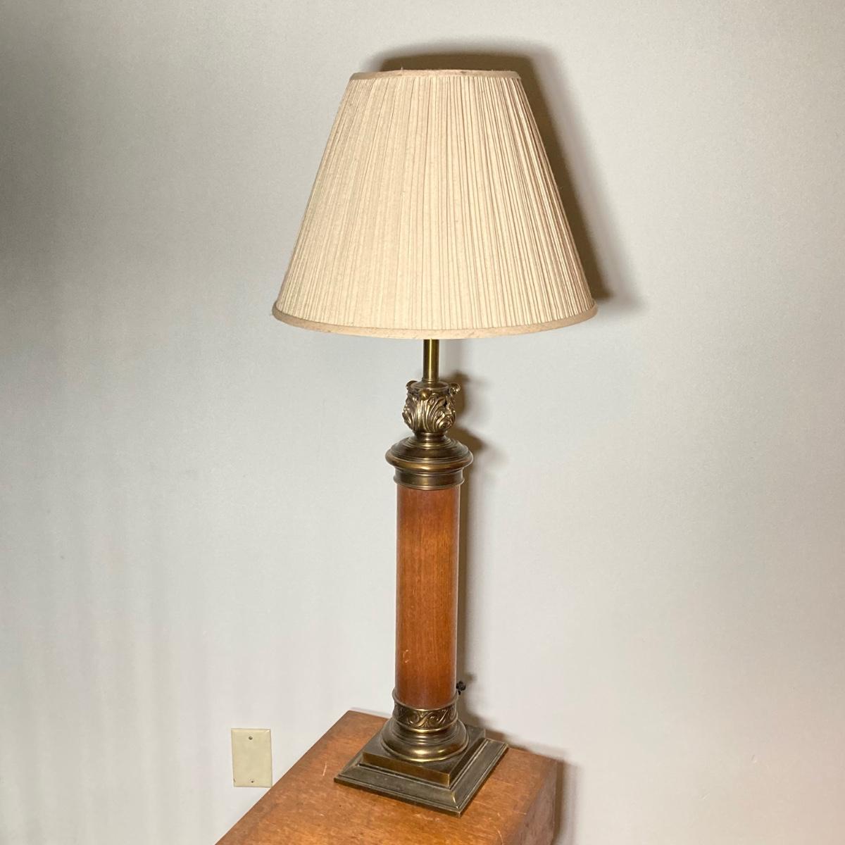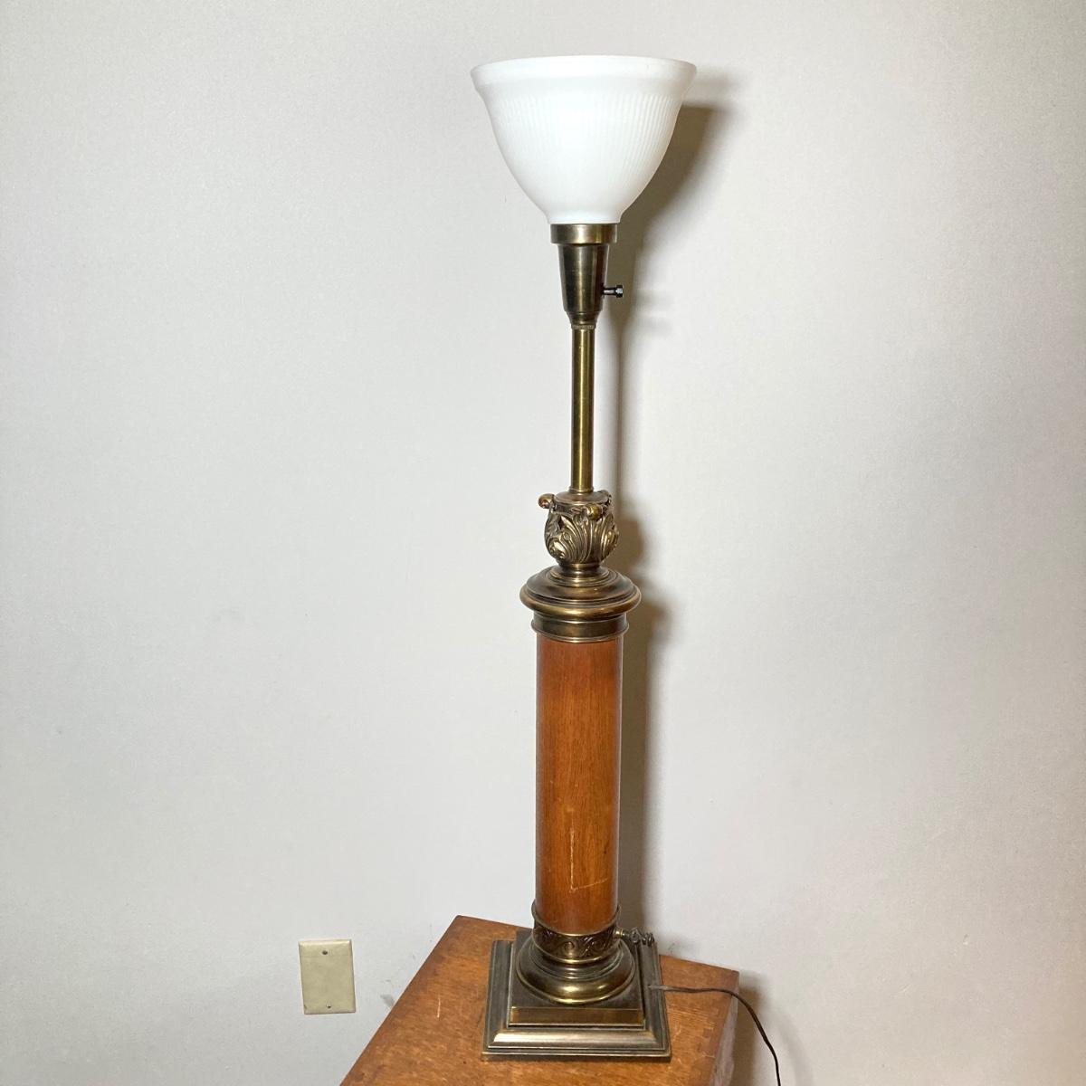 LOT 55: Vintage Wood and Brass Torchiere Table Lamp