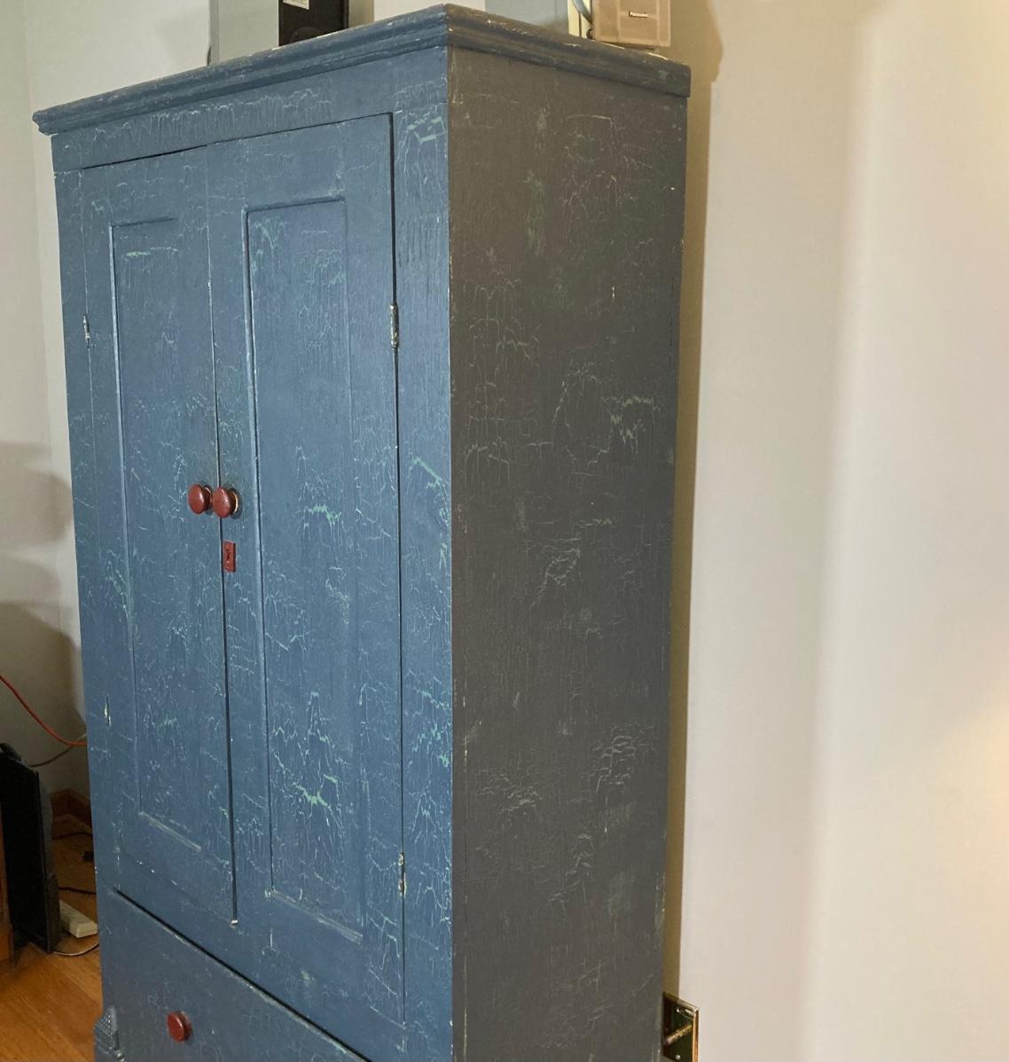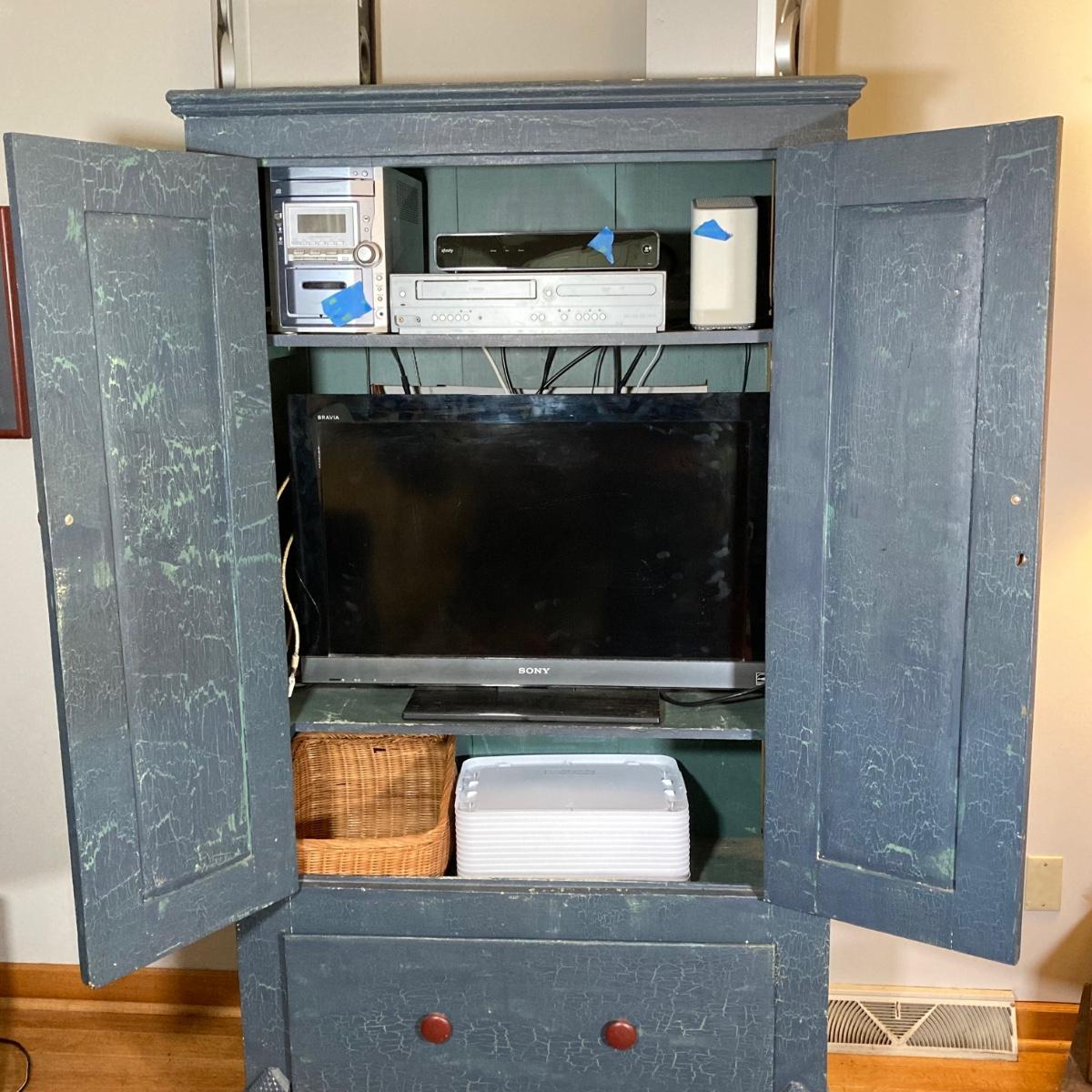 LOT 58: Painted Blue Gray Cabinet / Entertainment Center
