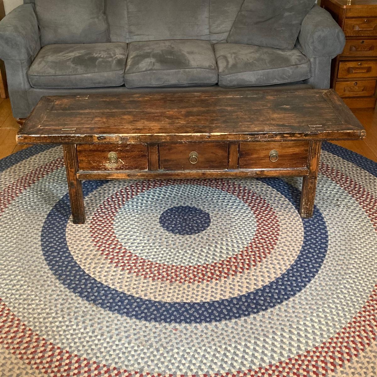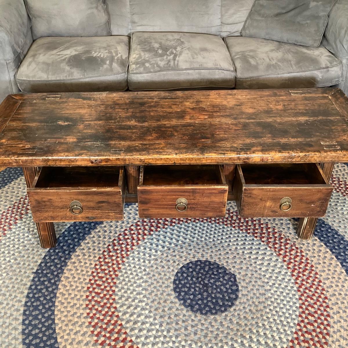 LOT 60: Vintage Rustic Farmhouse Wood Coffee Table with Storage