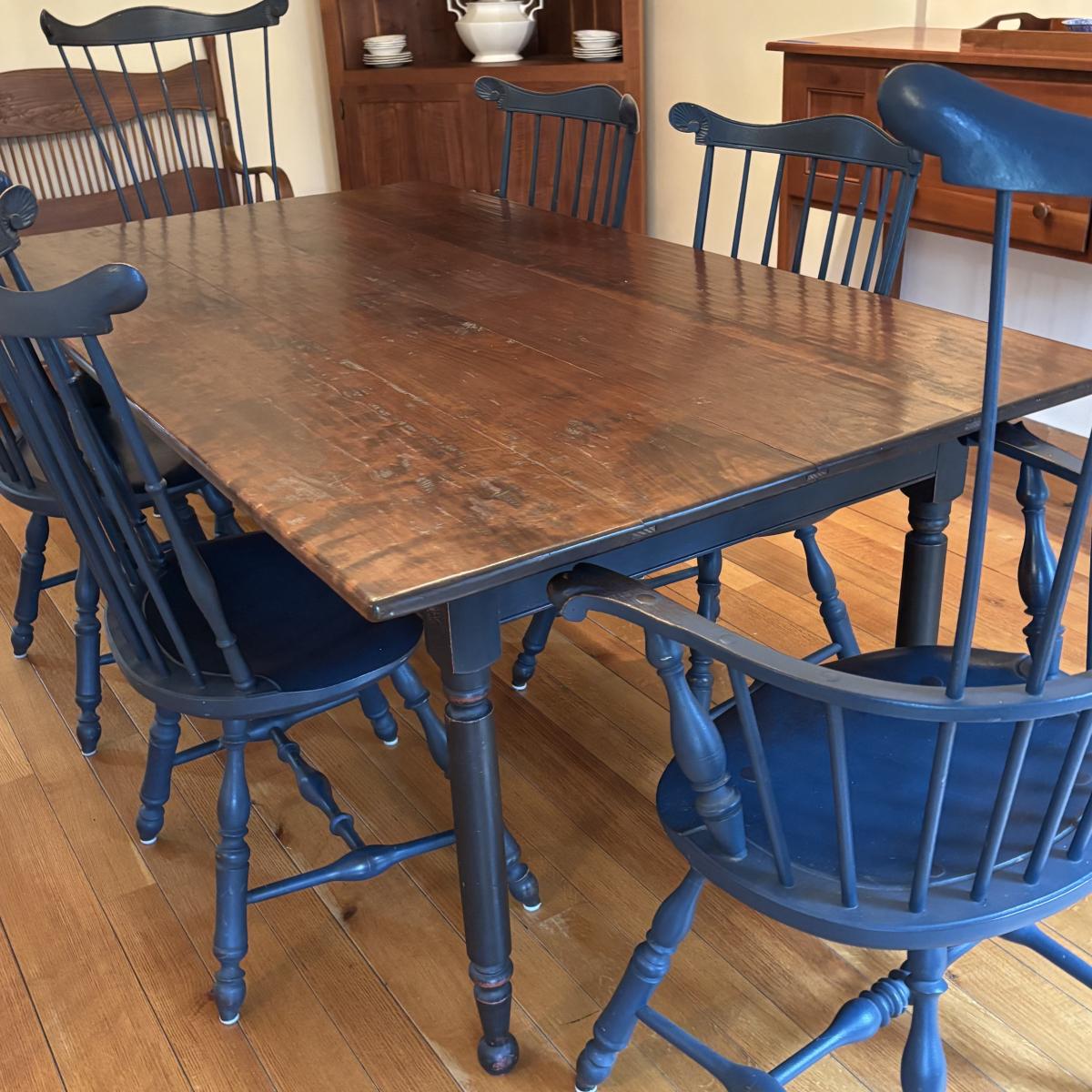LOT 82: Amish Made Farmhouse Table w/Windsor Style Chairs