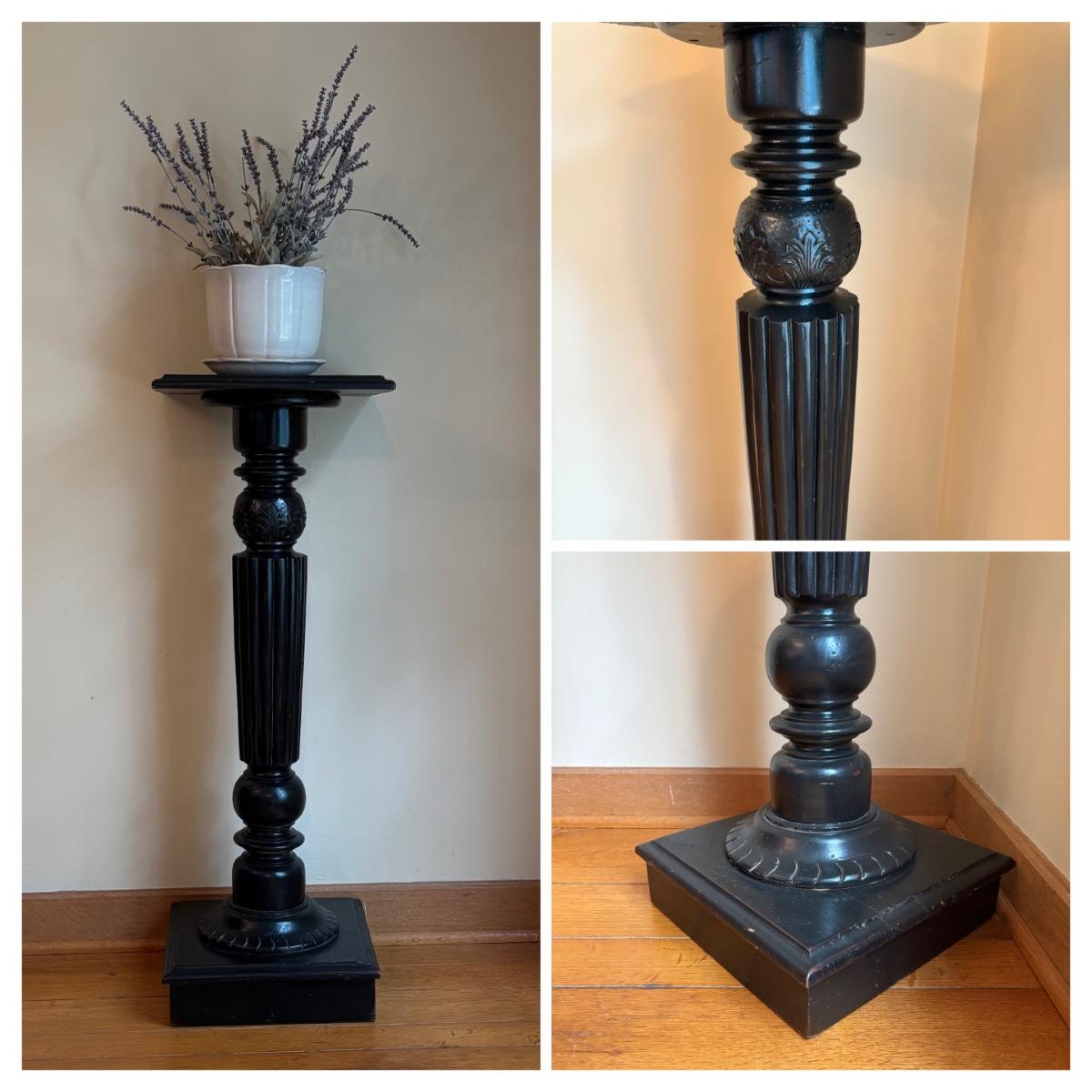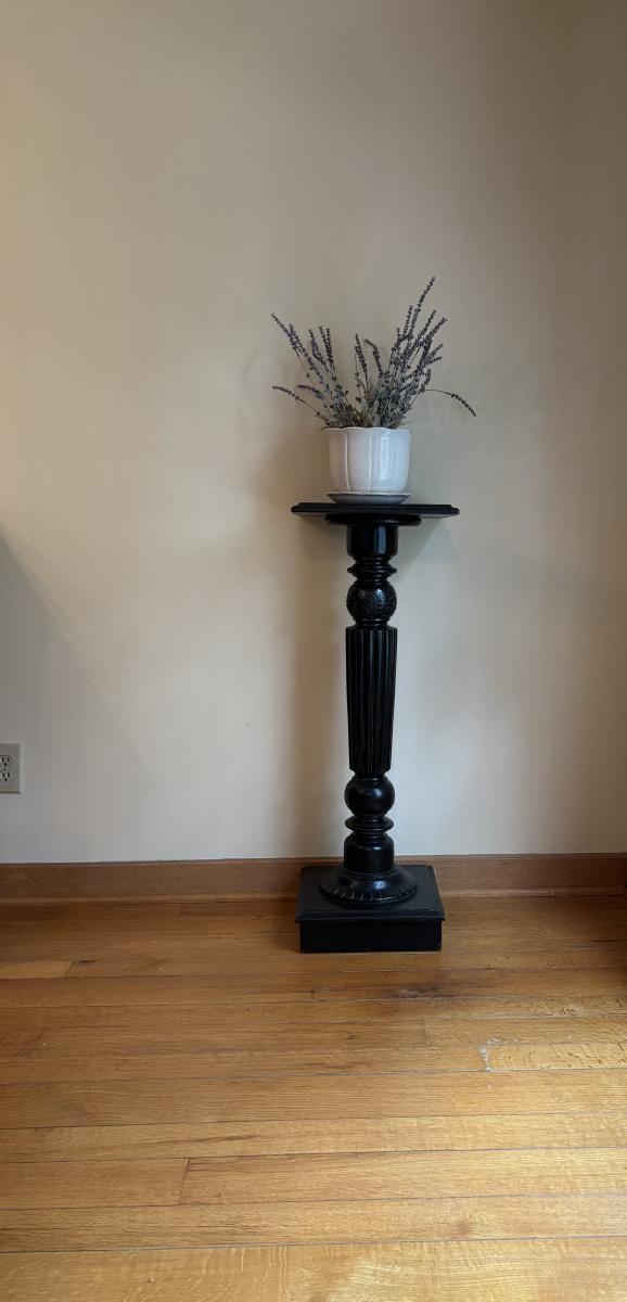 LOT 86: Wooden Painted Balck Plant Stand w/Faux Potted Lavender