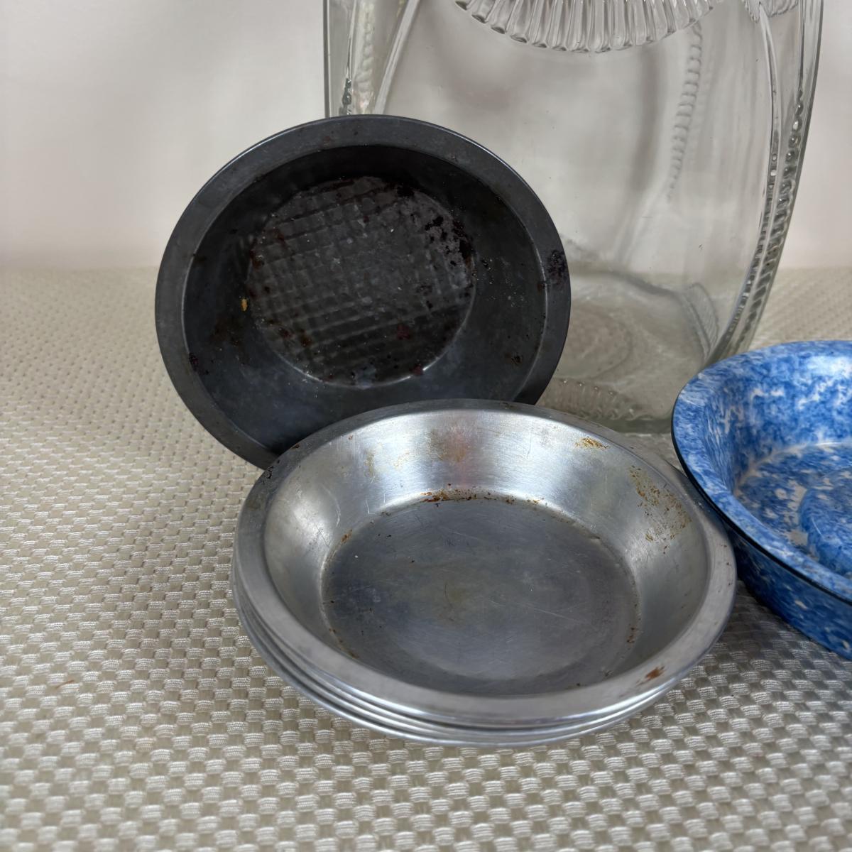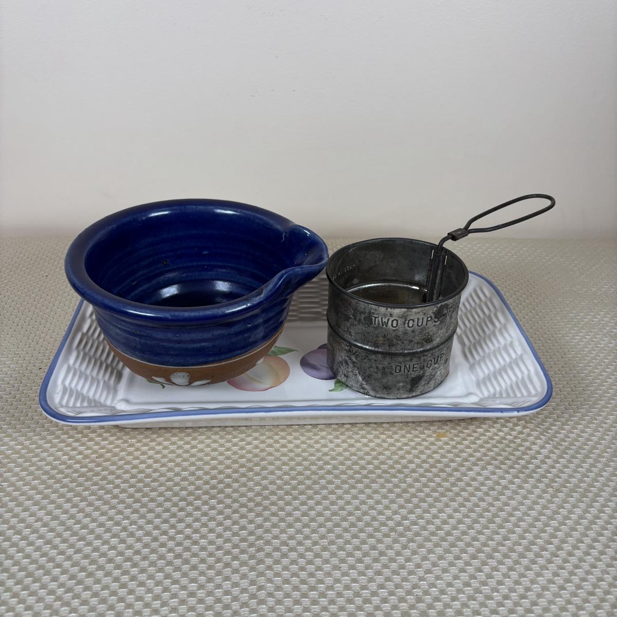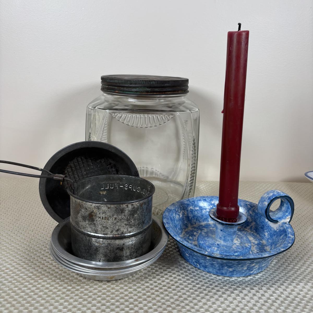 LOT 100: Tamashausky Red Earthen Ware "Apple Pie Plate", DDR Pottery Stoneware Crock, Stangl Spongeware Candle Stick & More