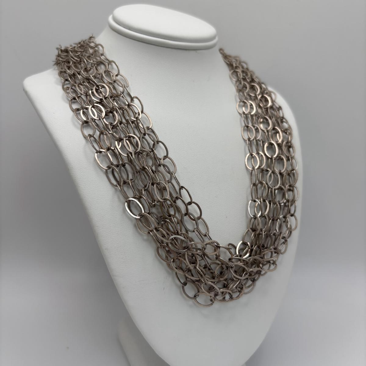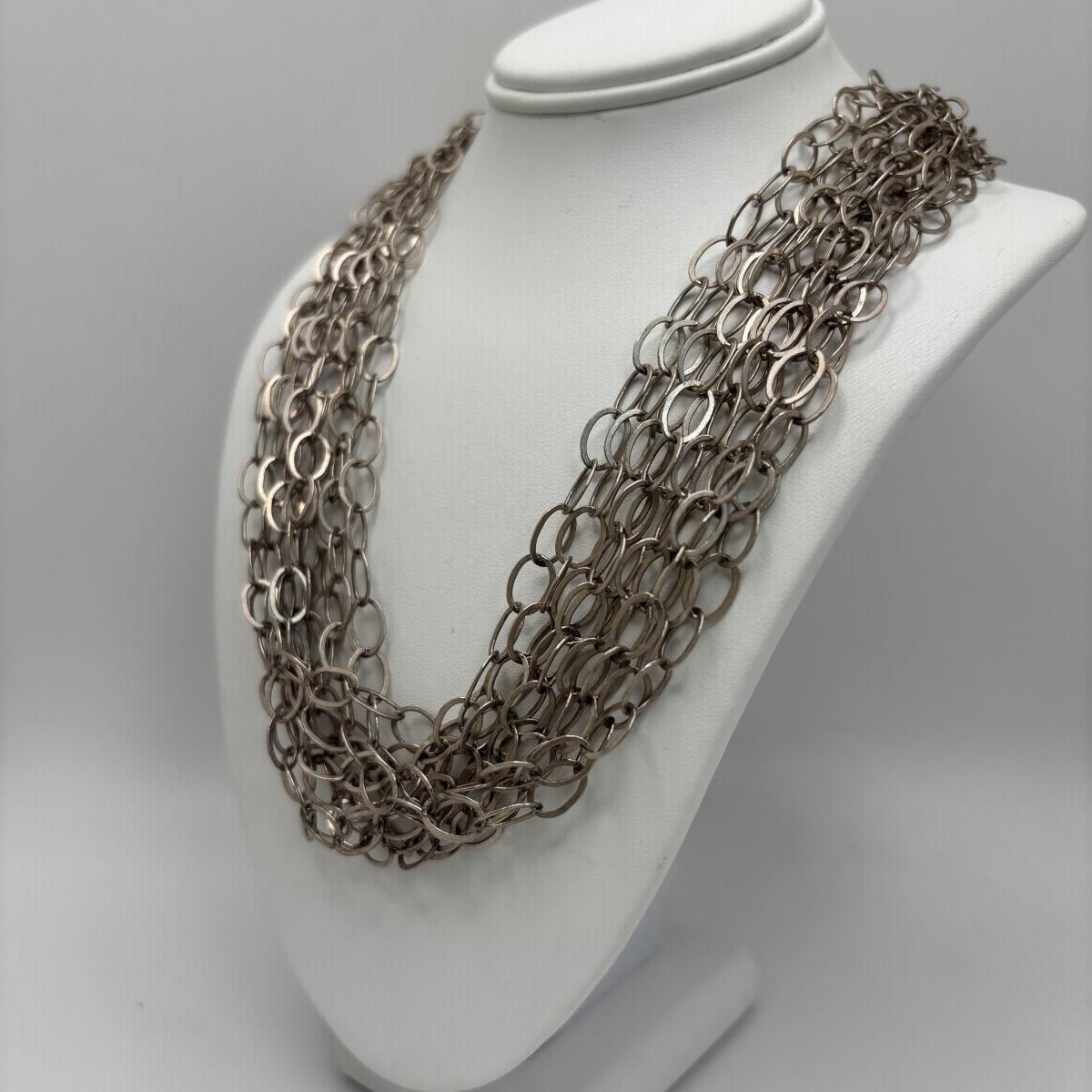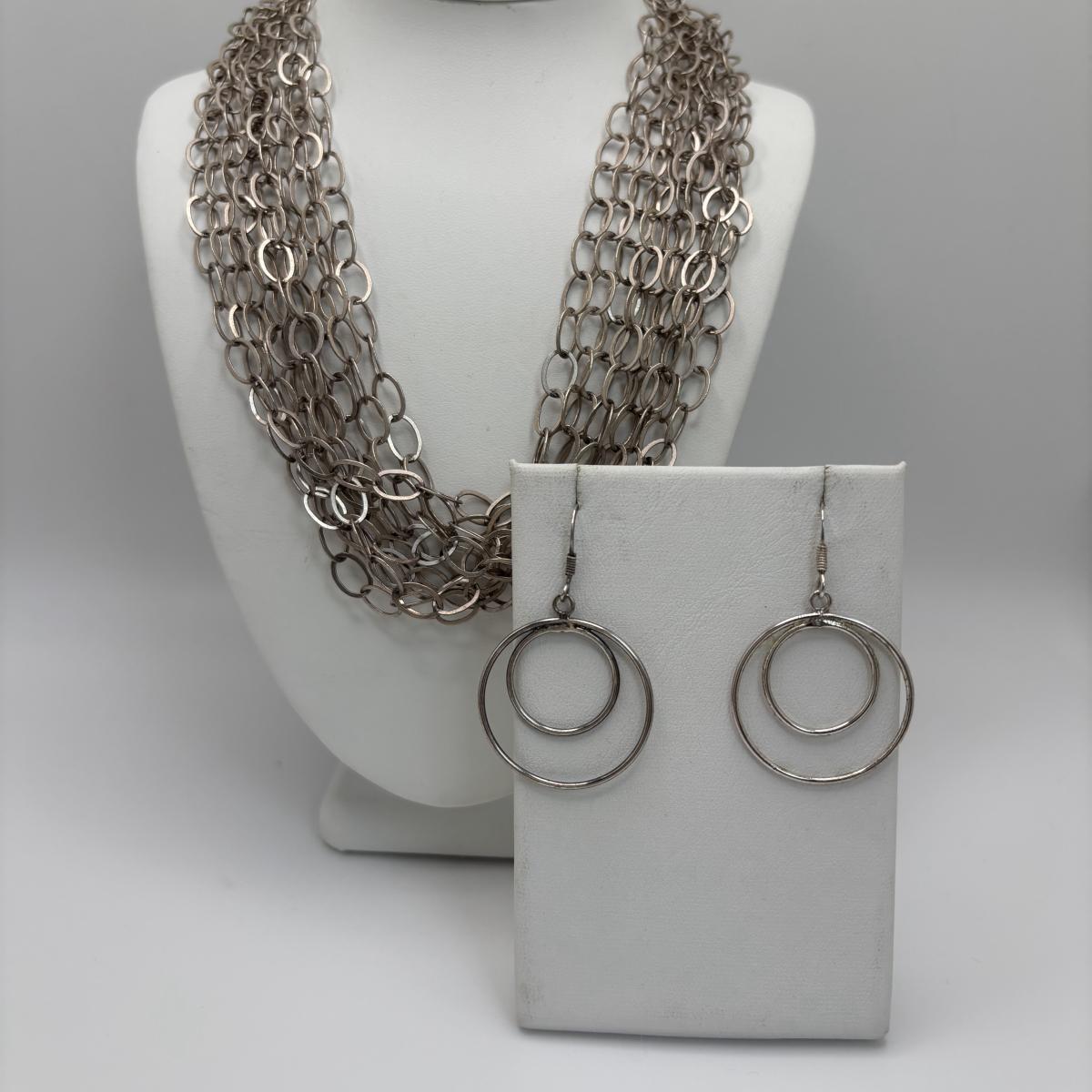 LOT 132: Sterling Silver Multi Strand Chain Link Necklace & Sterling Silver Concentric Circle Earrings