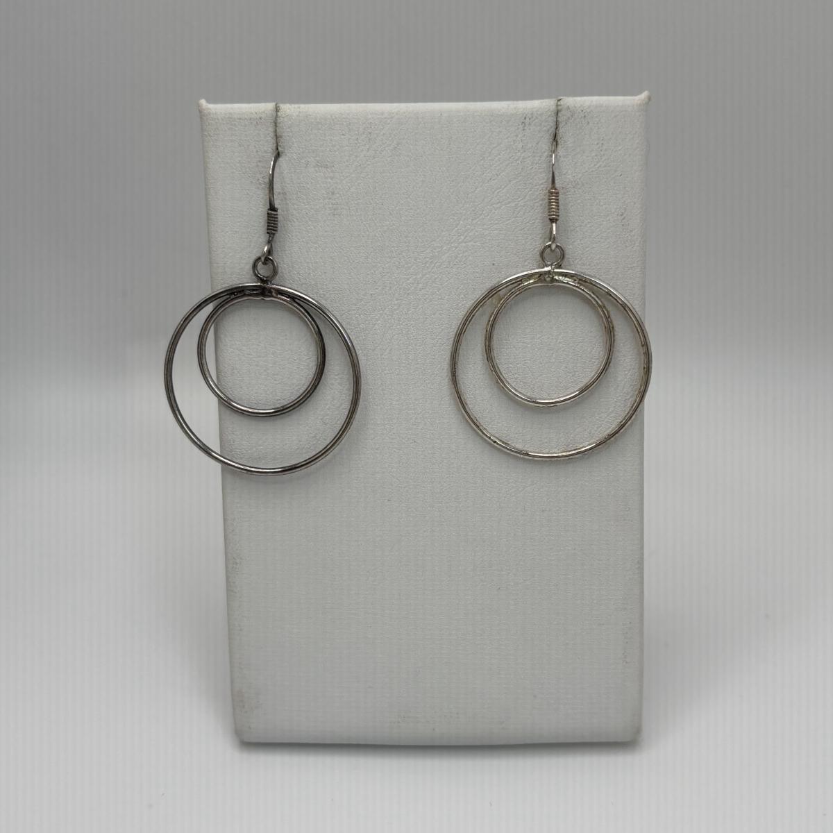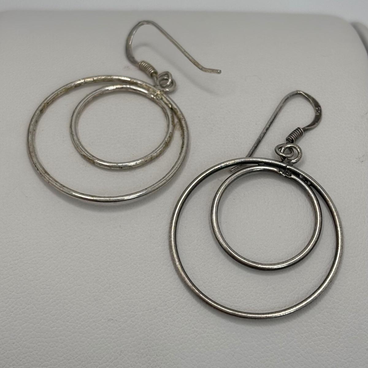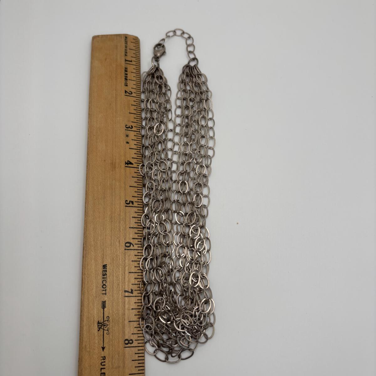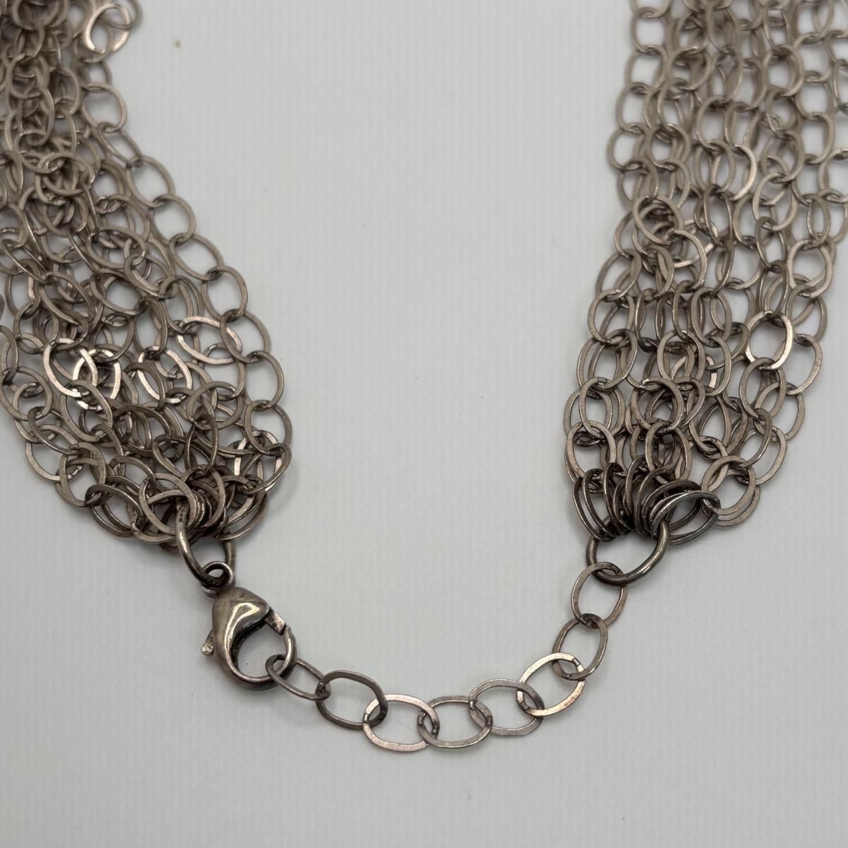 LOT 132: Sterling Silver Multi Strand Chain Link Necklace & Sterling Silver Concentric Circle Earrings
