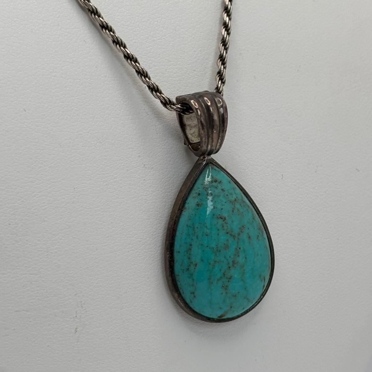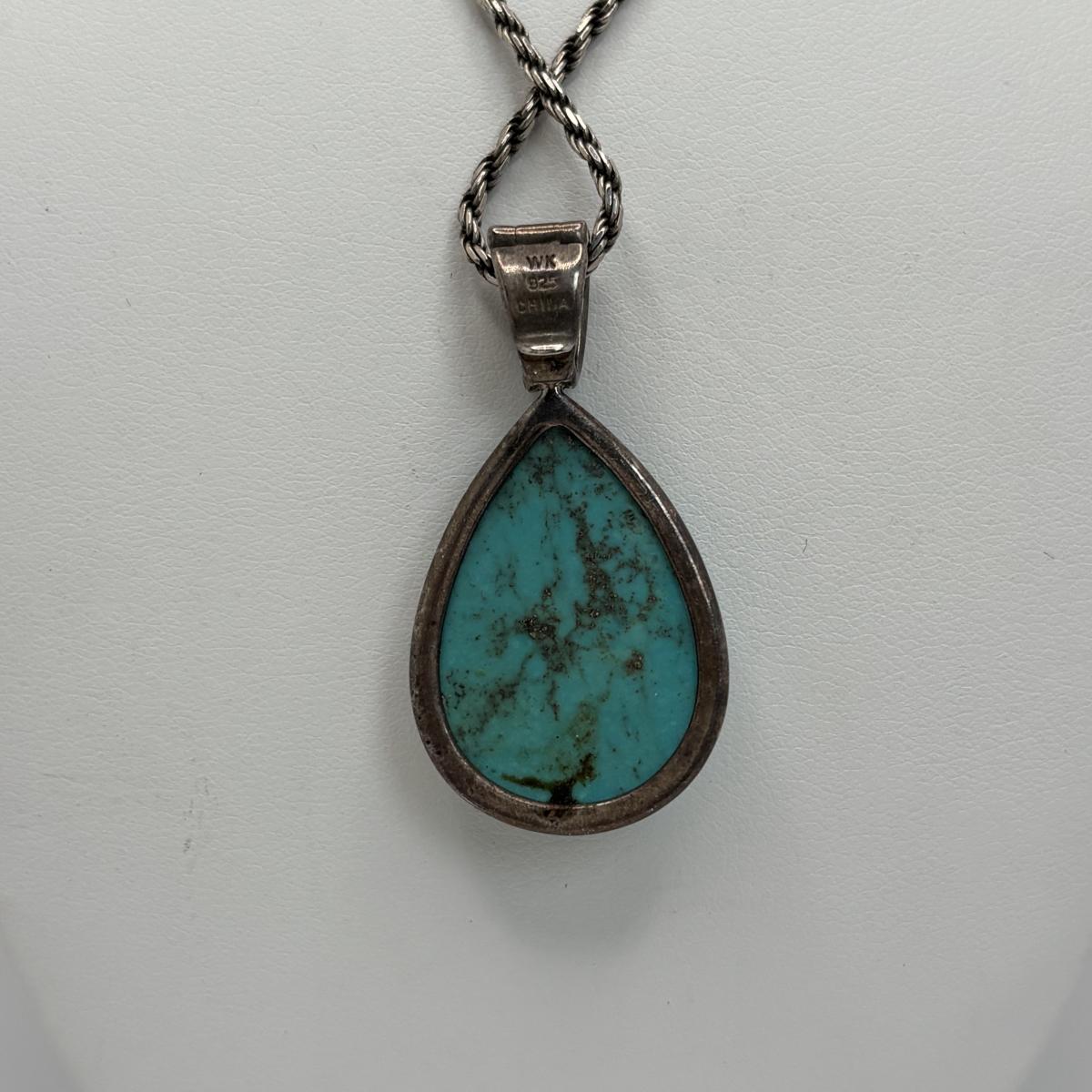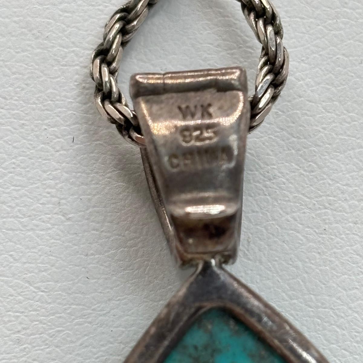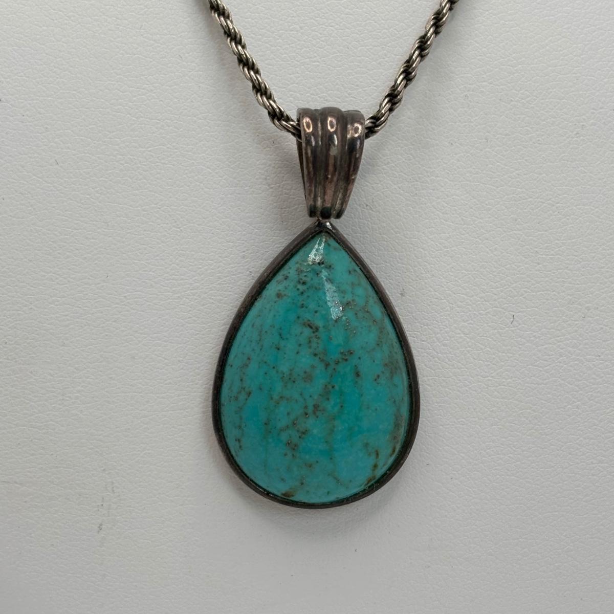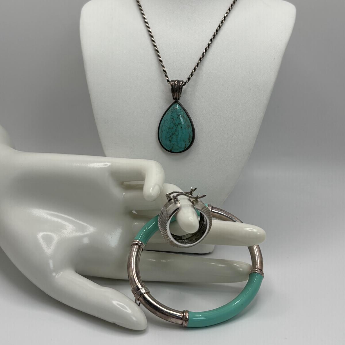 LOT 134: Sterling Silver 24" Rope Chain w/Turquoise Pendant, Milor Italy Bangle Bracelet & Sterling Silver Hoop Earrings