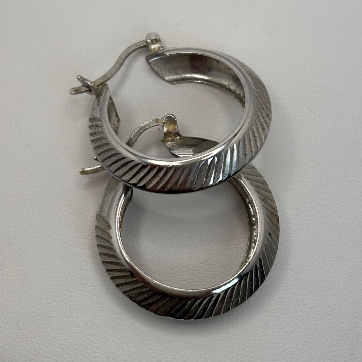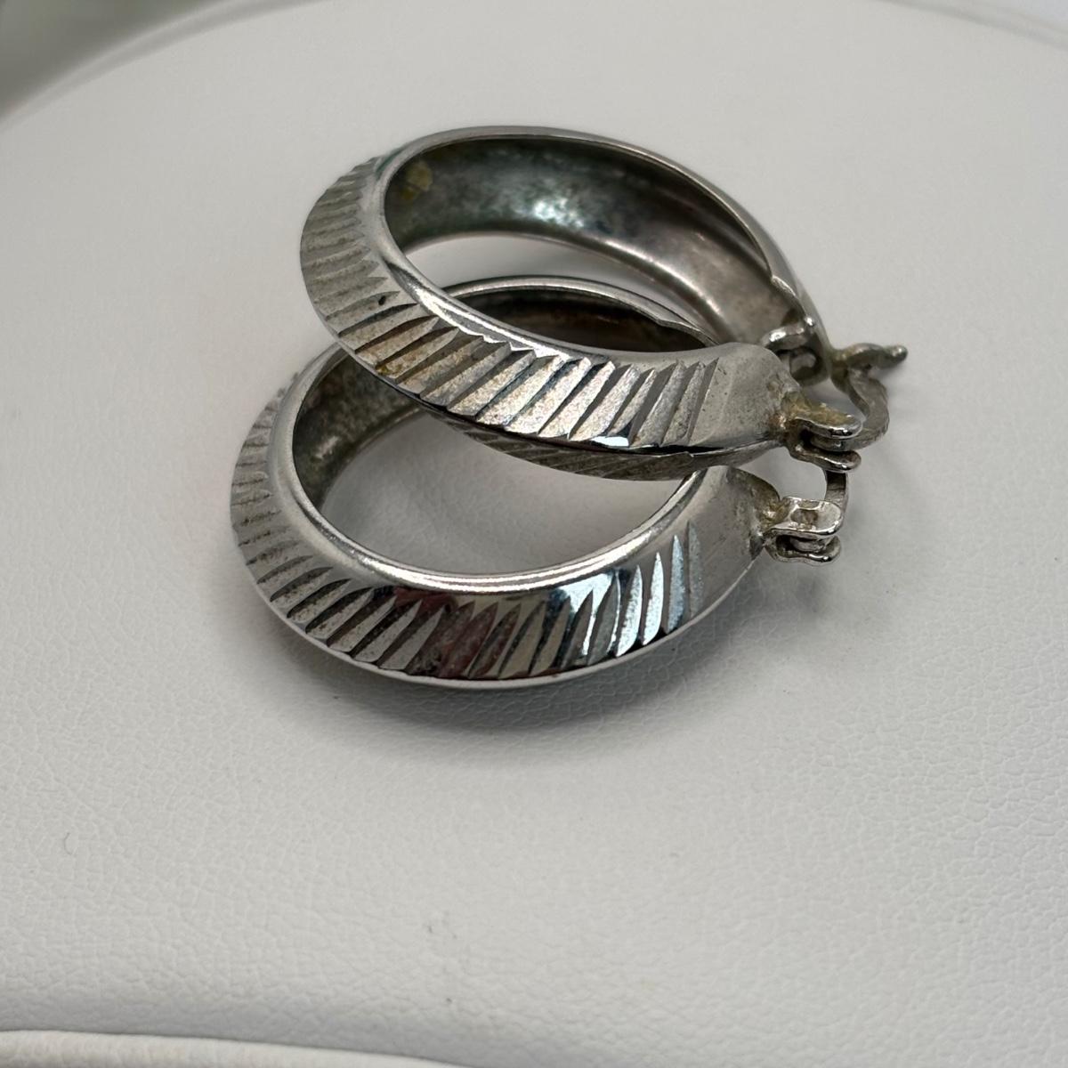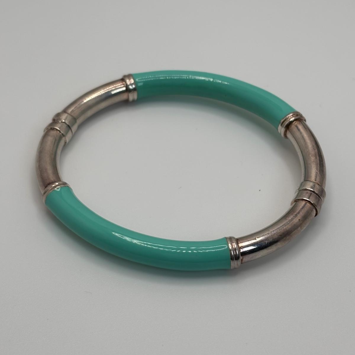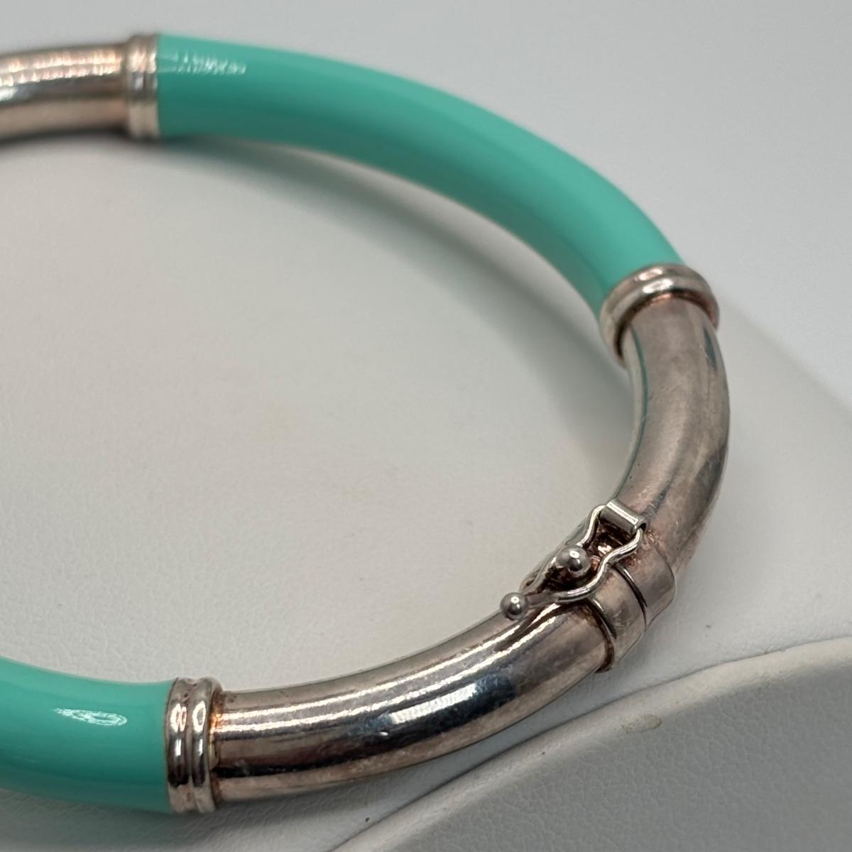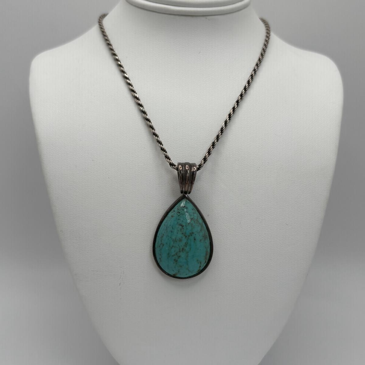 LOT 134: Sterling Silver 24" Rope Chain w/Turquoise Pendant, Milor Italy Bangle Bracelet & Sterling Silver Hoop Earrings