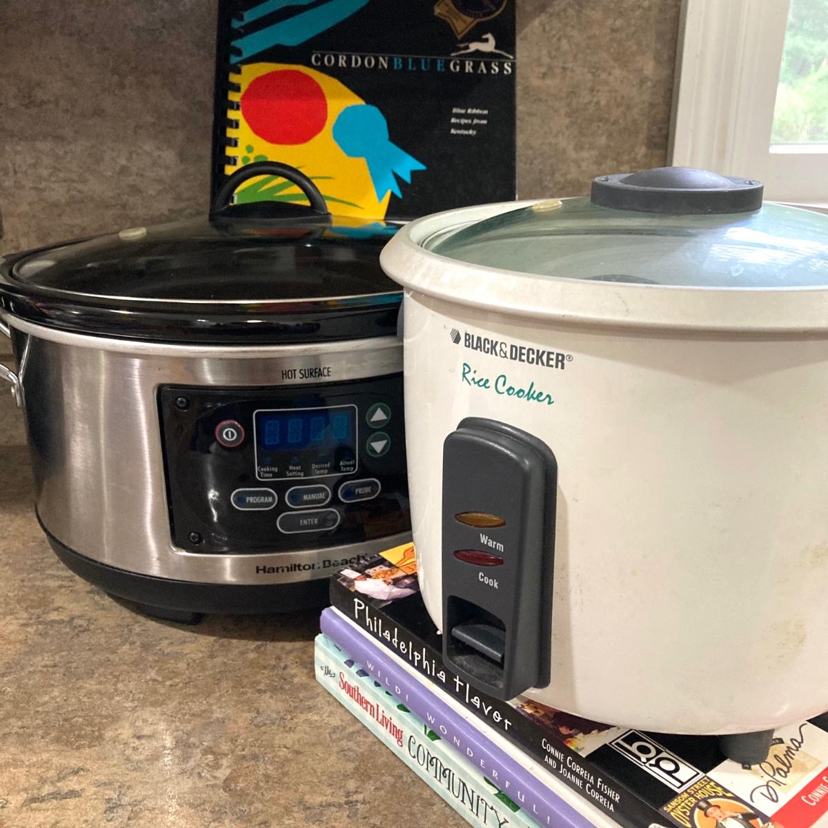 LOT 206: Hamilton Beach Slow Cooker Model Type SC26, Black & Decker Rice Cooker with Collection of Cook Books