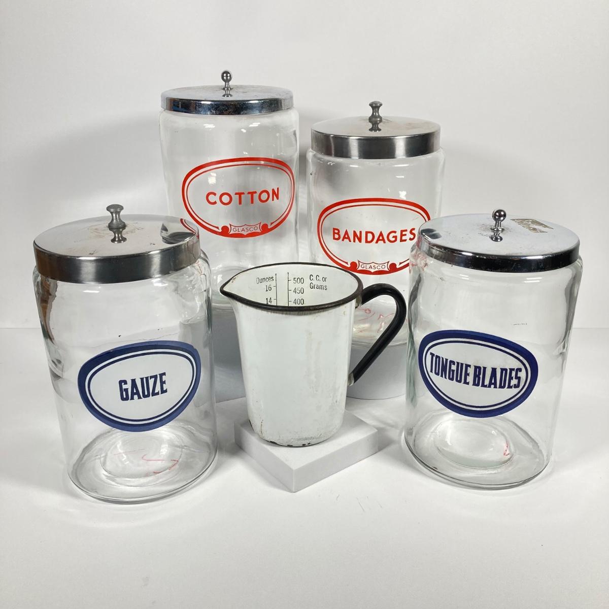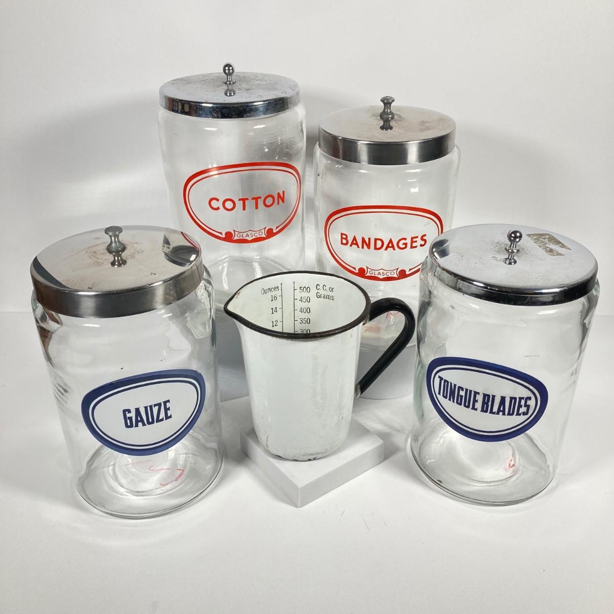 LOT 214: Collection of Vintage Glasco Containers with Enamel Measuring Cup