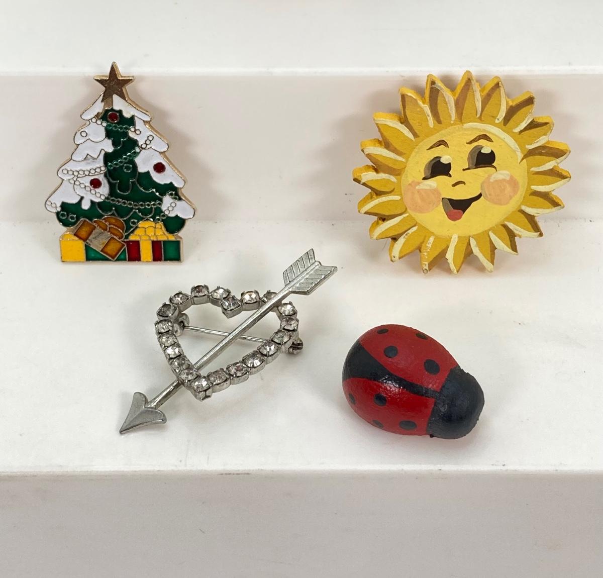 LOT 216: Collection of Vintage Brooches / Pins with Glass Trinket Dish