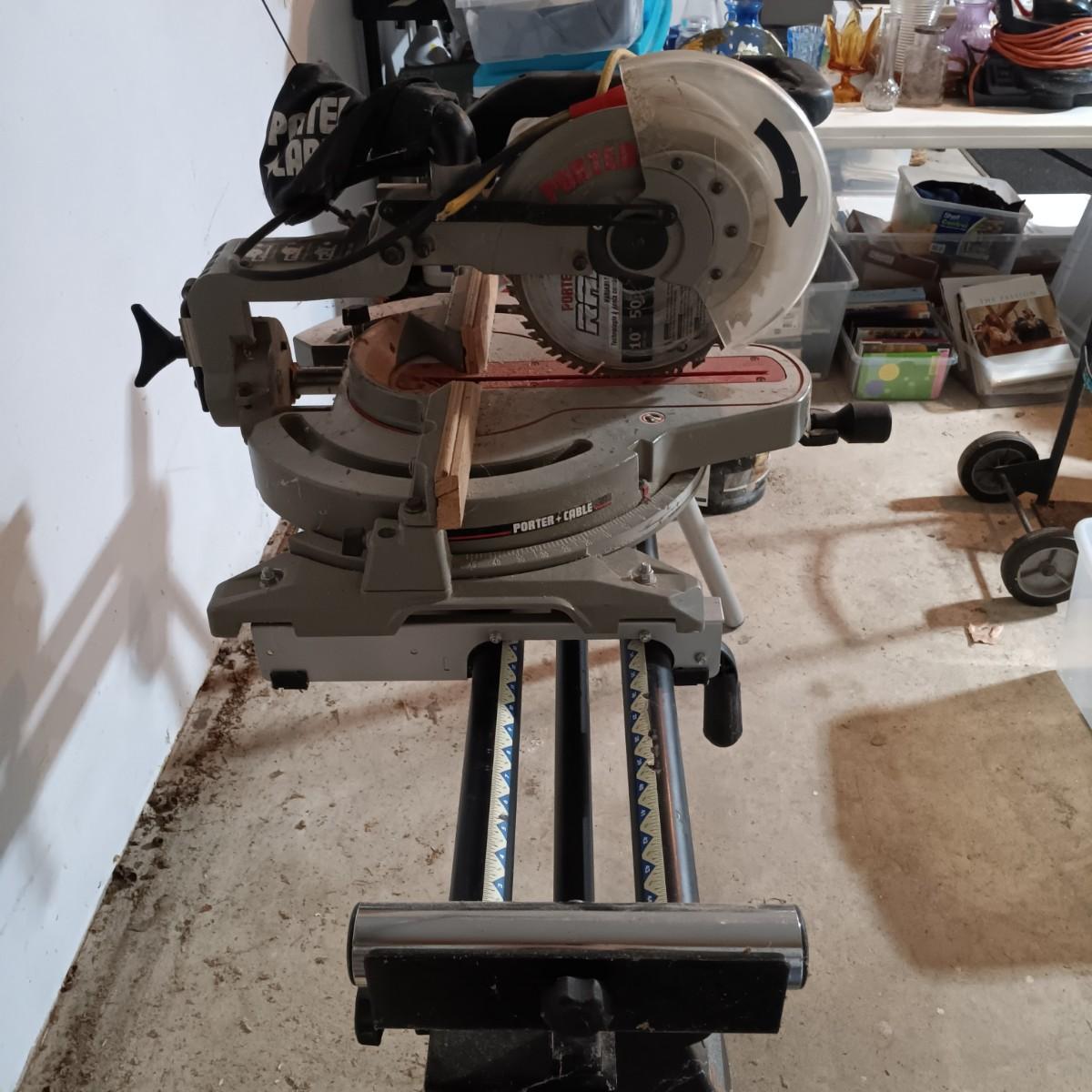 LOT 224: Porter Cable Compound Slide Saw & Ryobi Saw Stand