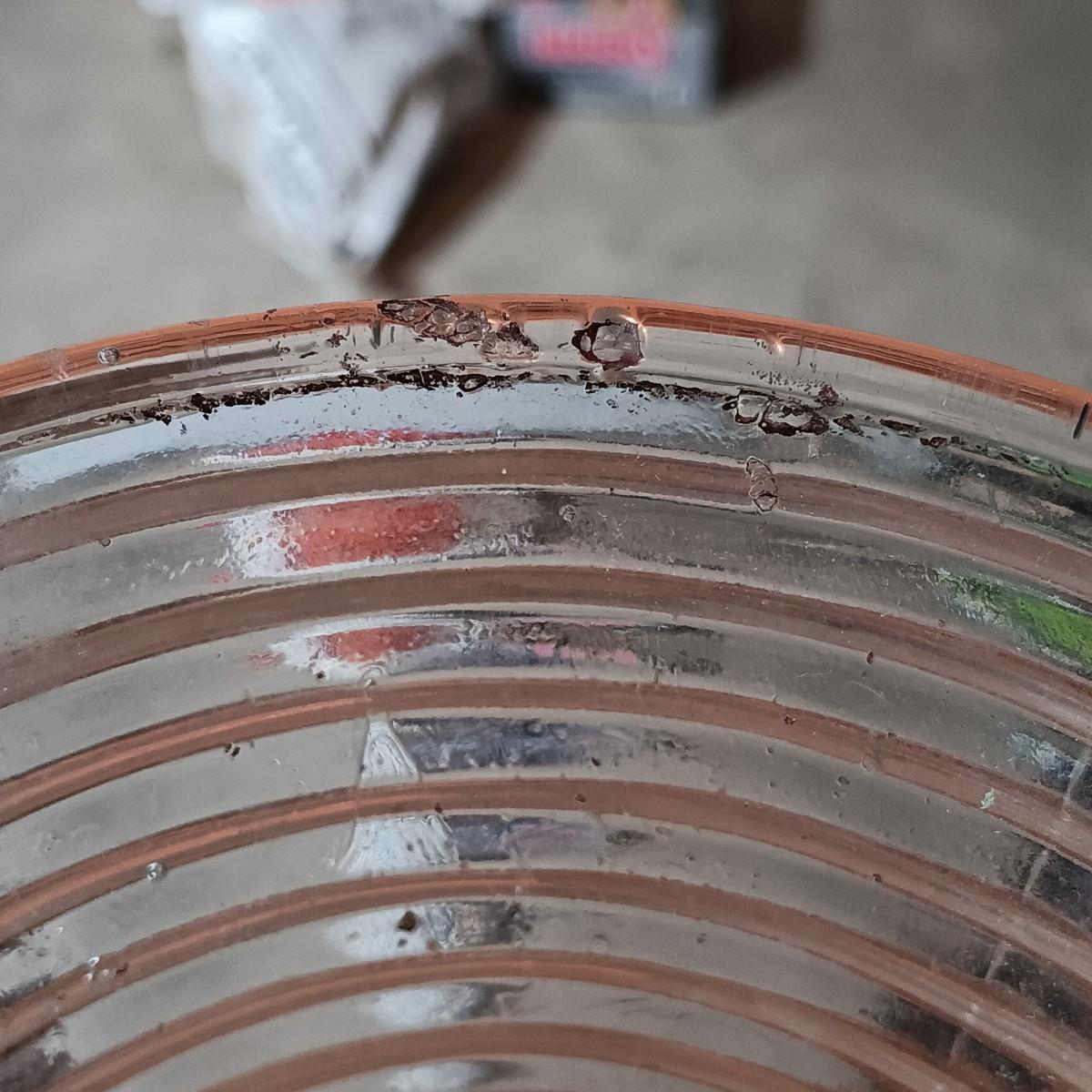 The manhattan depression glass vase has several imperfections inside the glass.