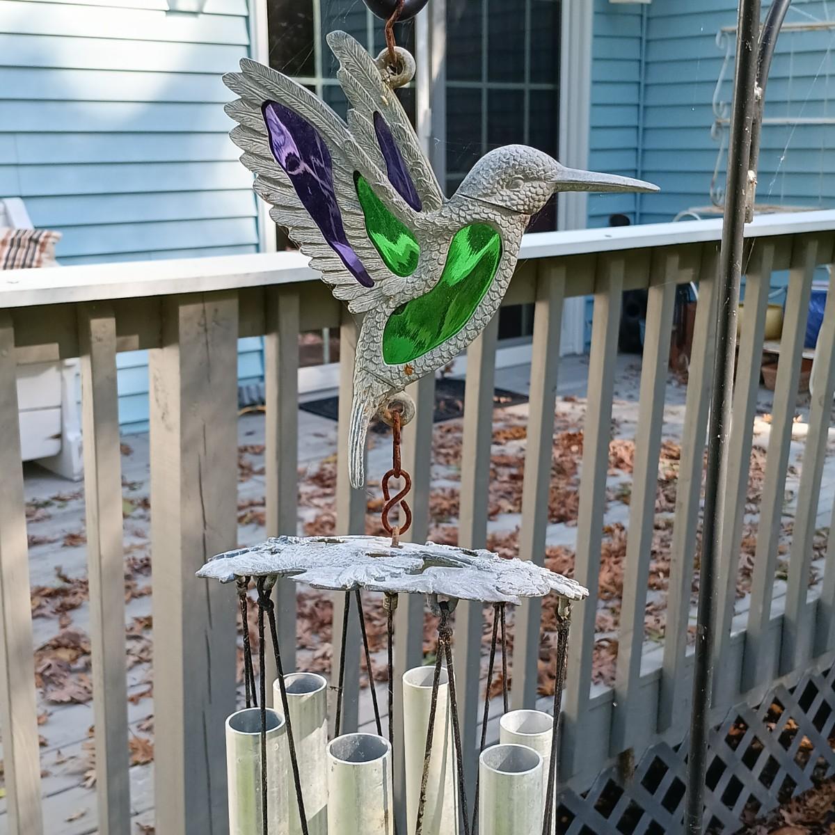 LOT 232: Metal and Stained Glass Hummingbird Wind Chime