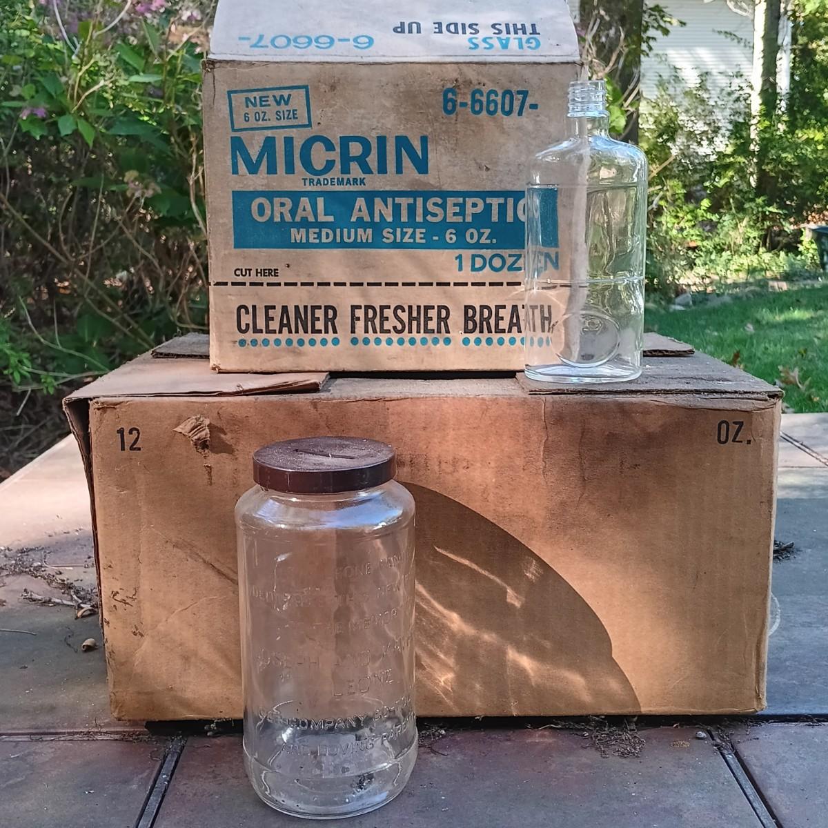 LOT 239: Leone Industries Commemorative Glass Jars & Micrin Oral Antiseptic Glass