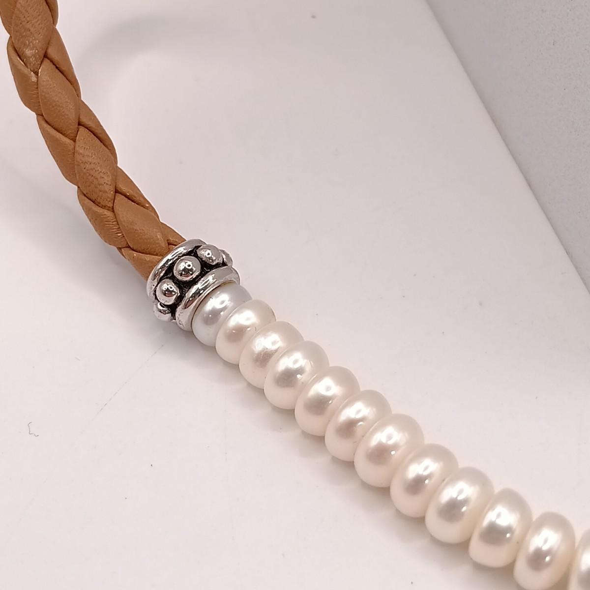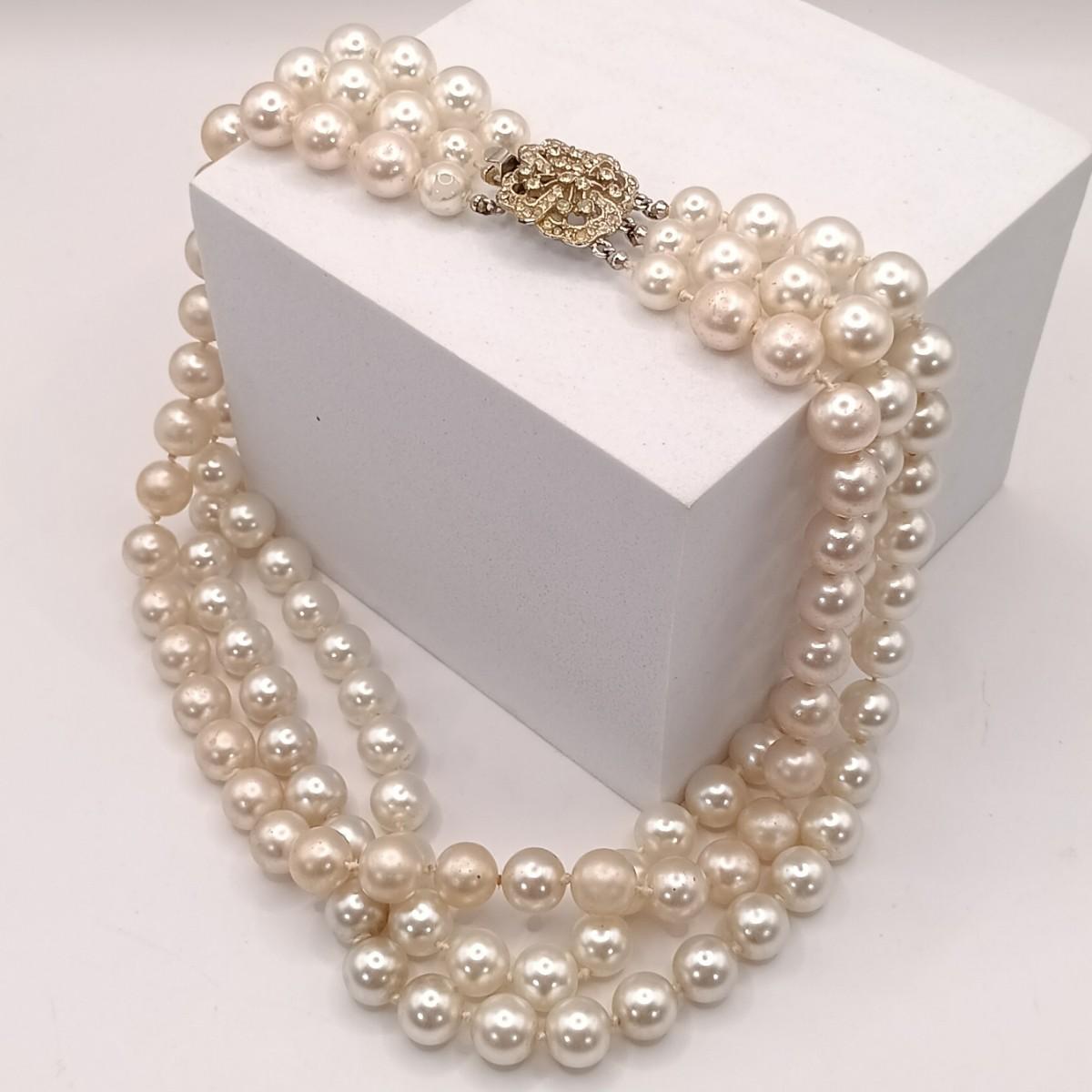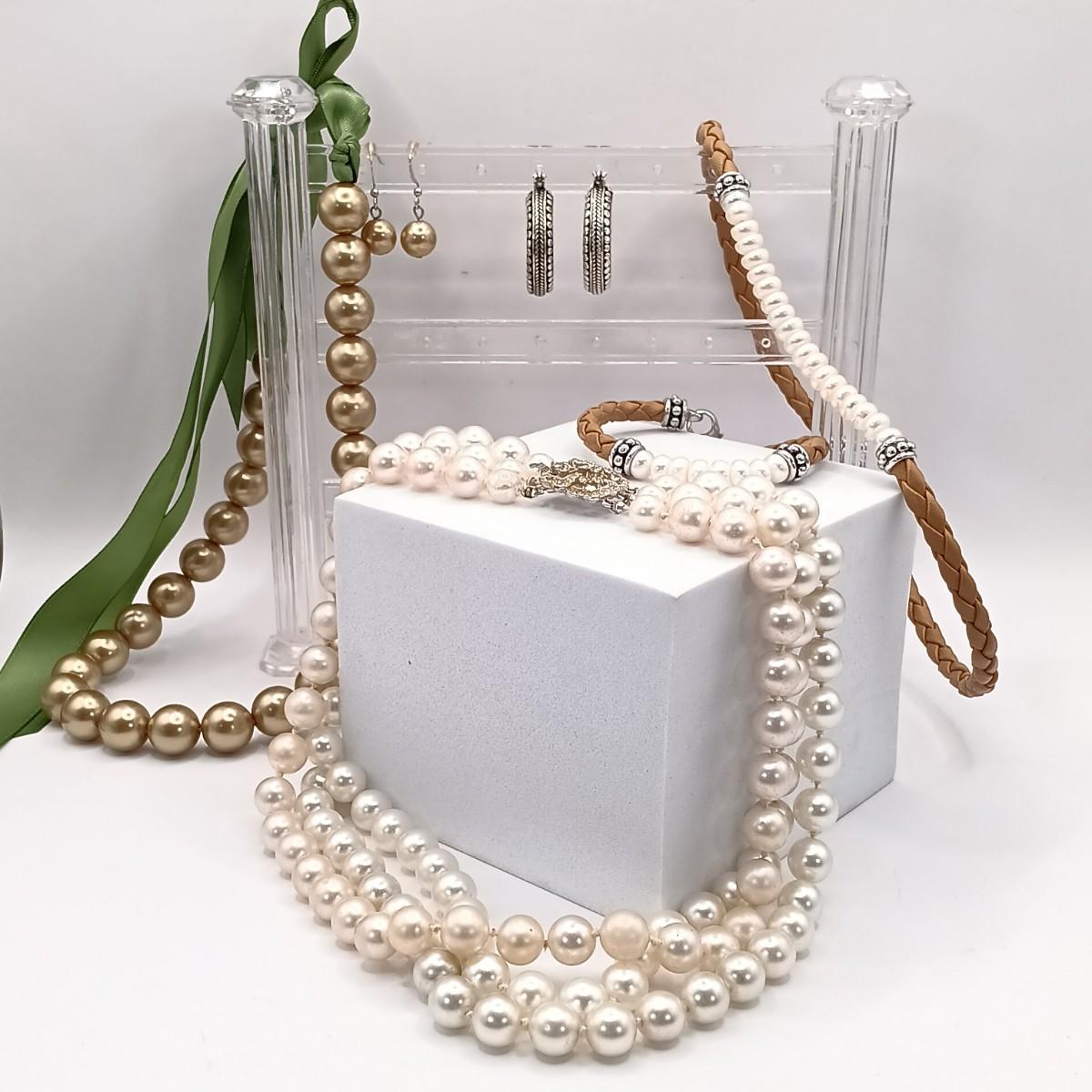 LOT 243: Honora Pearl Braided Leather Choker and Bracelet with 925 Clasps, Vintage 3-Strand Pearl Necklace, Faux Green Pearl Necklace & More