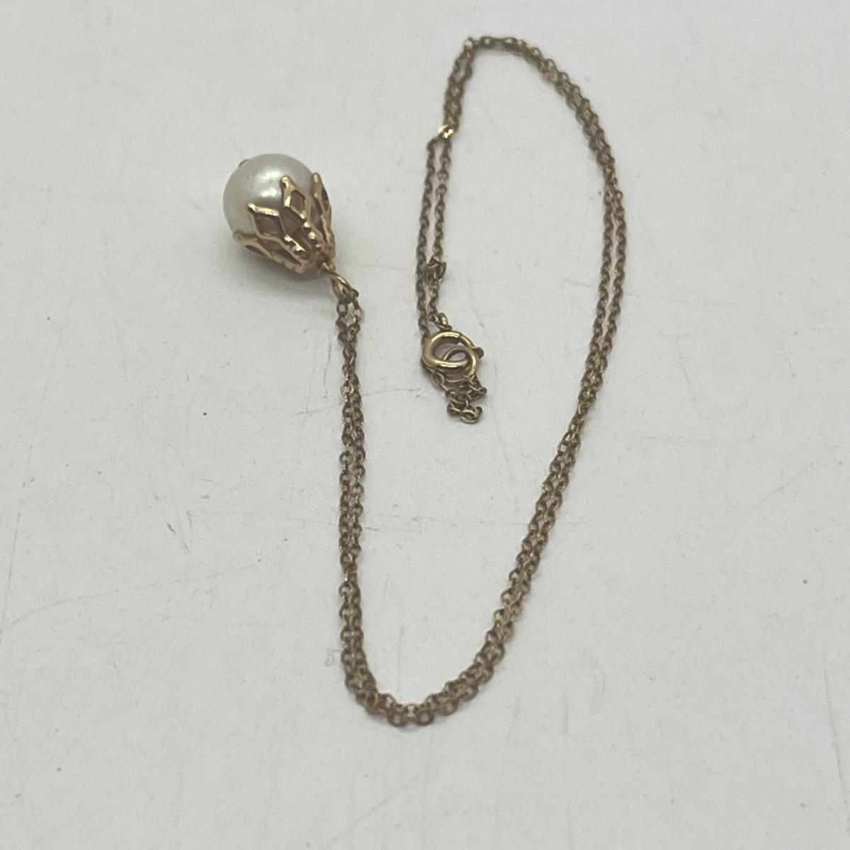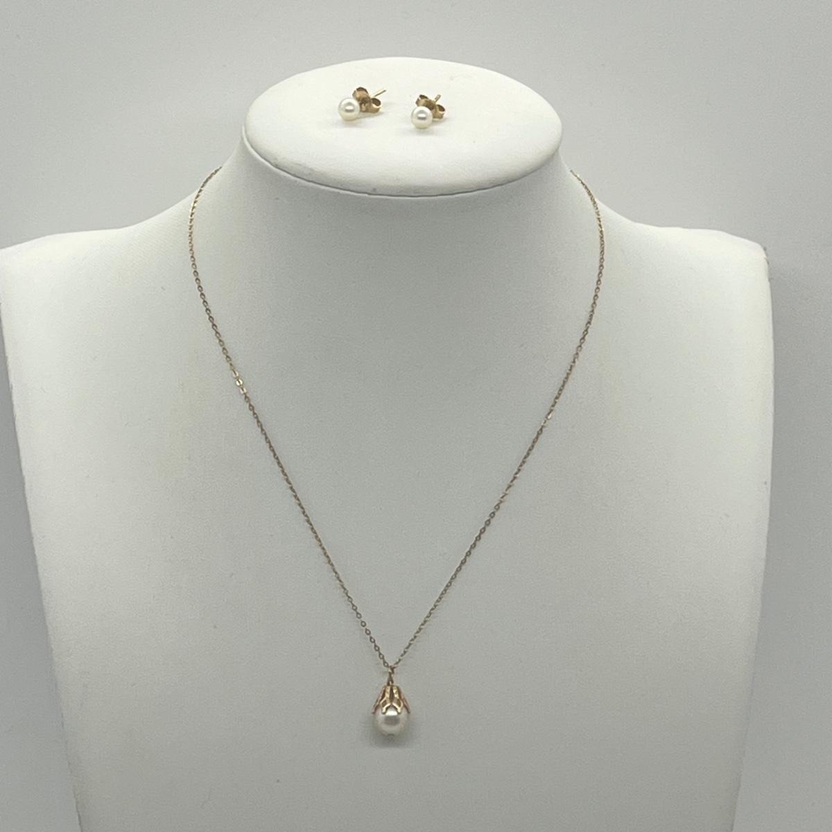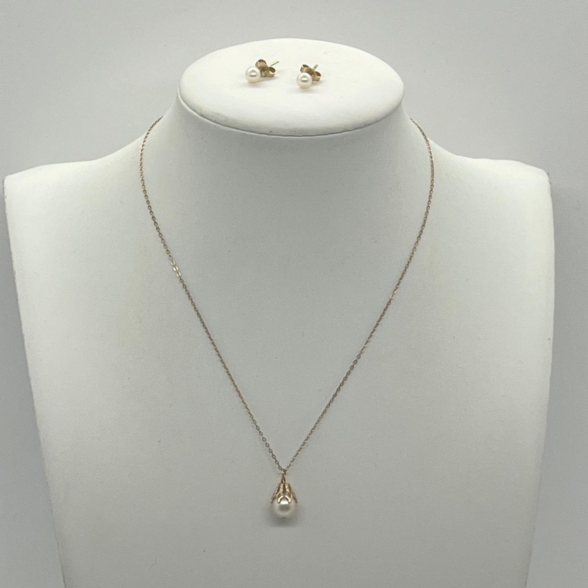 LOT 10: 14K Yellow Gold 13" Necklace with Pearl Pendant and Pearl Stud Earrings - 2.0 GTW