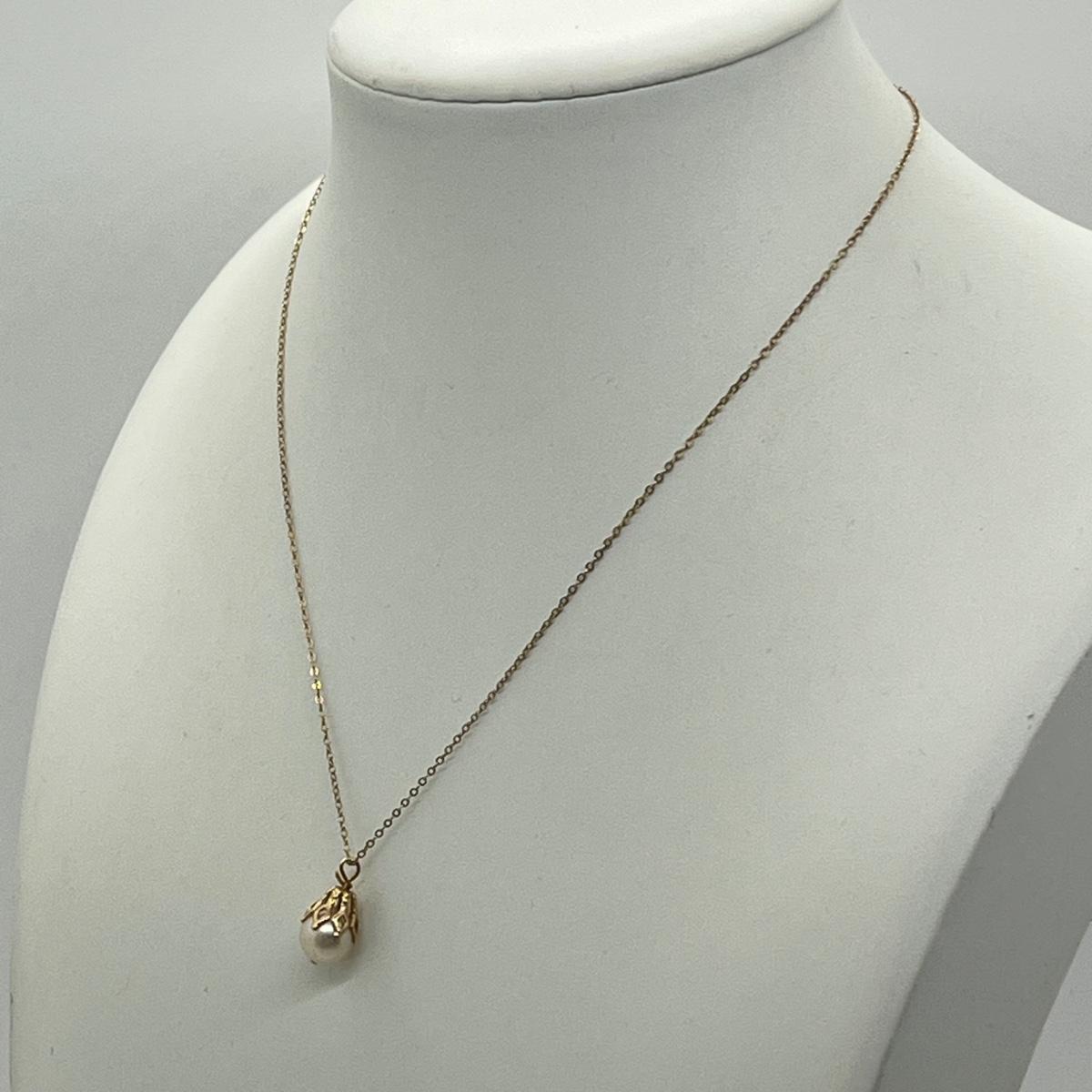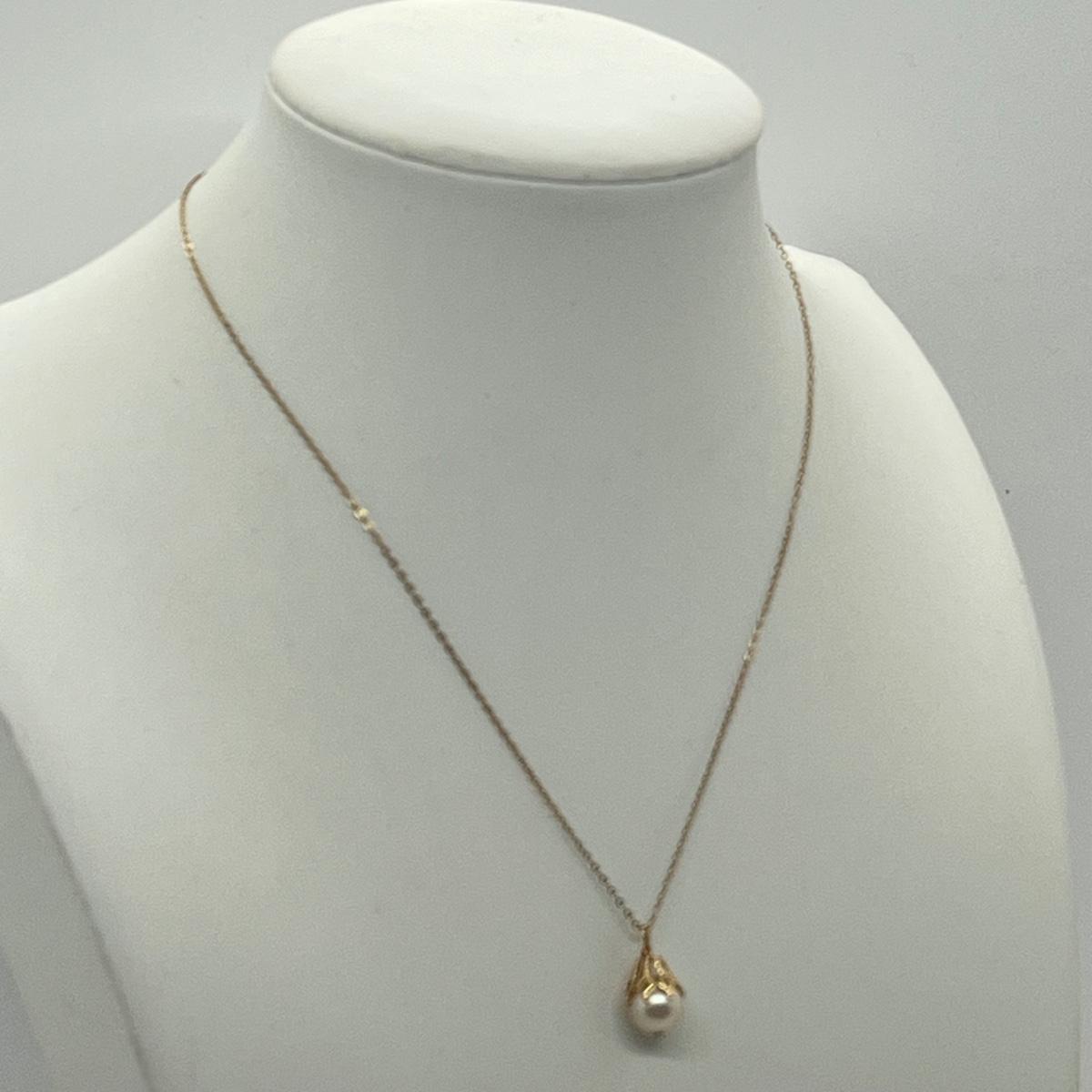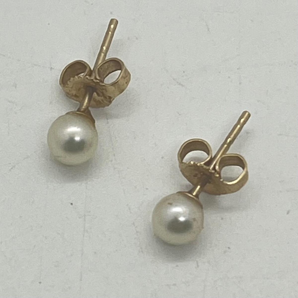 LOT 10: 14K Yellow Gold 13" Necklace with Pearl Pendant and Pearl Stud Earrings - 2.0 GTW