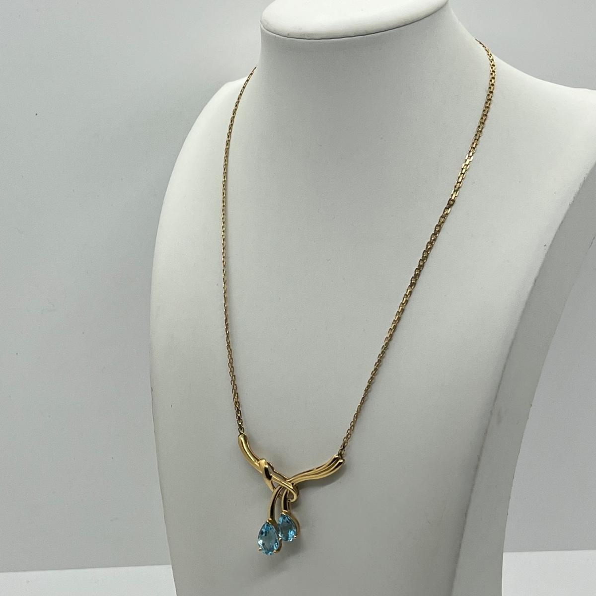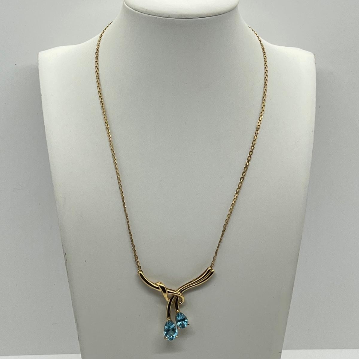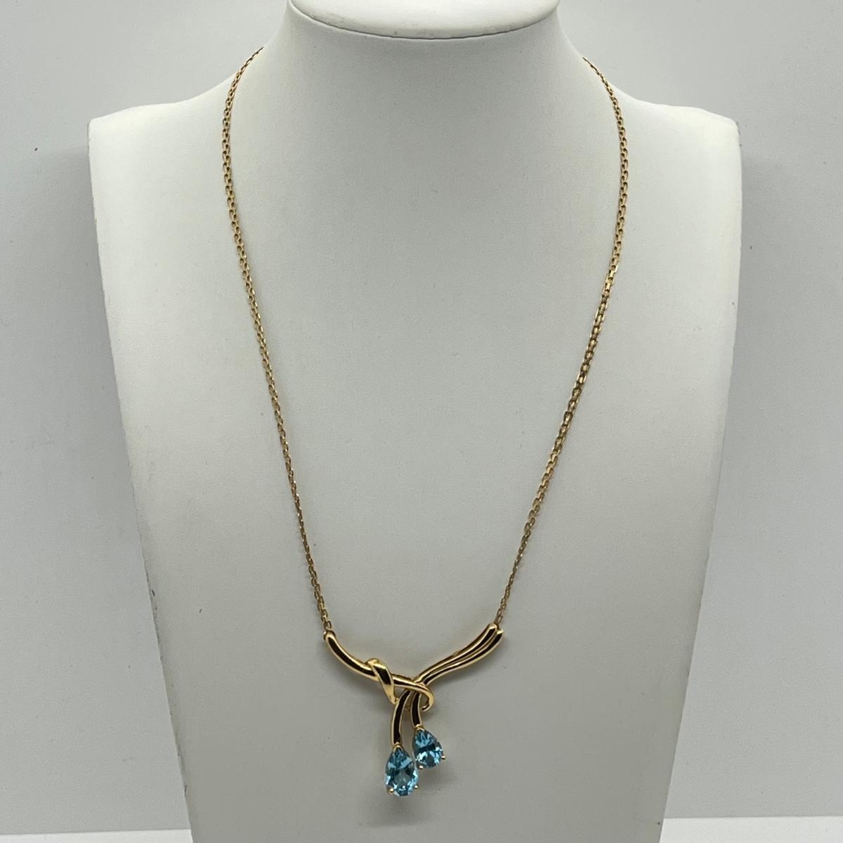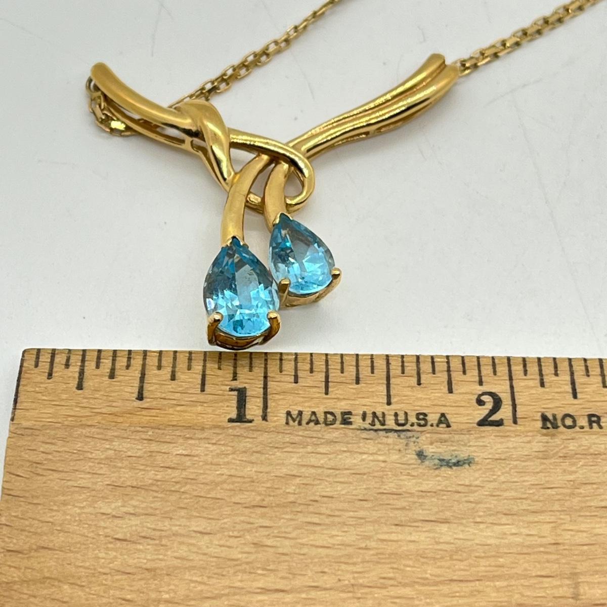 LOT 13: 14K Yellow Gold 17.5" Necklace with Blue Topaz Rhinestone Pendant - 10.8 GTW