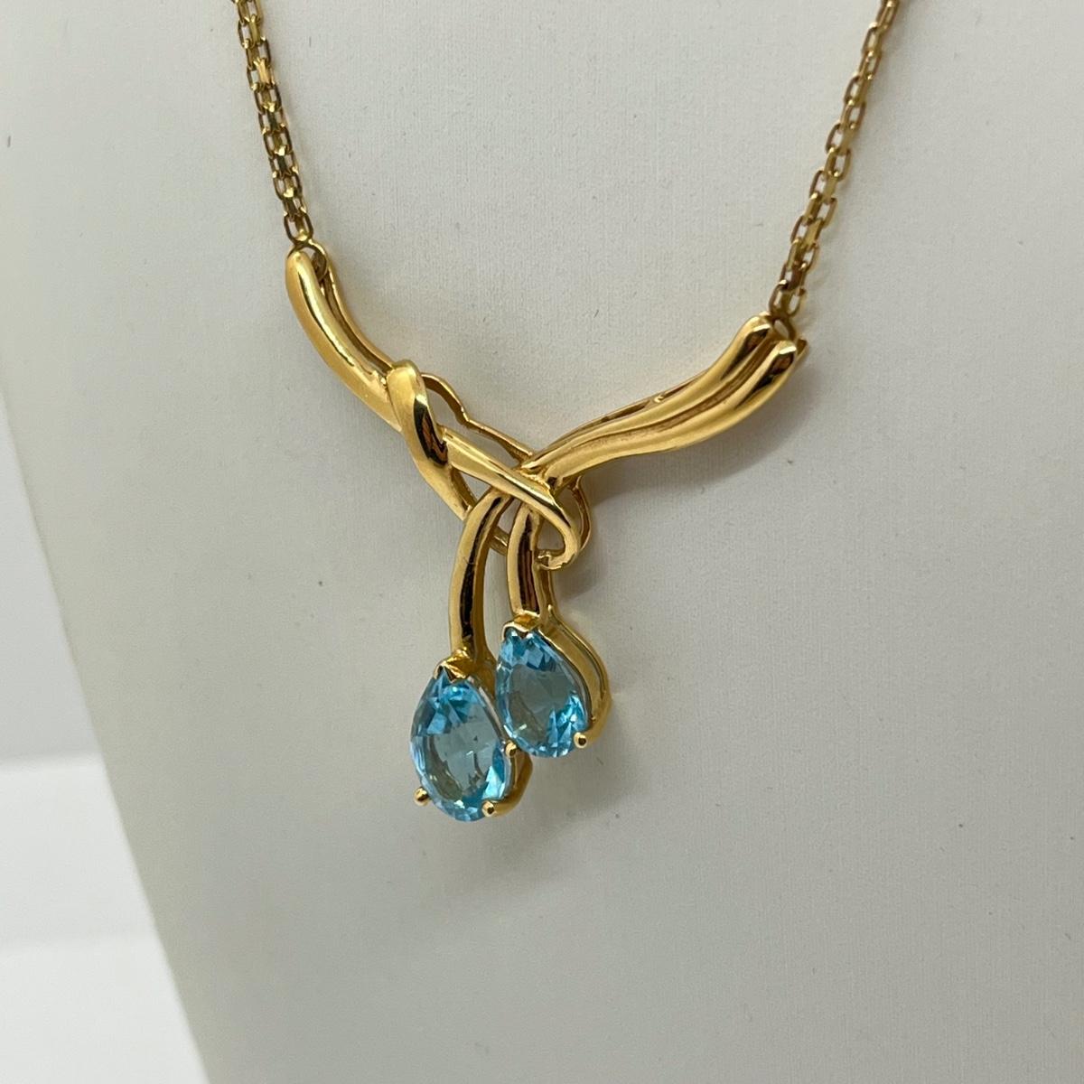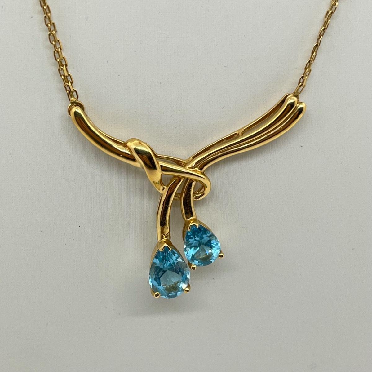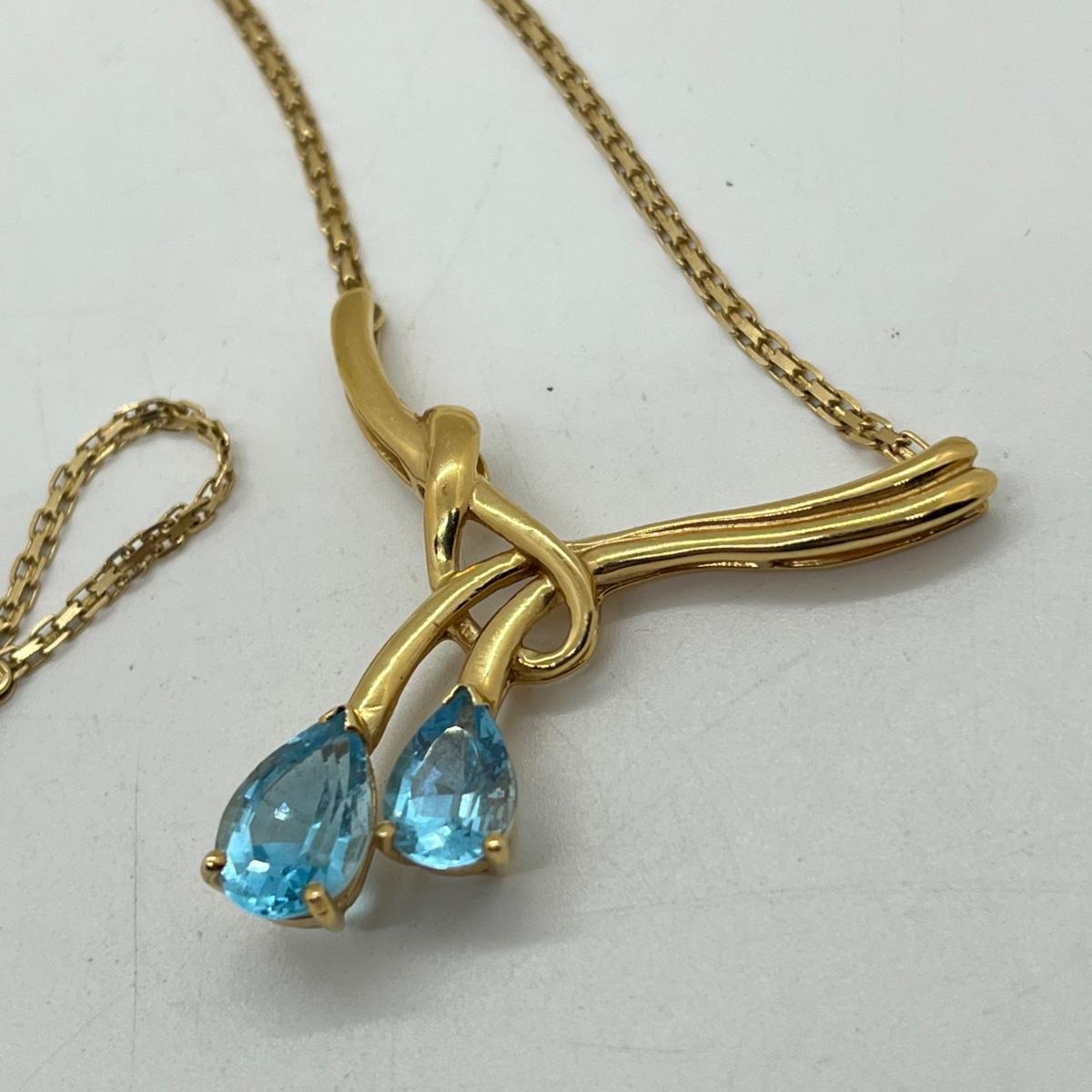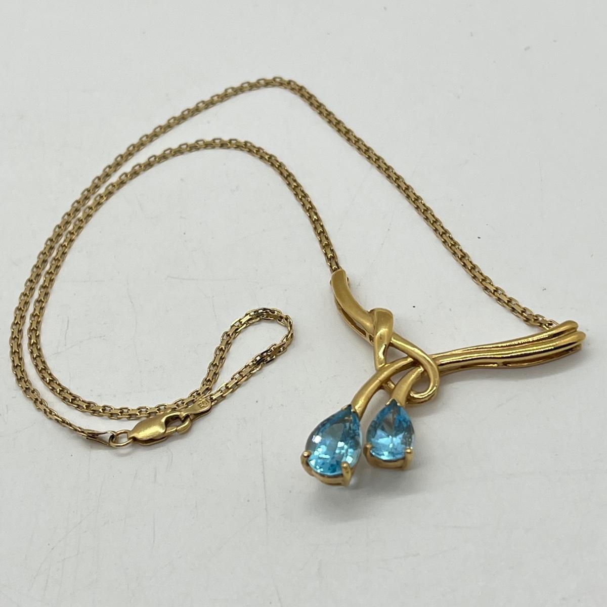 LOT 13: 14K Yellow Gold 17.5" Necklace with Blue Topaz Rhinestone Pendant - 10.8 GTW