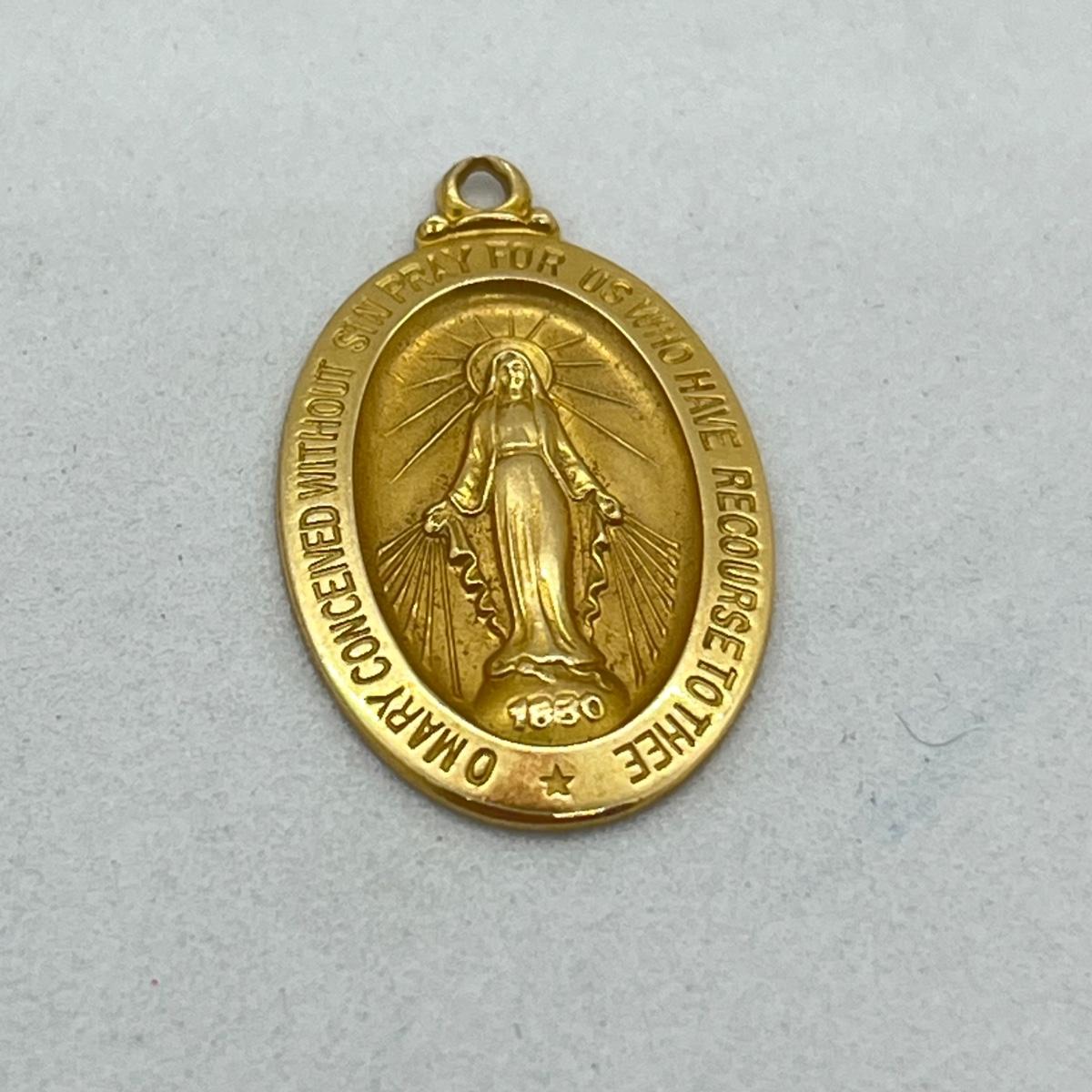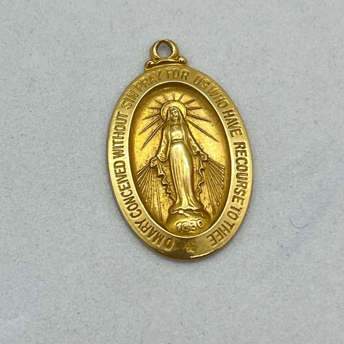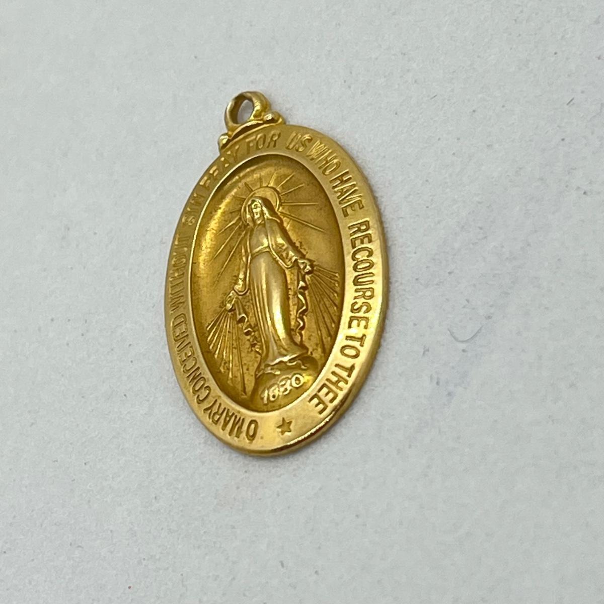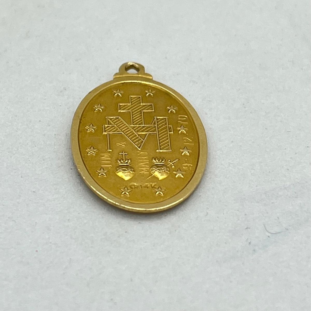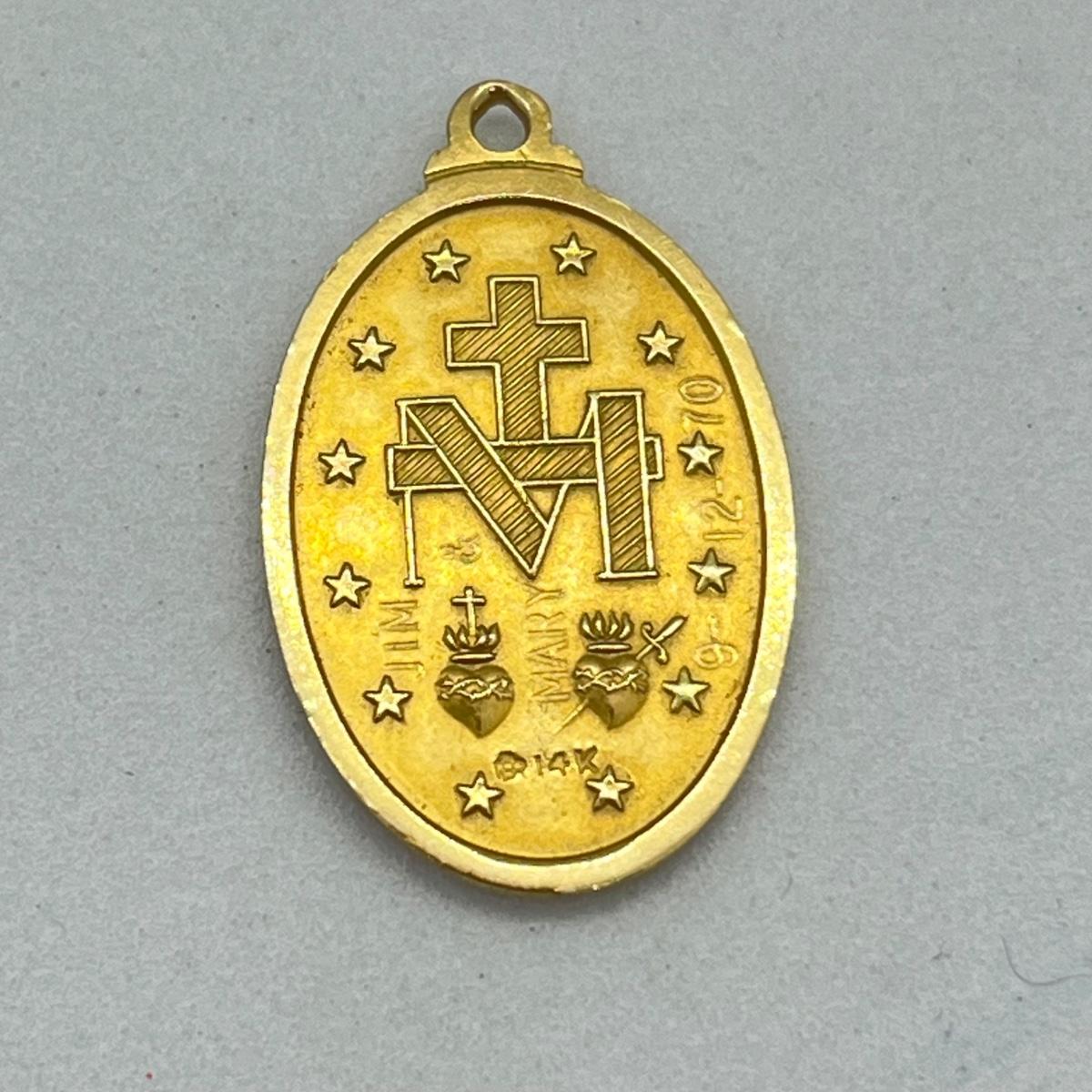 LOT 16: 14K Yellow Gold Catholic Virgin Mary Pendant - 3.5 Grams