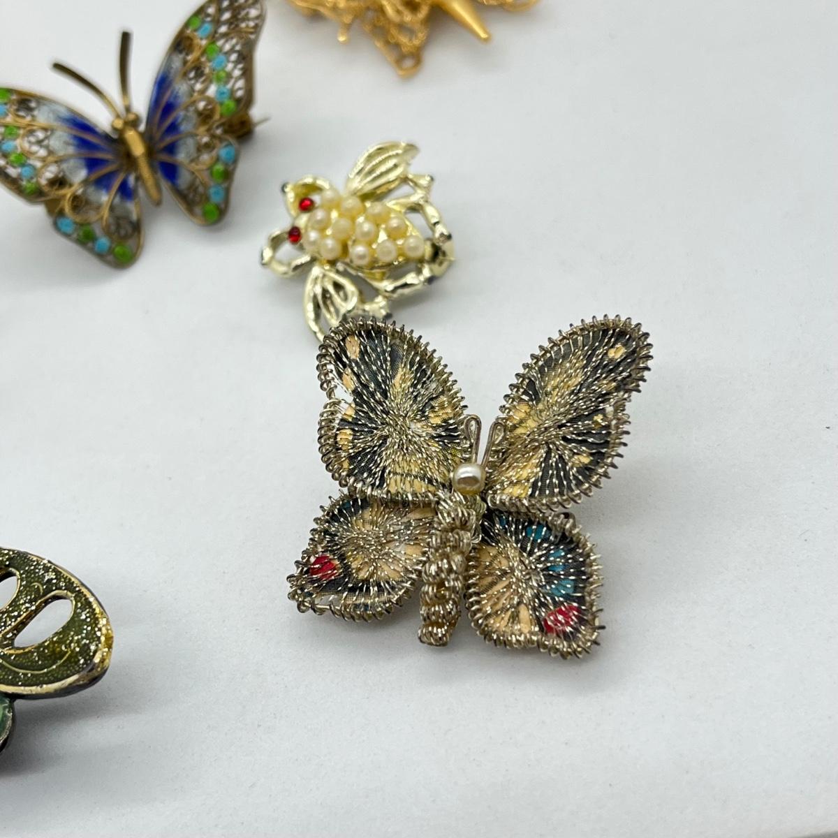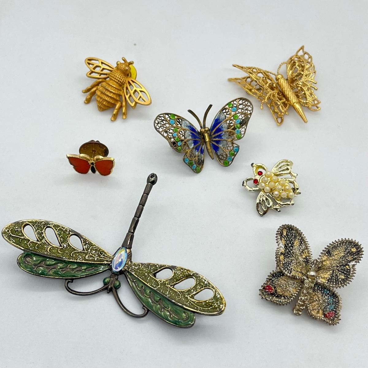 LOT 19: Butterfly, Dragonfly and Bumblebee Vintage Brooches/Pins - One is marked 800 Silver