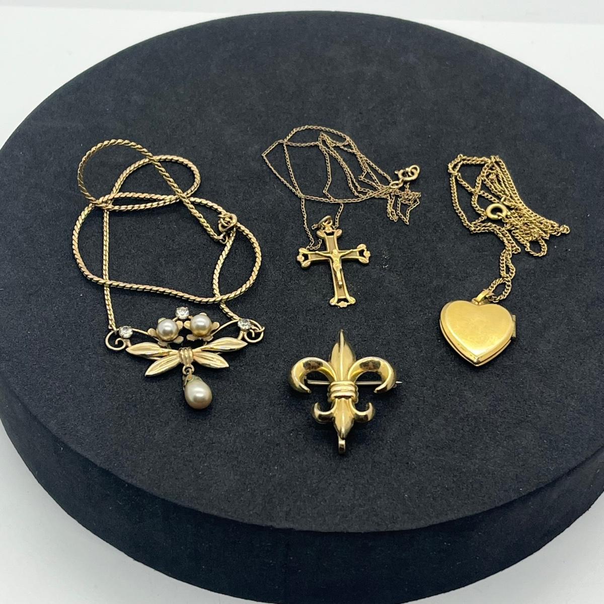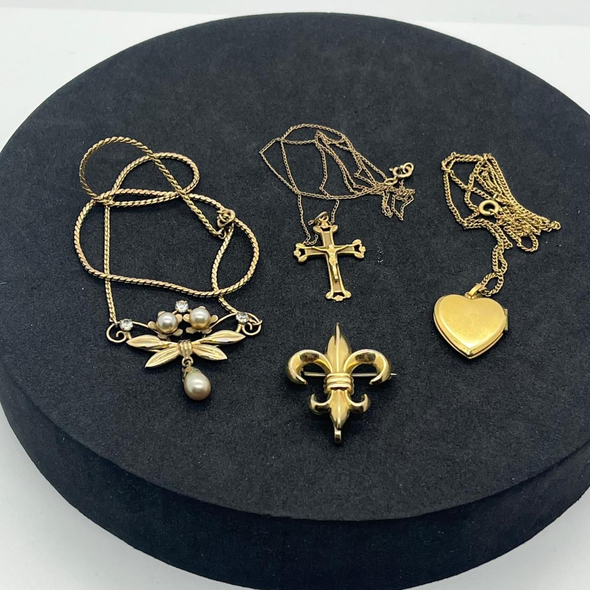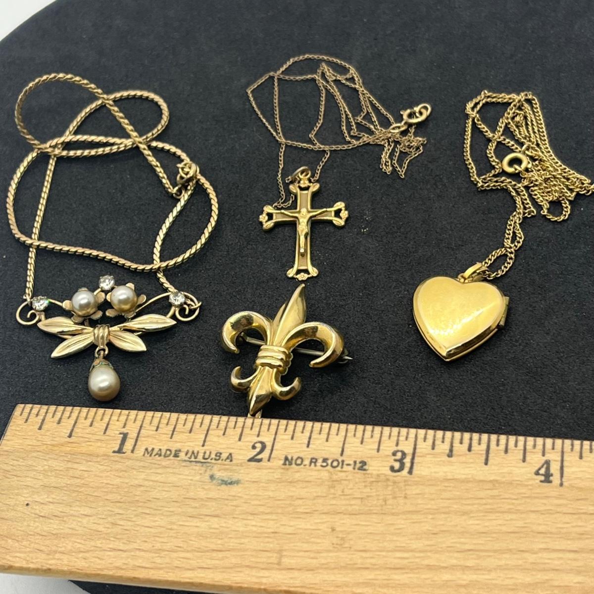 LOT 42: Gold Fill Jewelry Collection - Necklaces, Pendant and Pin