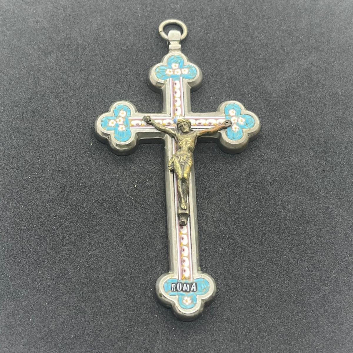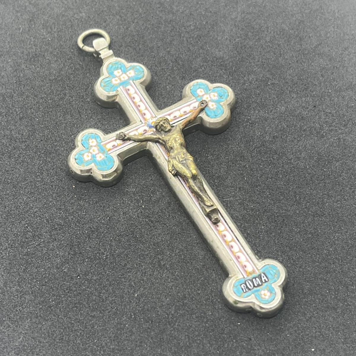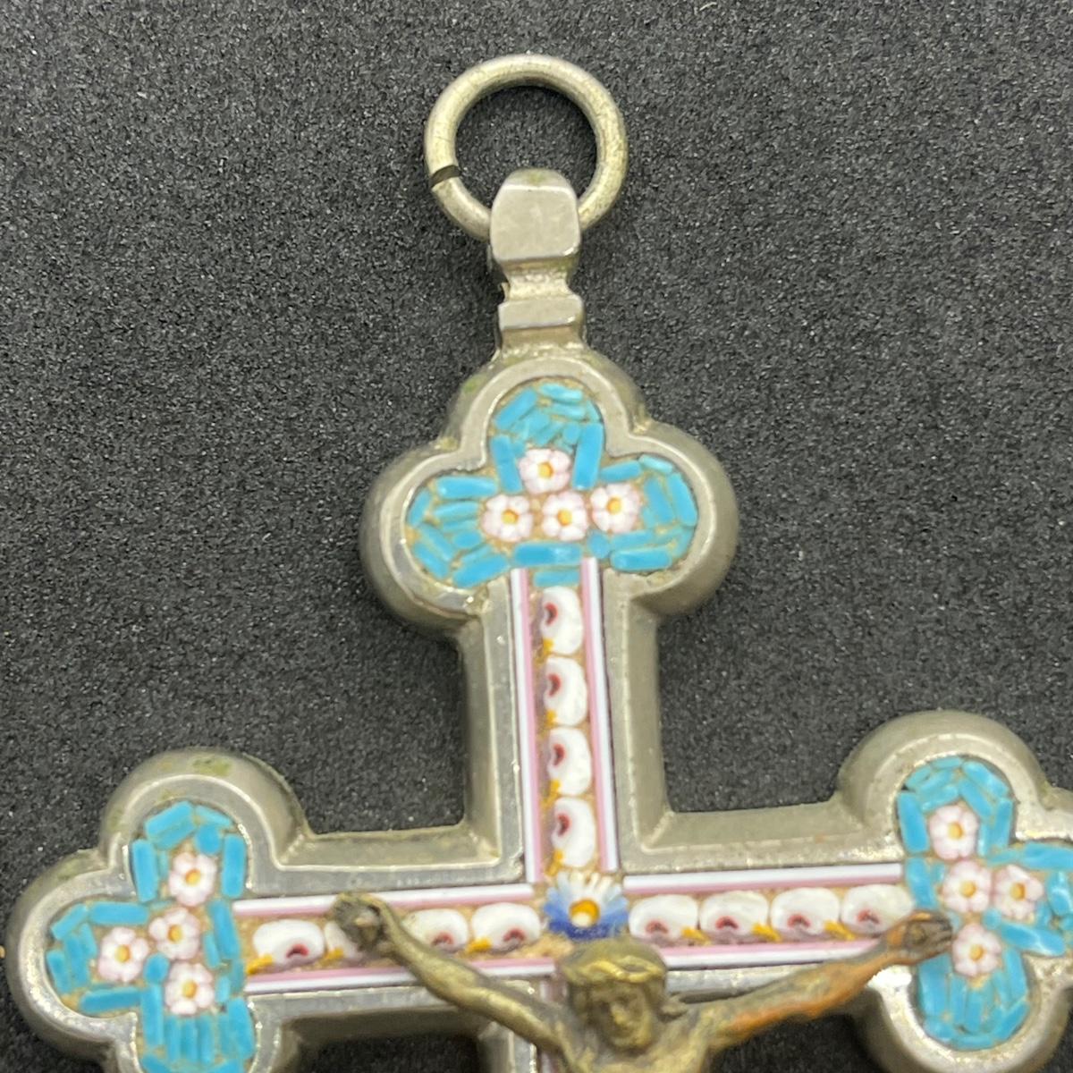 LOT 43: Antique Micro-Mosaic Crucifix Cross Pendant