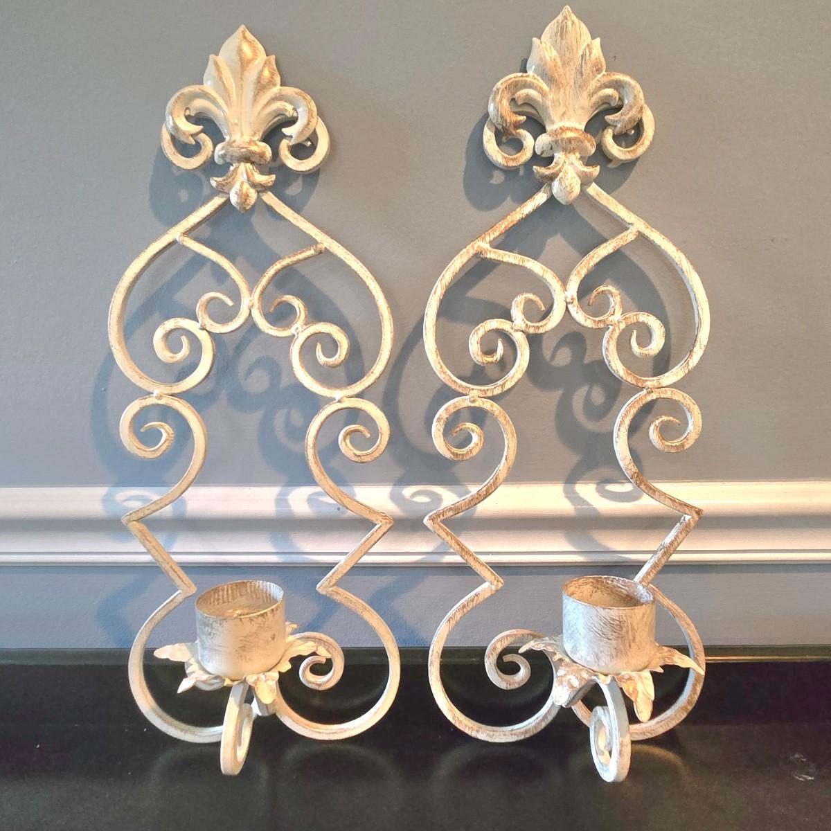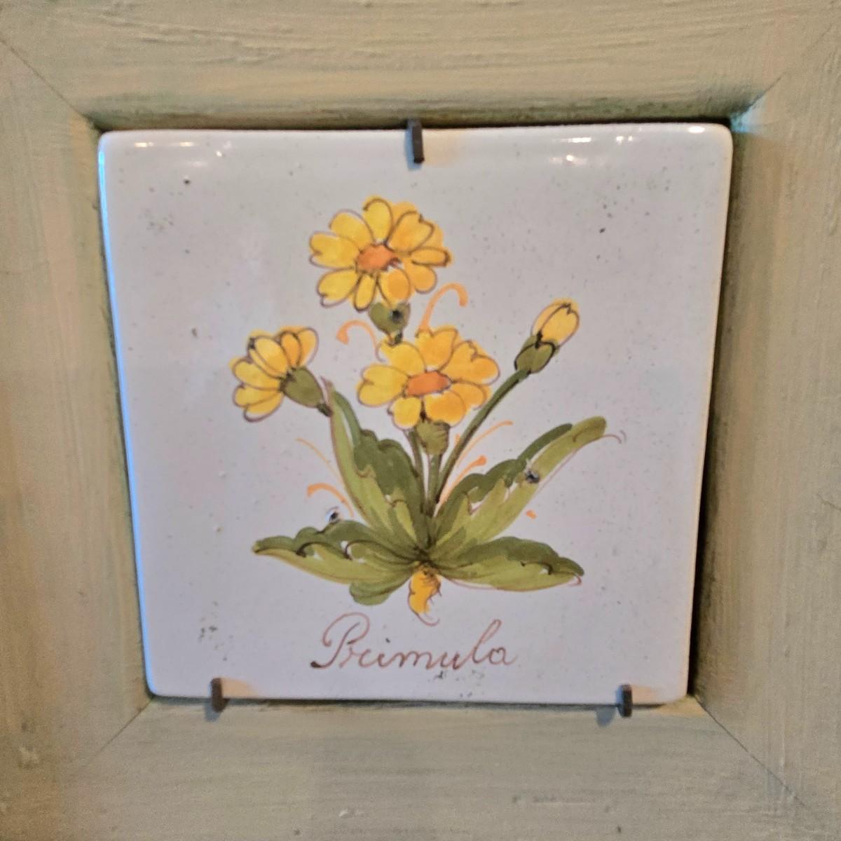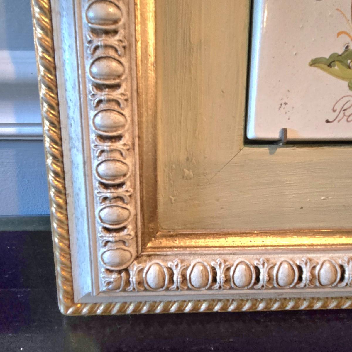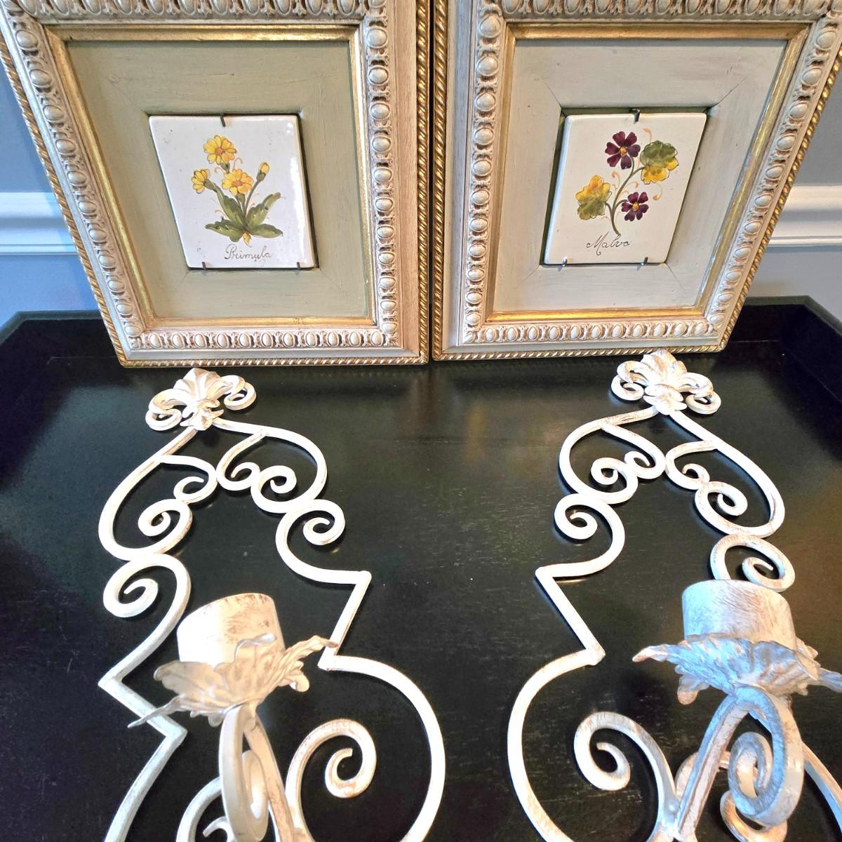 LOT 107H: Framed Painted Tile Art and Metal Sconces