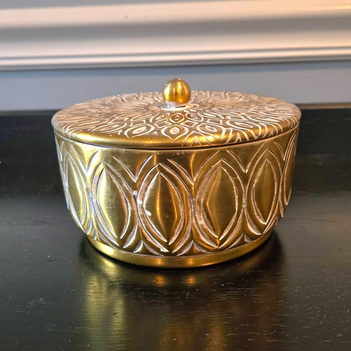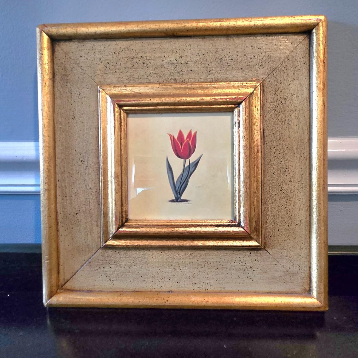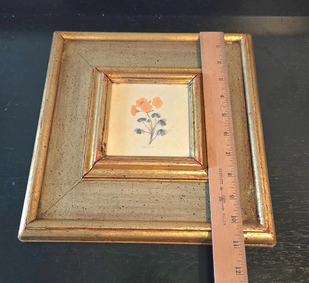 LOT 109H: Three Framed Flower Prints and Gold-tone Bowl with Lid