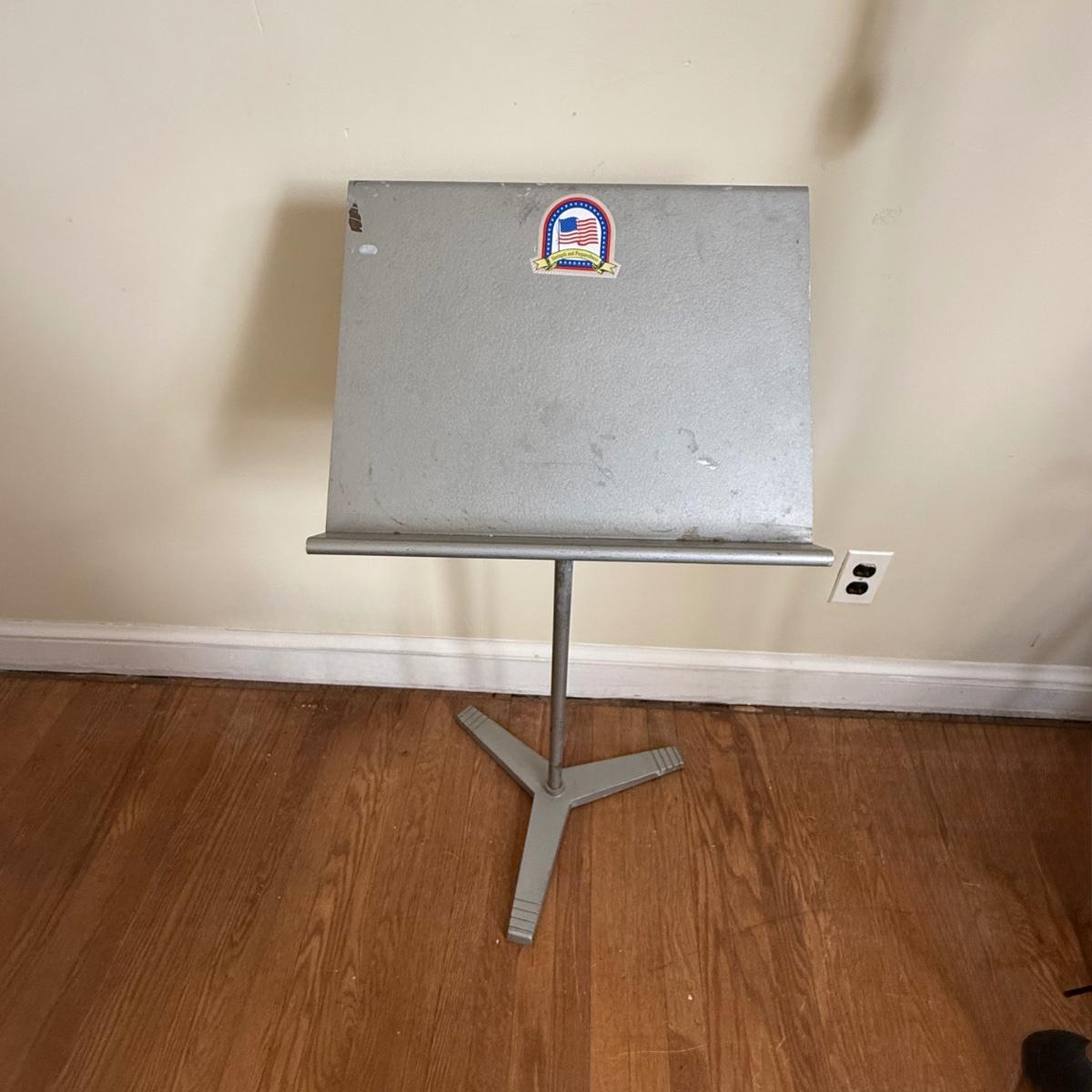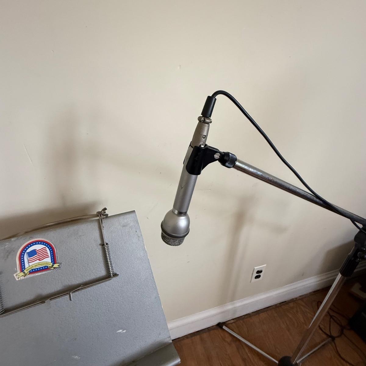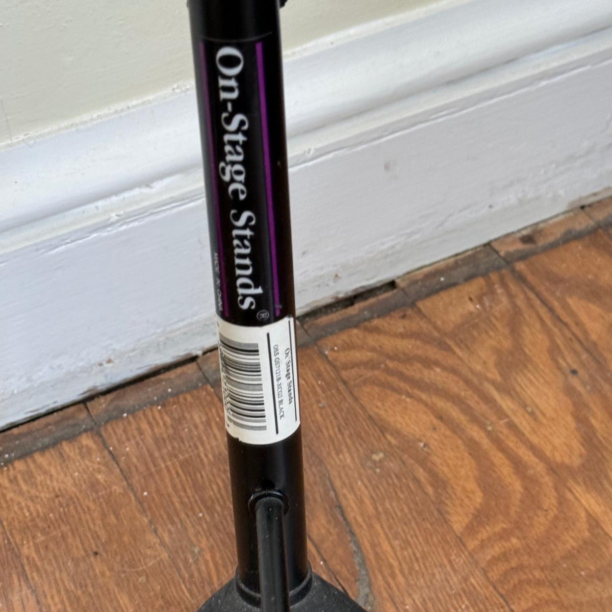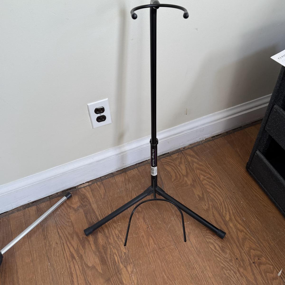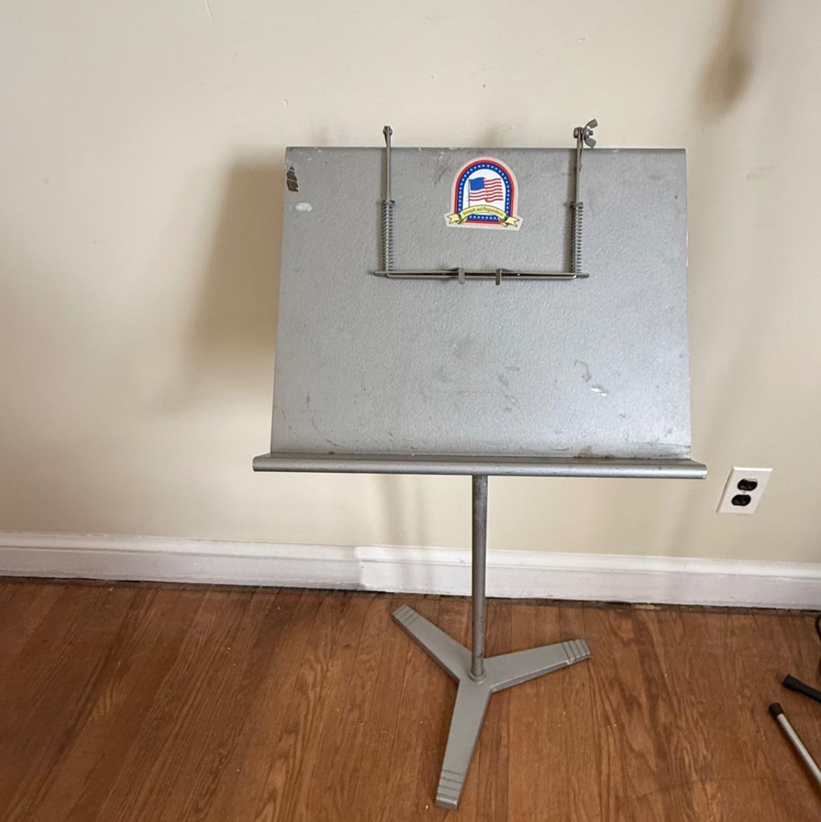 LOT 38: Vintage Wenger Metal Sheet Music Stand, Microphone Stand with Vintage Microphone and One Stage Guitar Stand