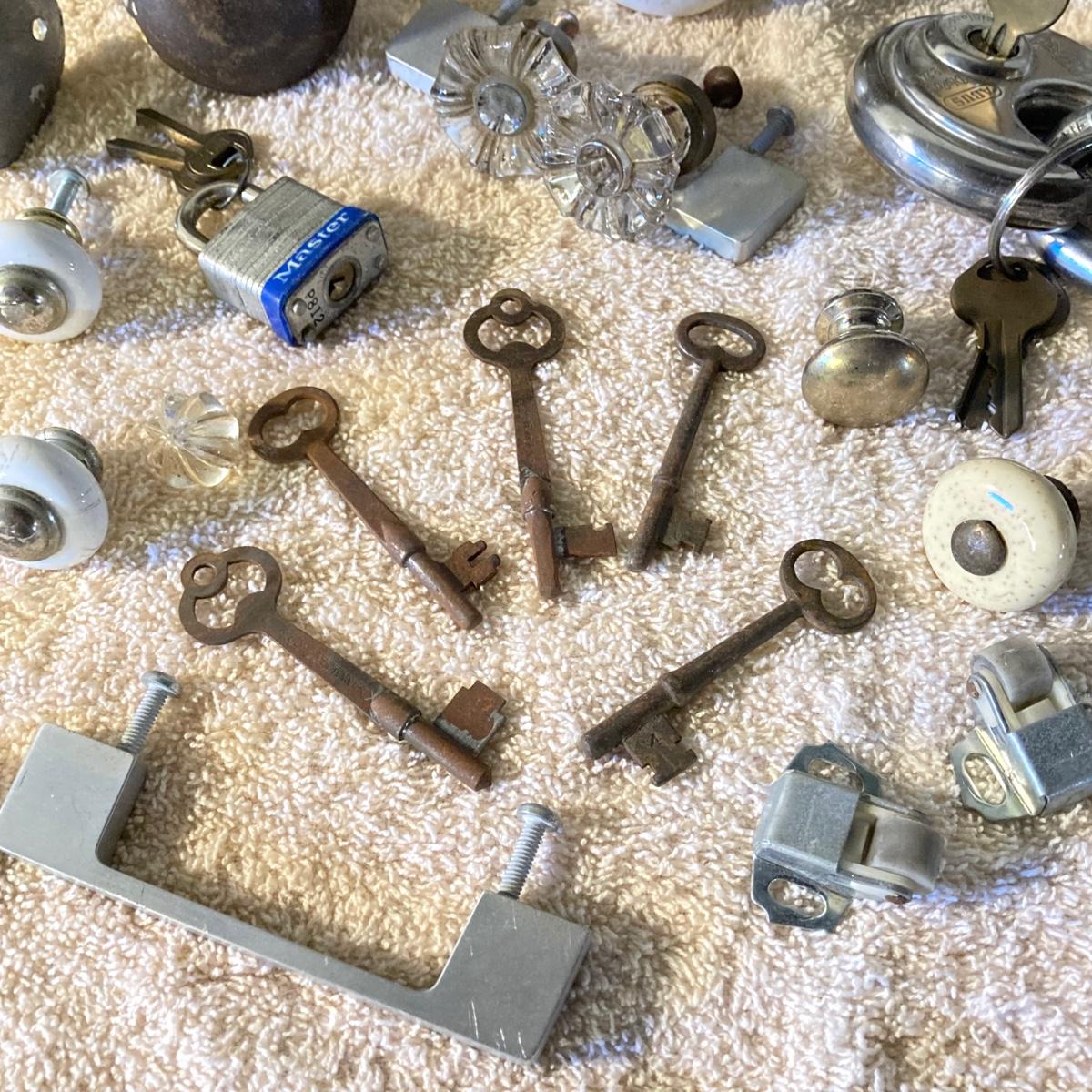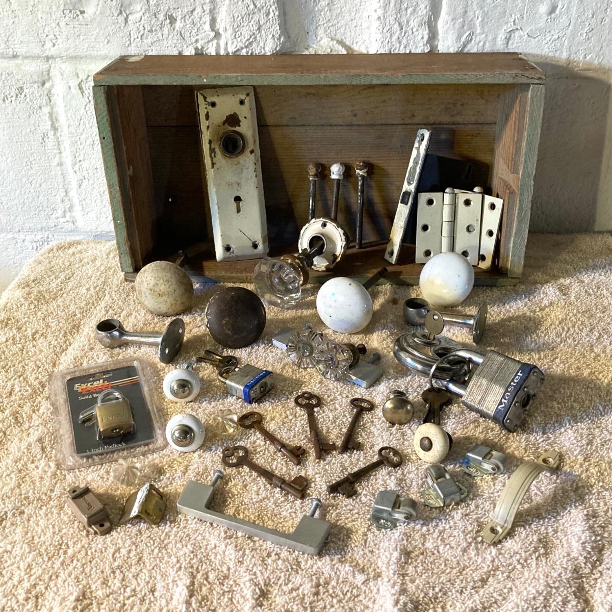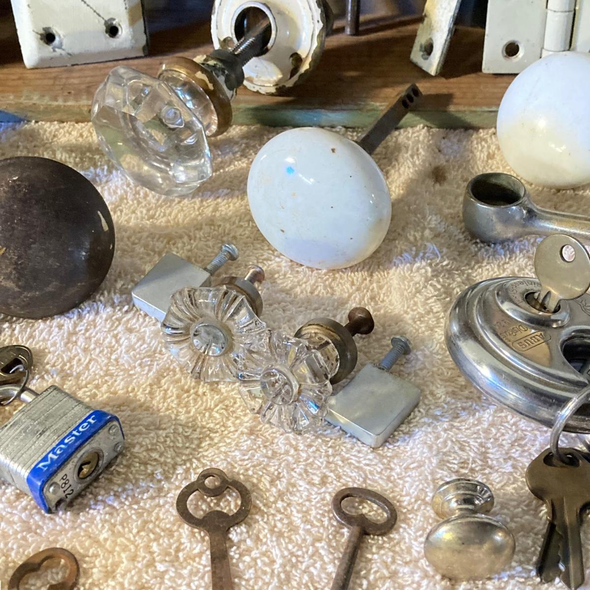 LOT 51: Vintage / Antique Door Knobs, Keys, Locks, Hardware and More