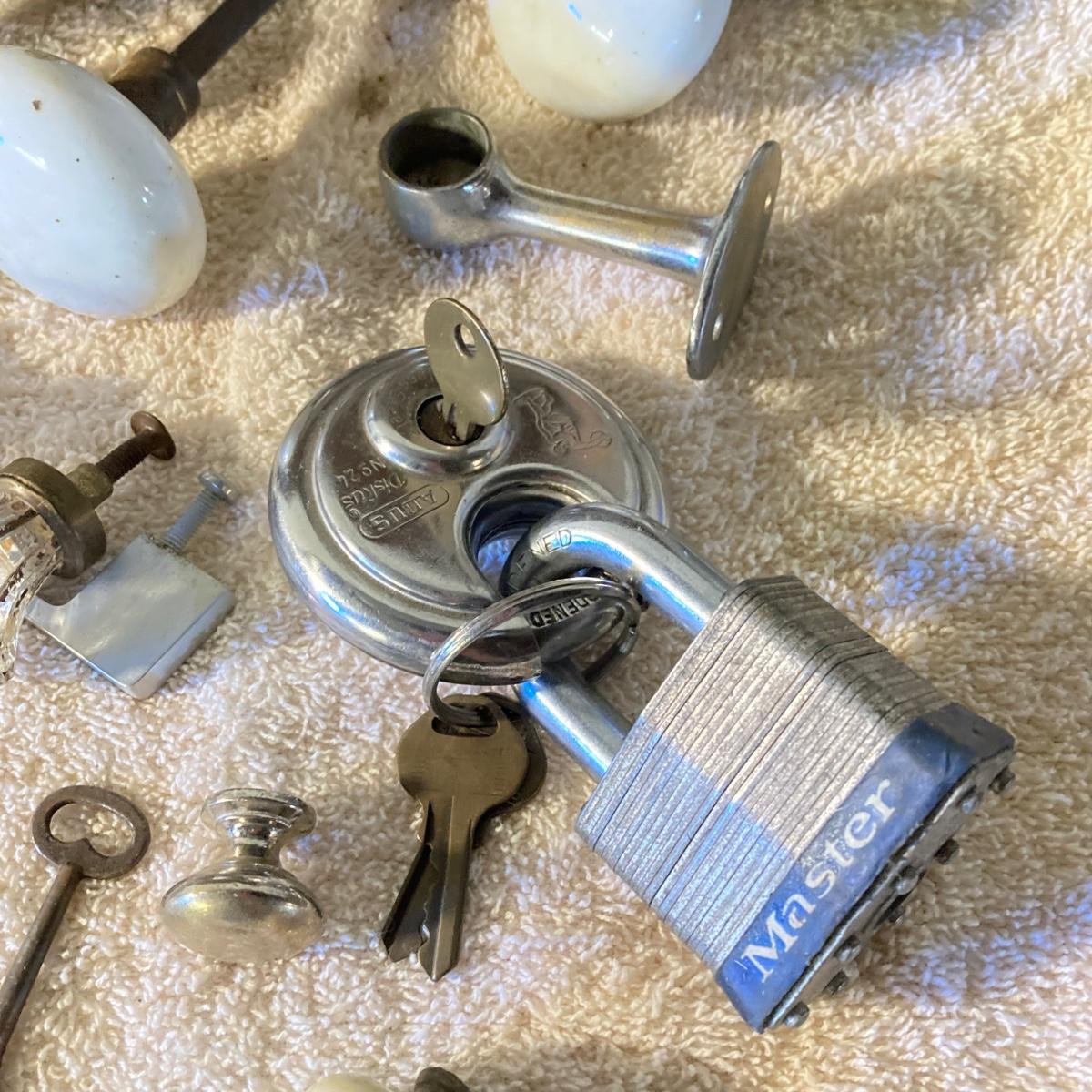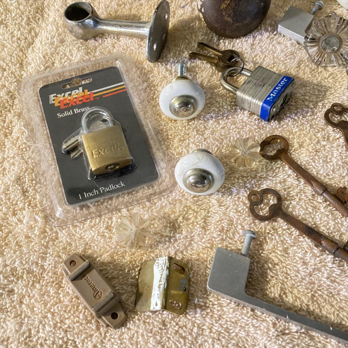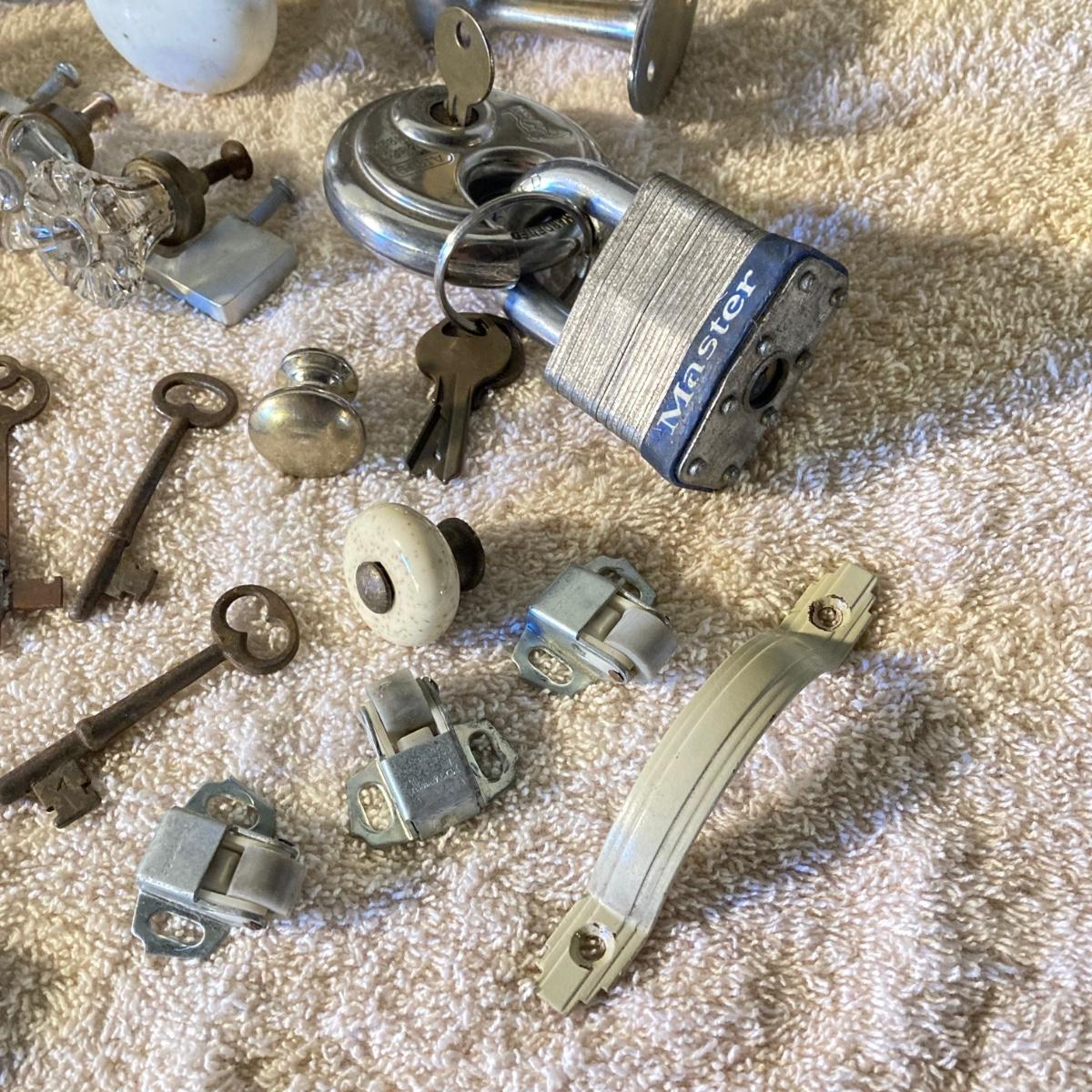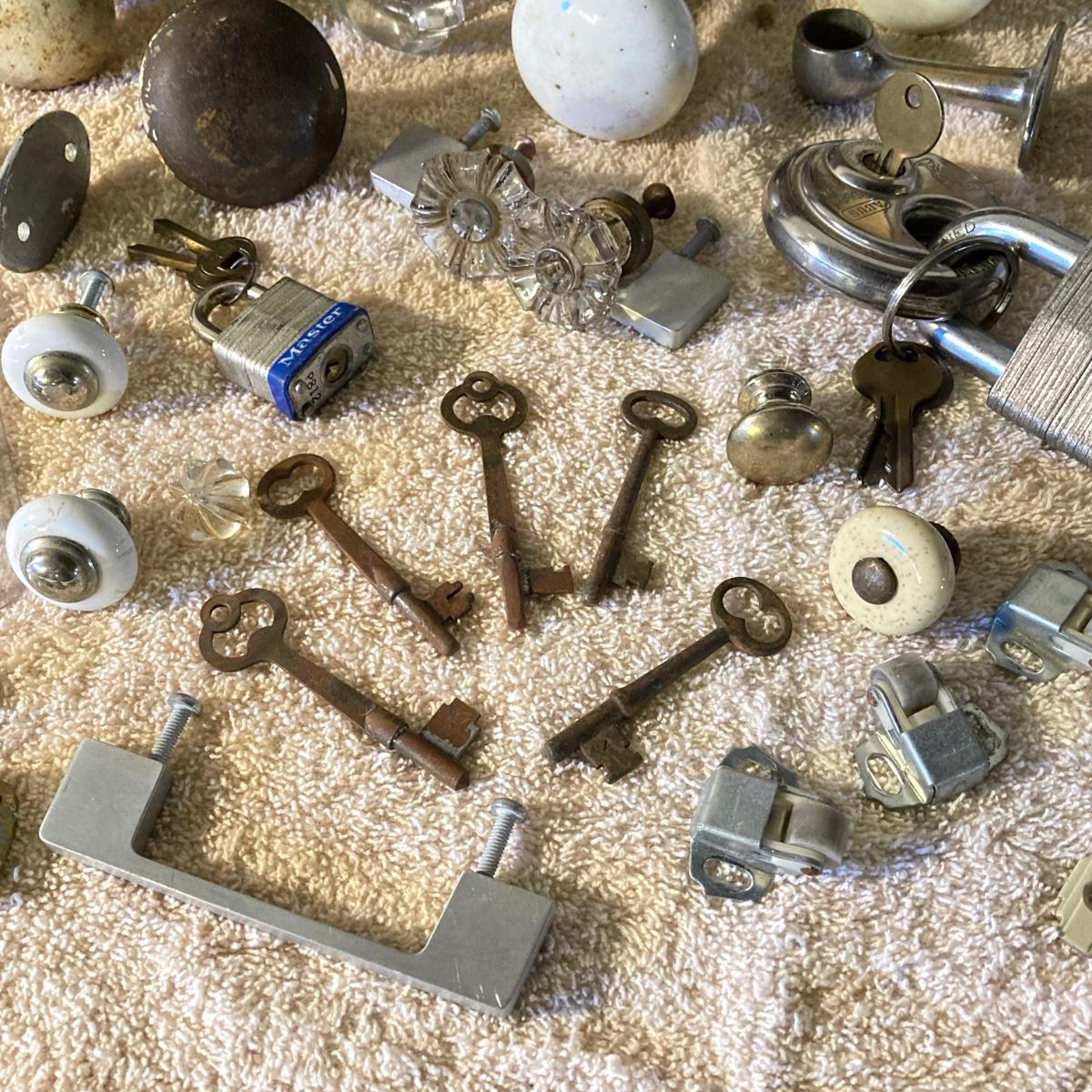 LOT 51: Vintage / Antique Door Knobs, Keys, Locks, Hardware and More