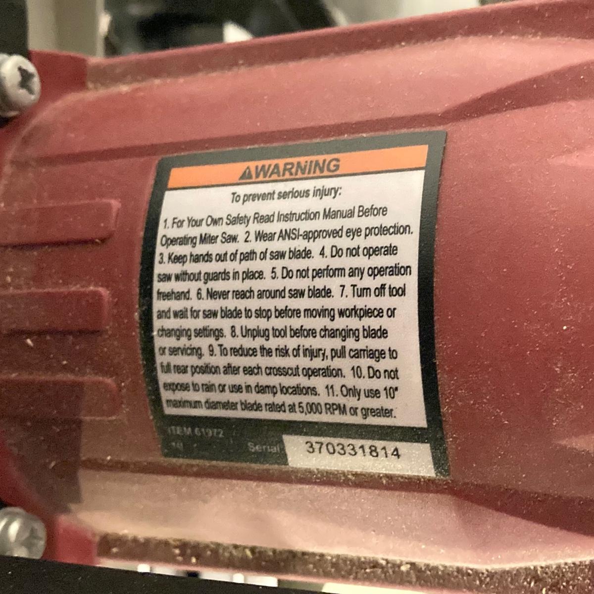 LOT 55: Chicago Electric Power Tools 10" Compound Slide Miter Saw Item 61972