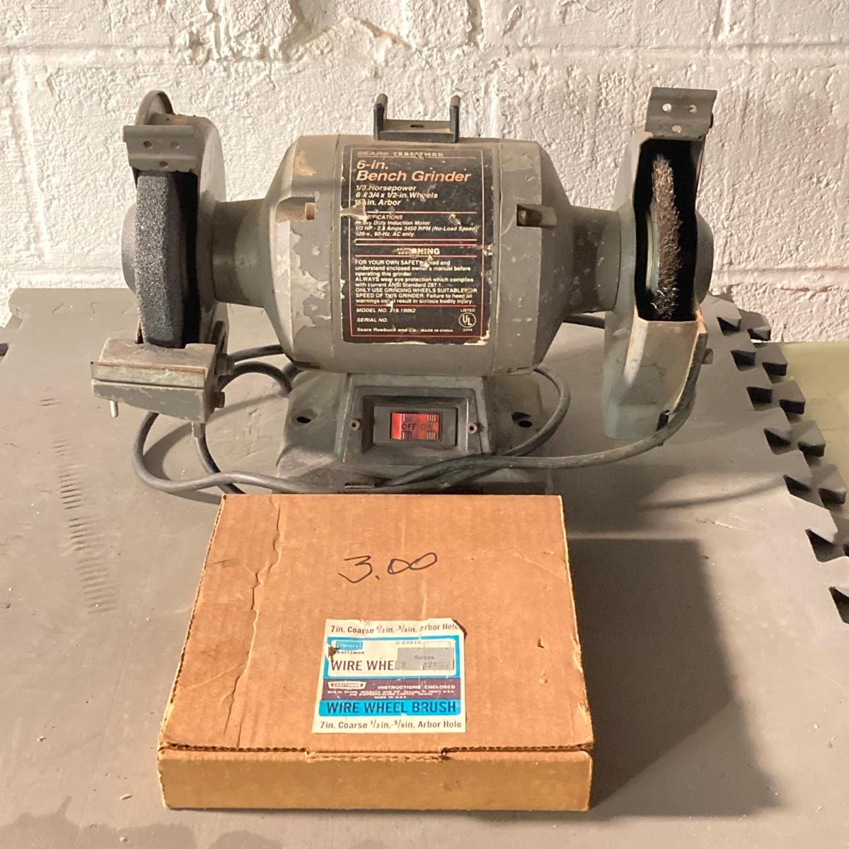 LOT 58: Sears / Craftsman 6 Inch Bench Grinder with Wire Wheel Brush