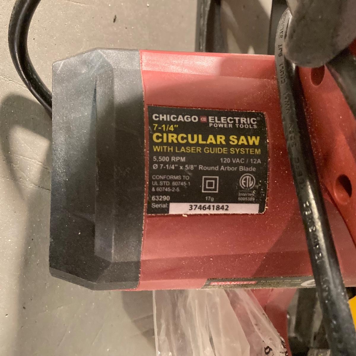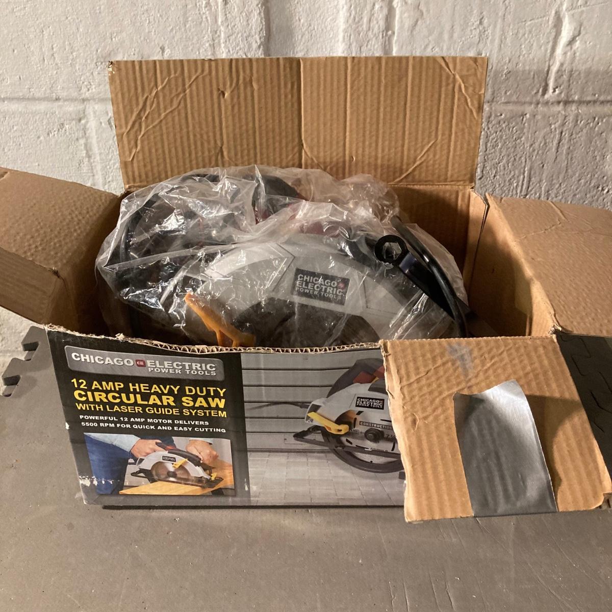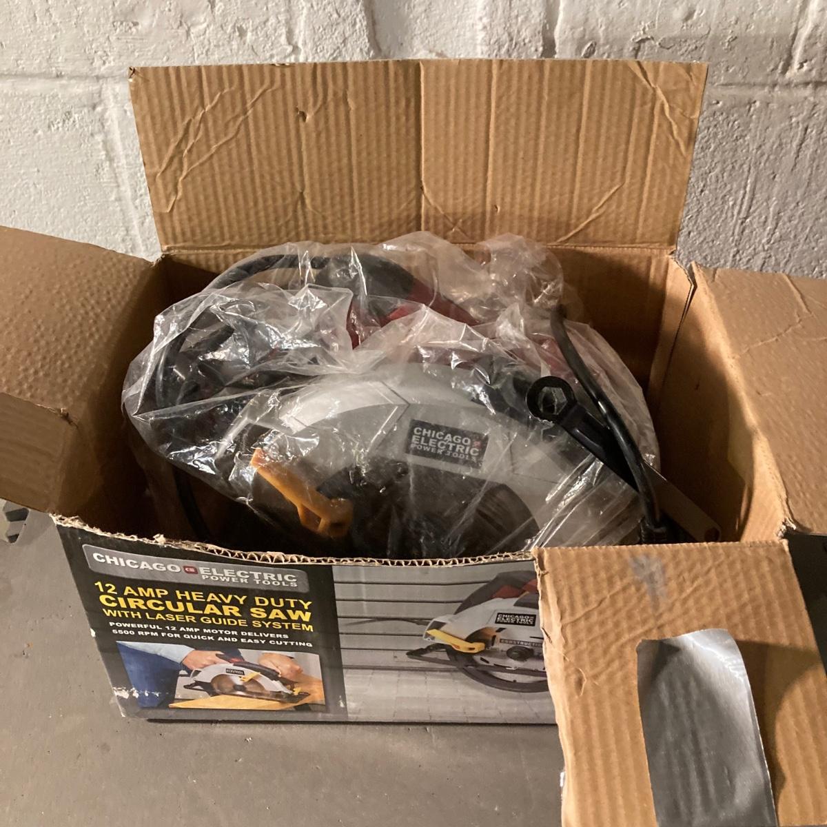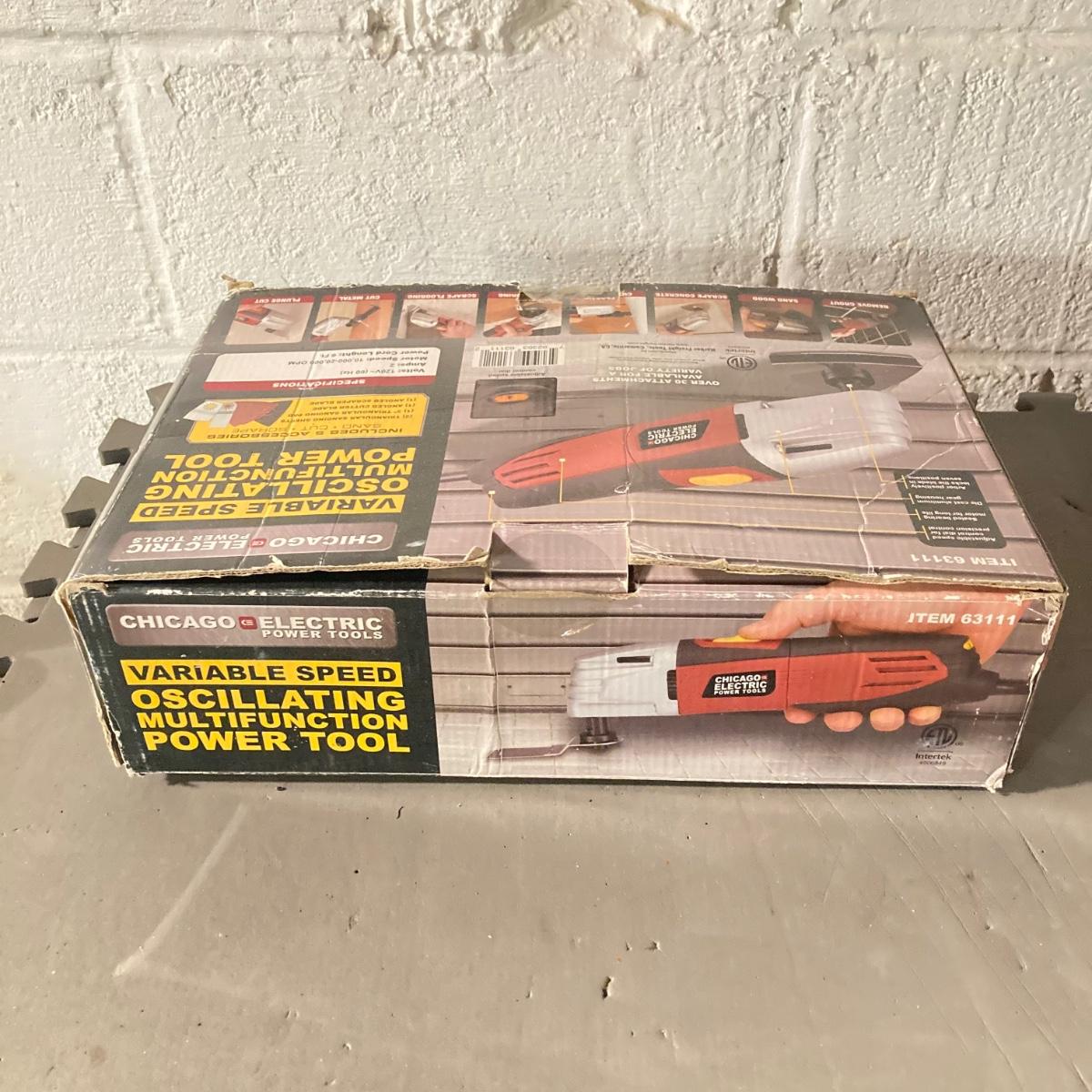 LOT 59: Chicago Electric Power Tools Collection - Multi Function Power Tool, Circular Saw and Orbital Palm Sander in Original Boxes