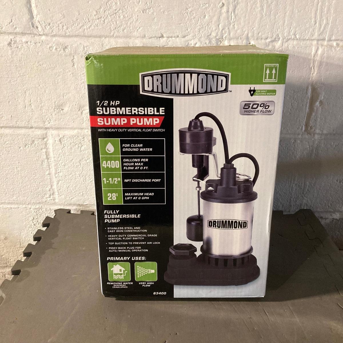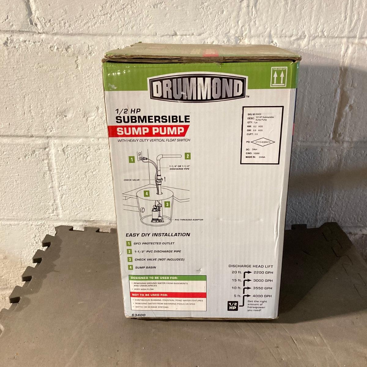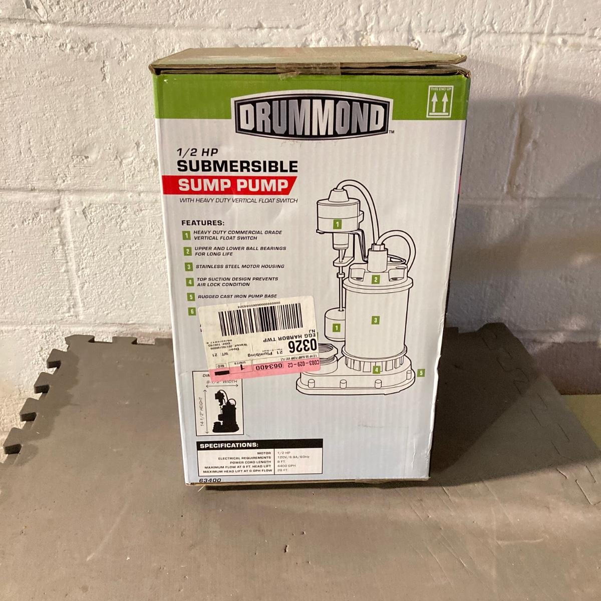 LOT 63: Drummond 1/2 HP Submersible Sump Pump in Original Box