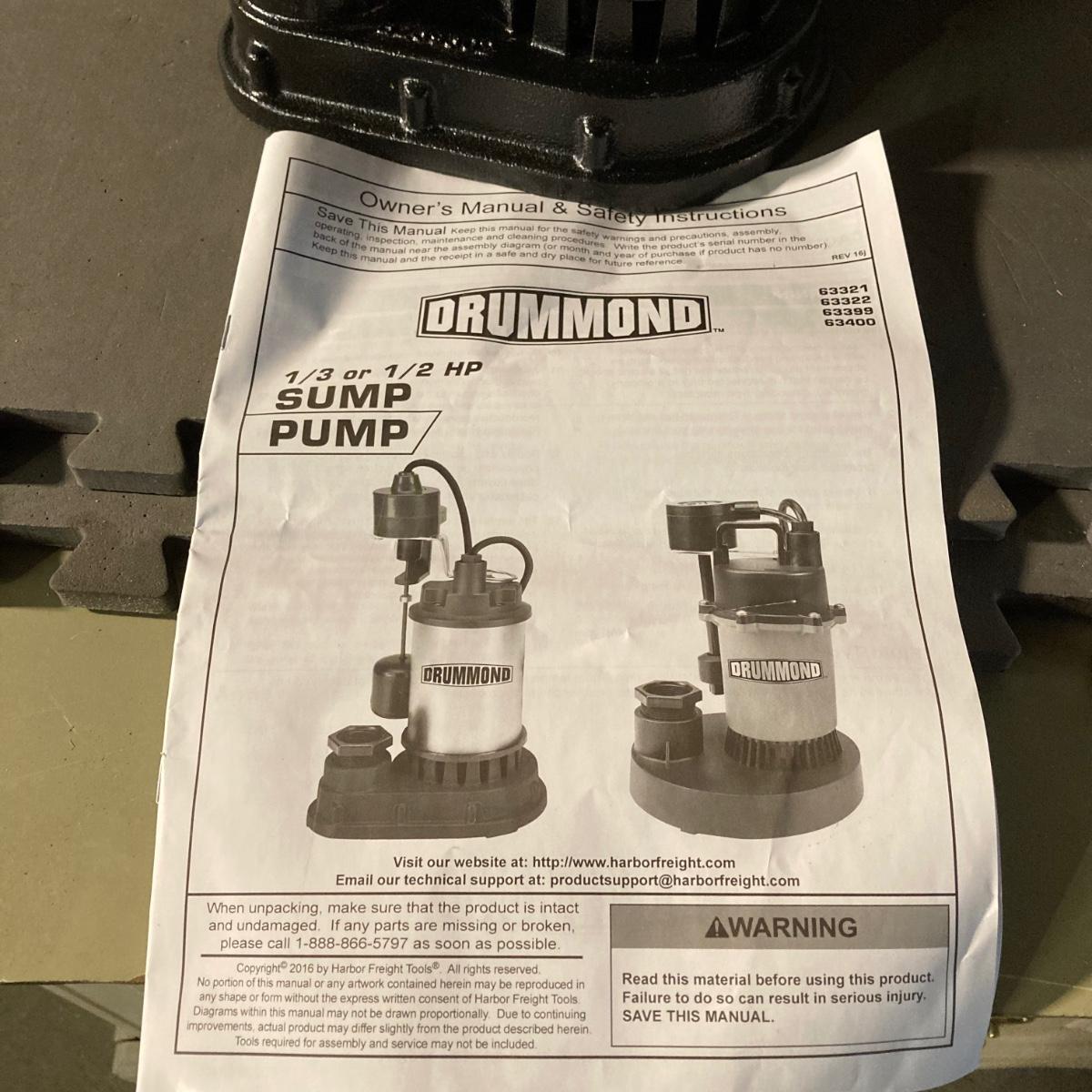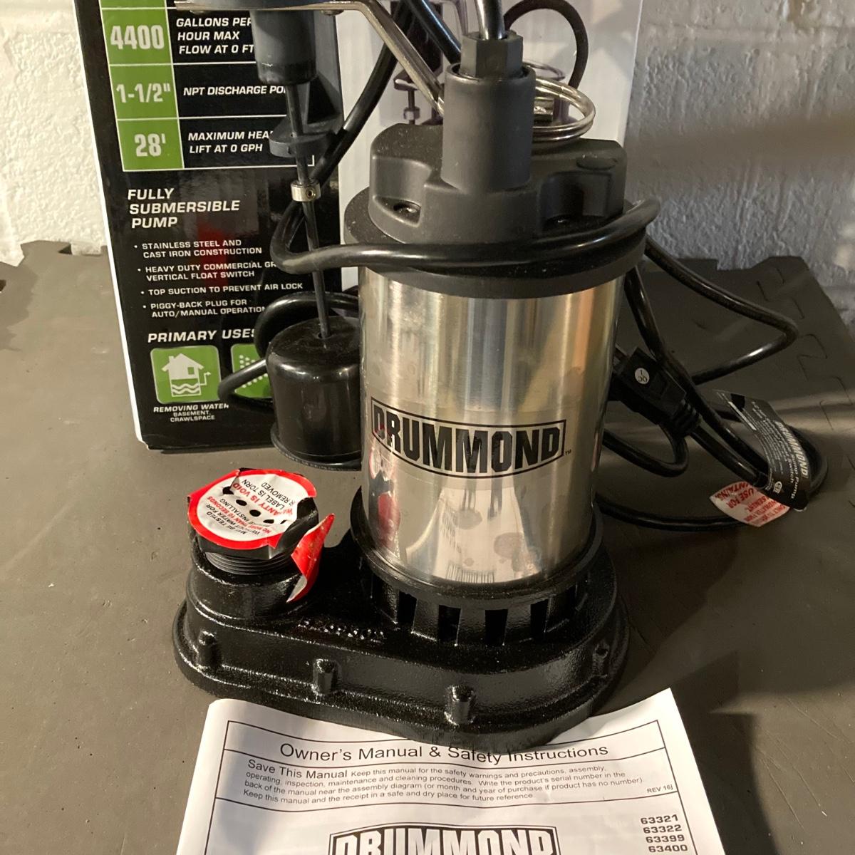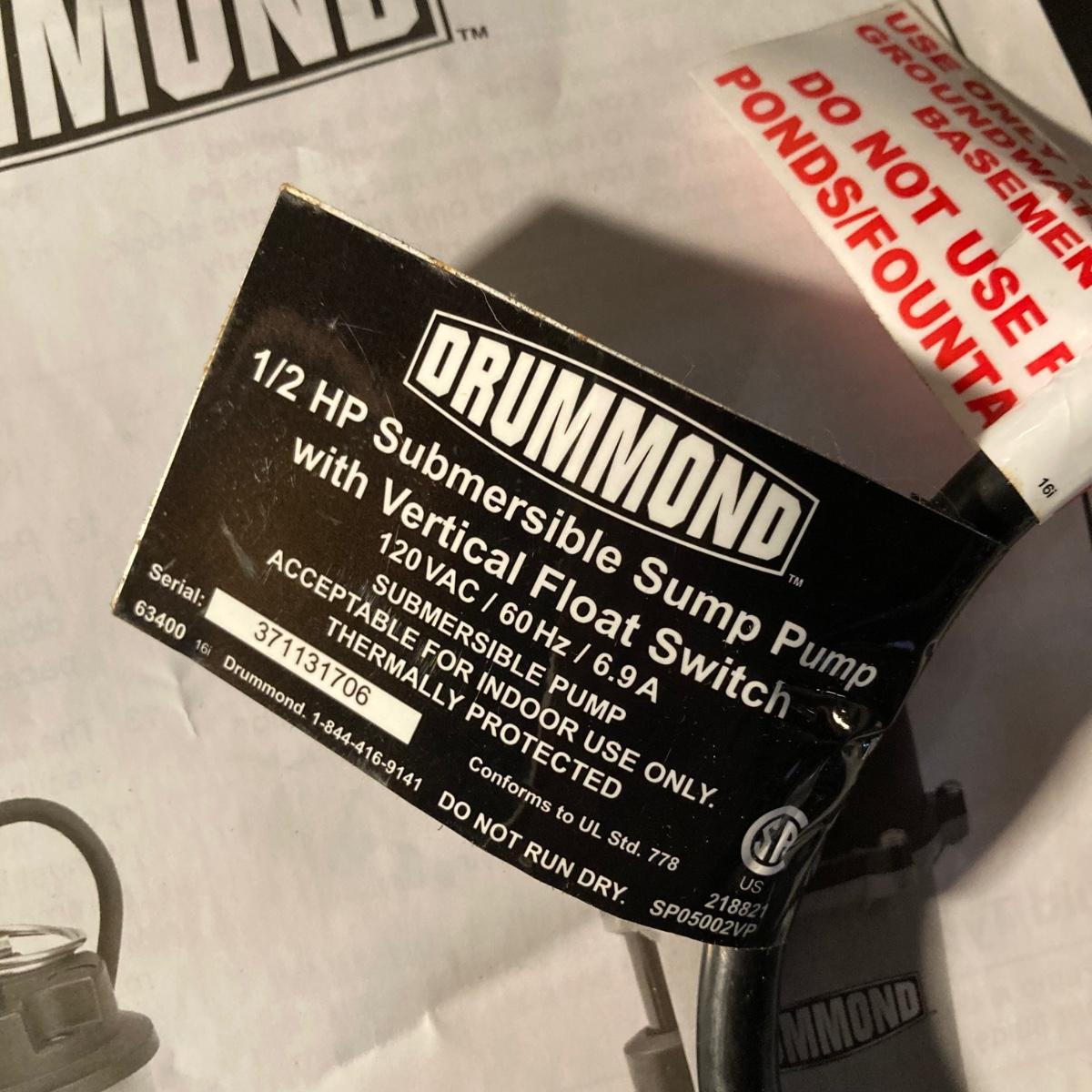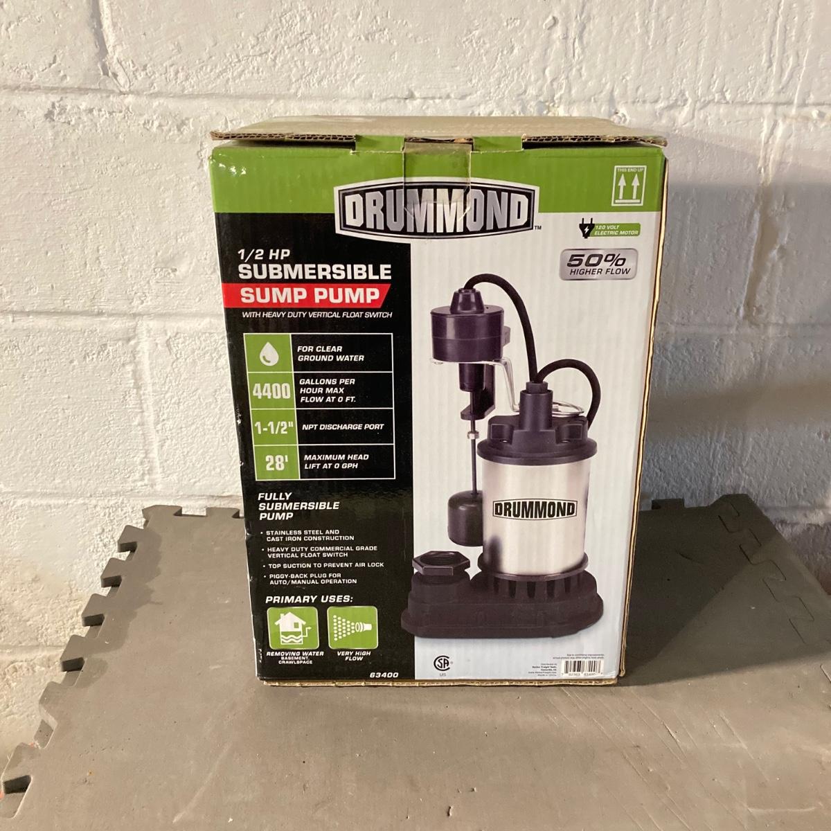 LOT 63: Drummond 1/2 HP Submersible Sump Pump in Original Box